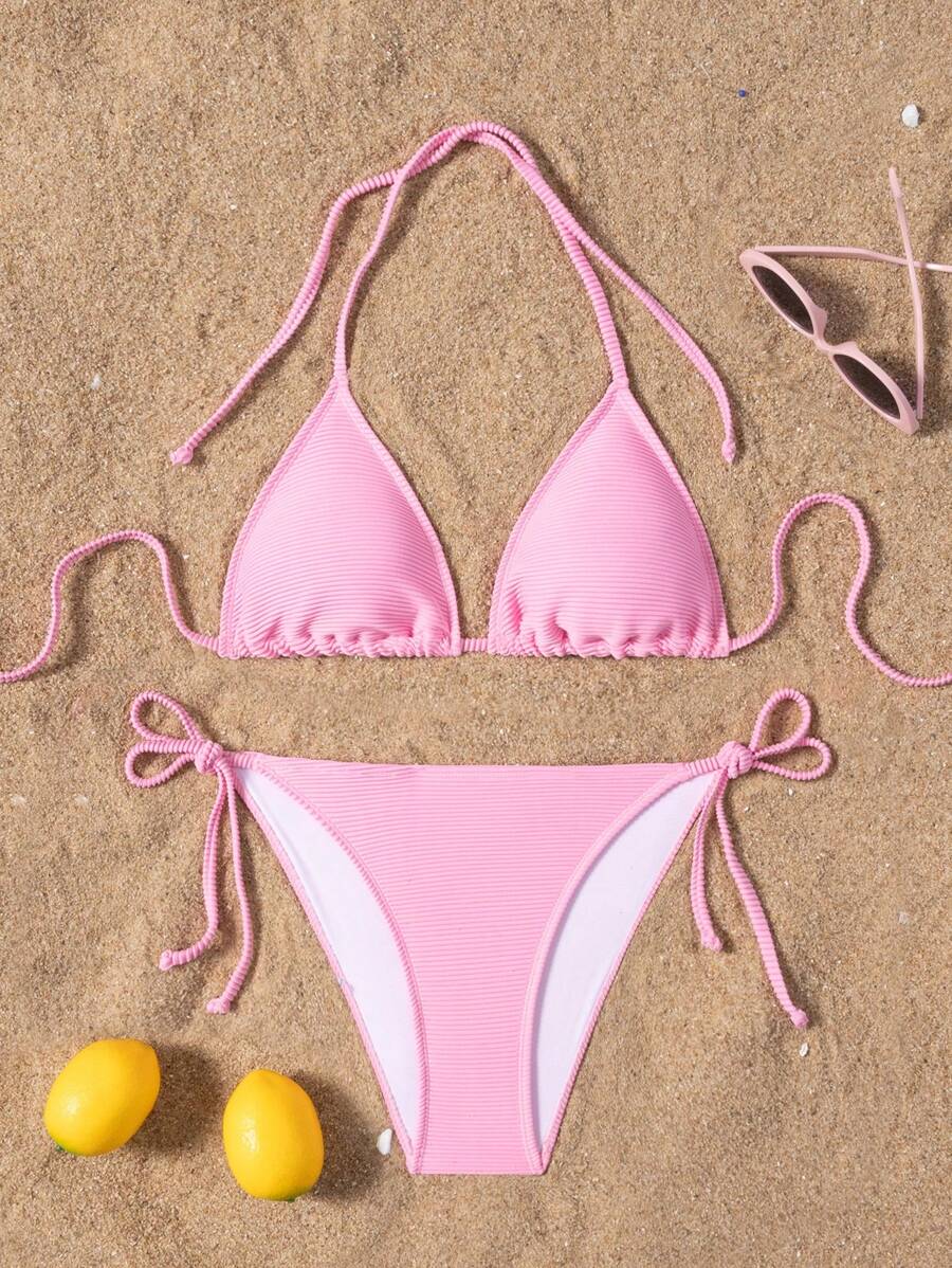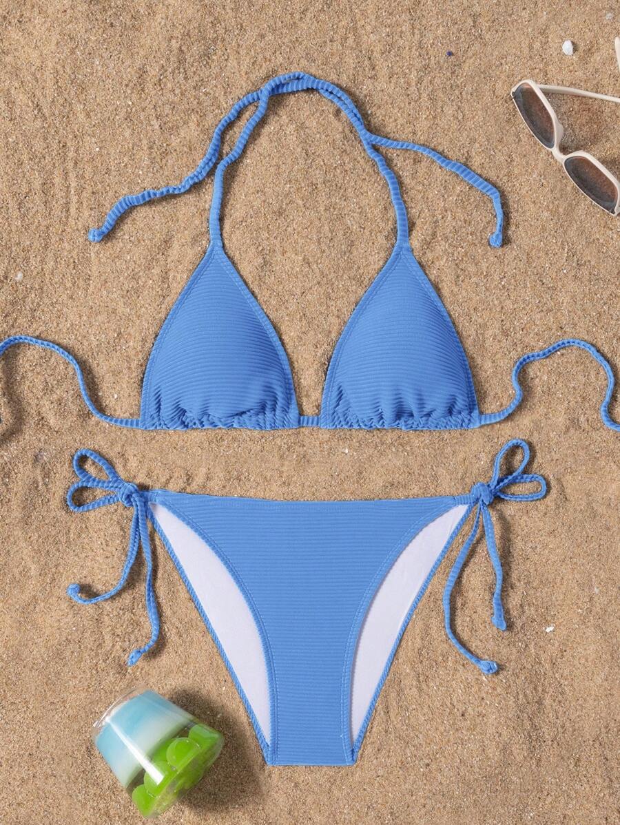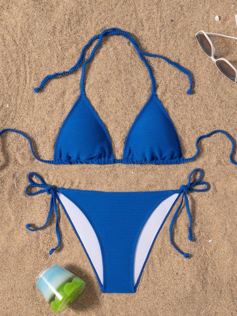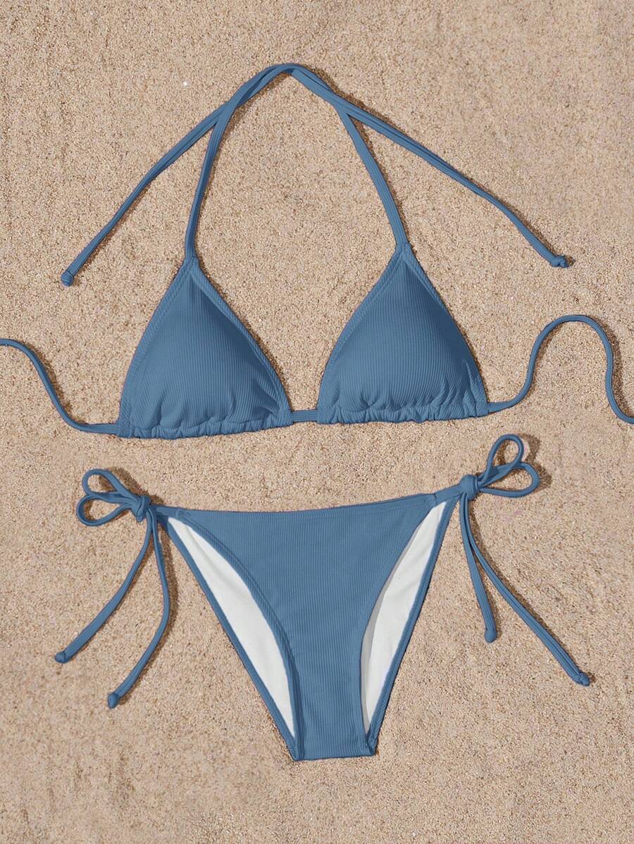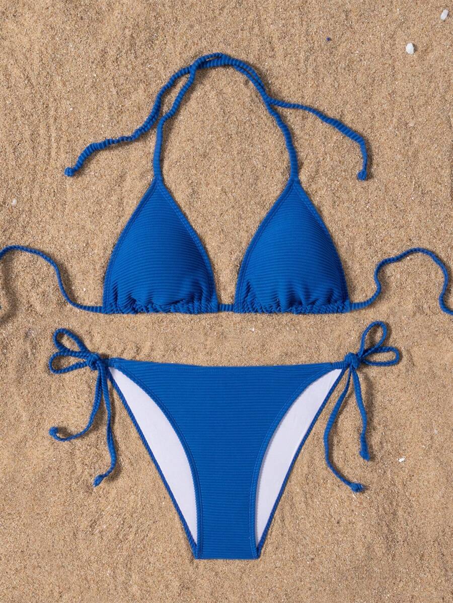 Conjunto de bikini sexy de atar al cuello de un solo color para mujer – Muy Bonita