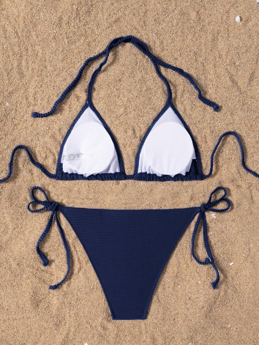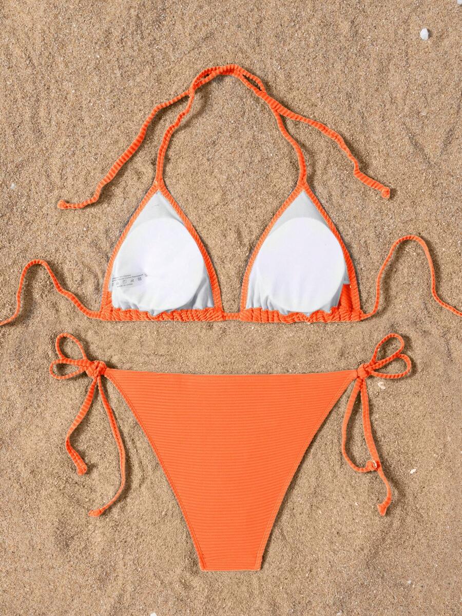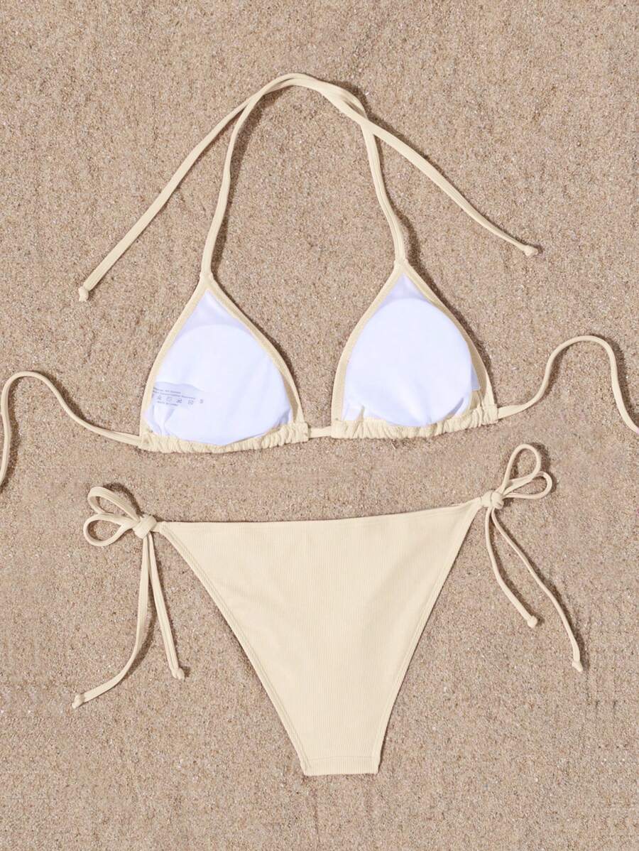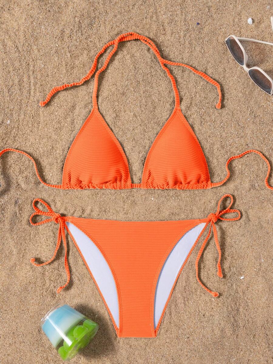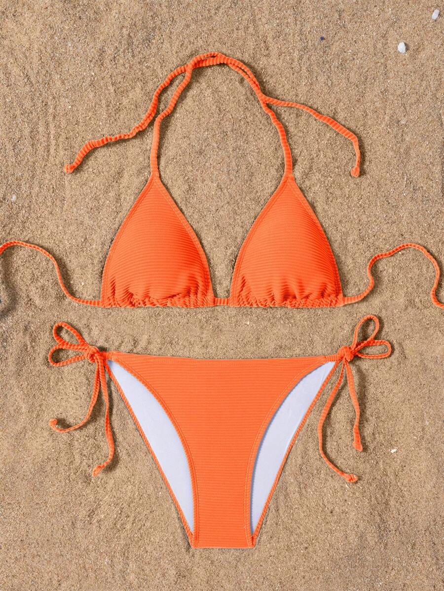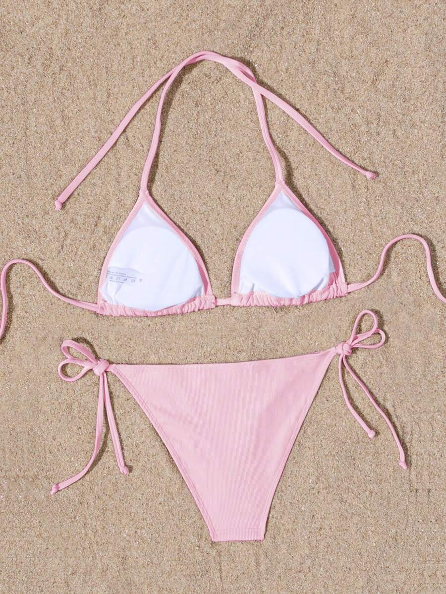 Conjunto de bikini sexy de atar al cuello de un solo color para mujer – Muy Bonita