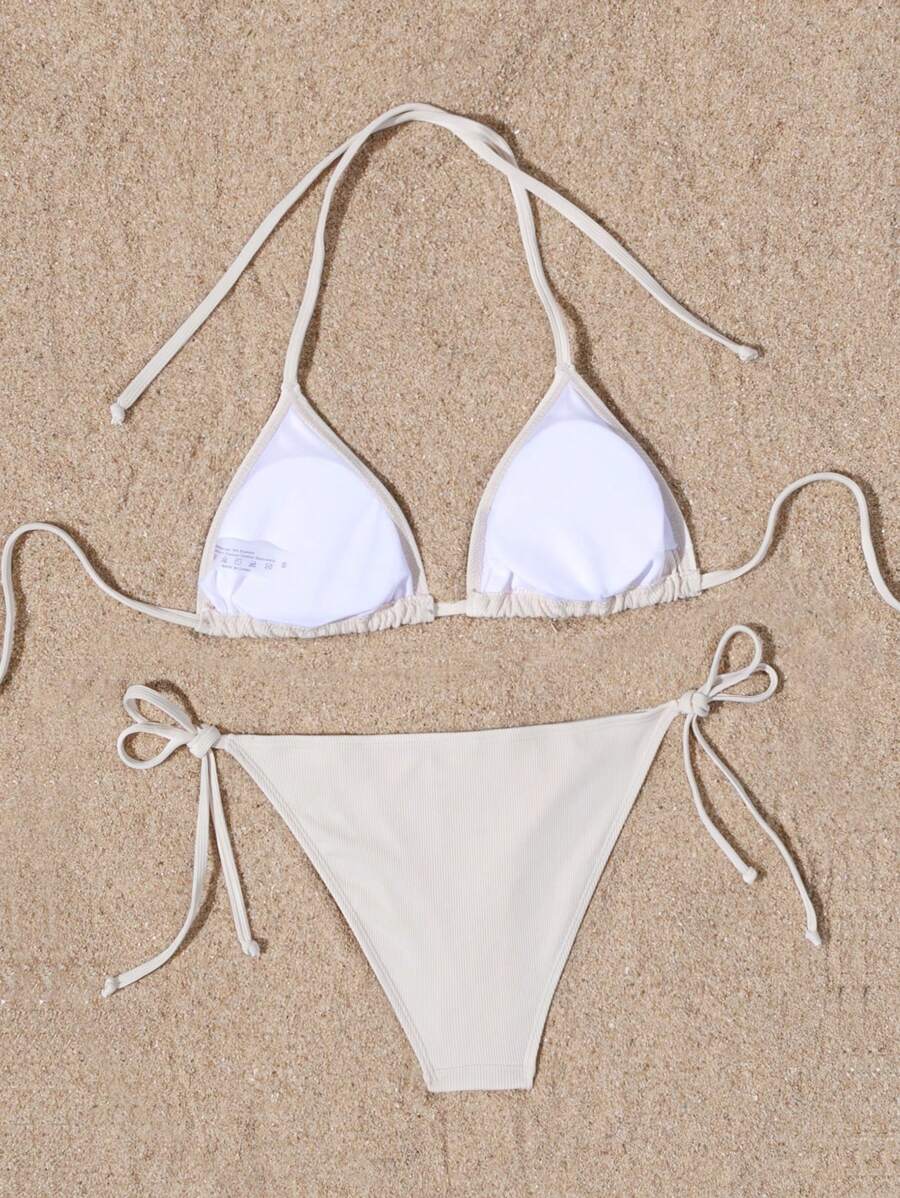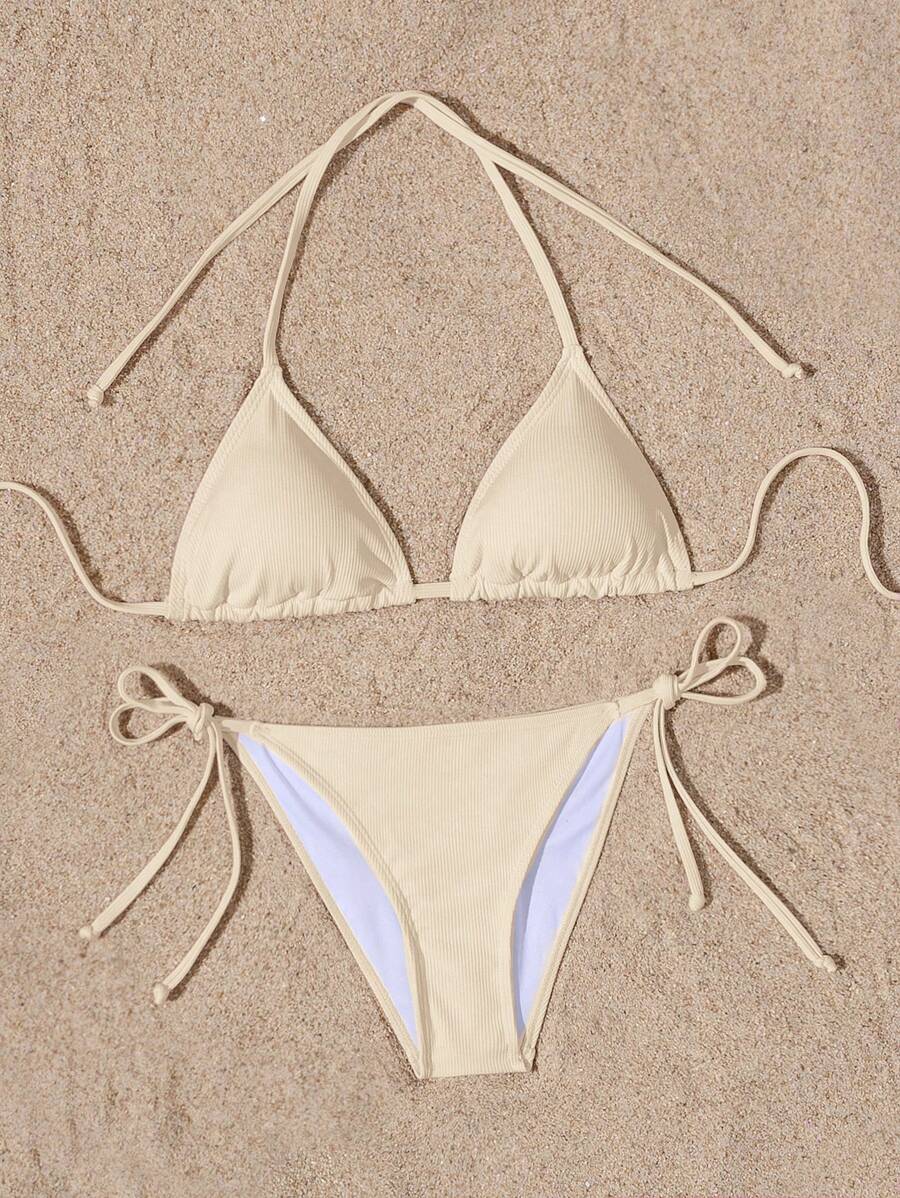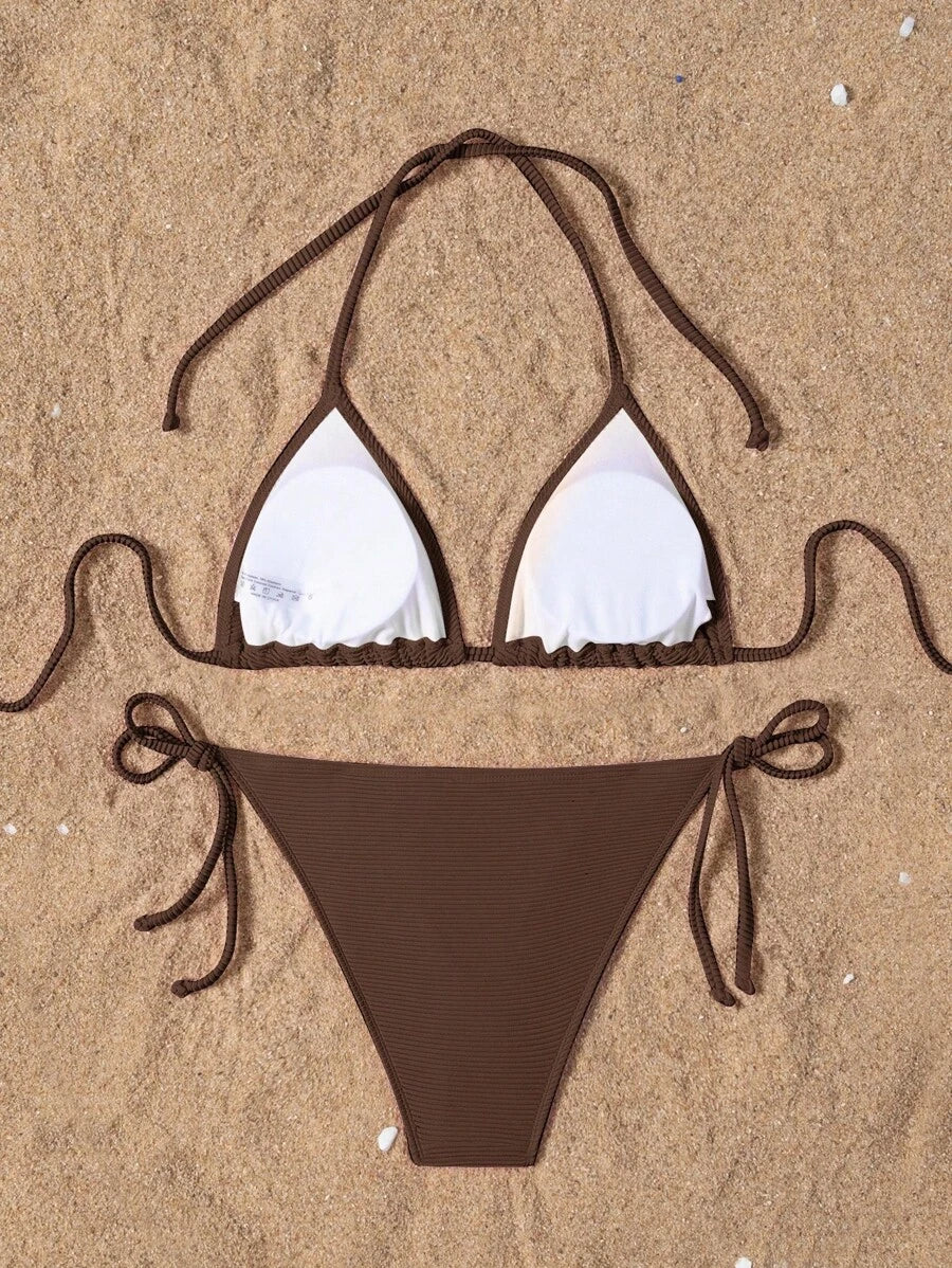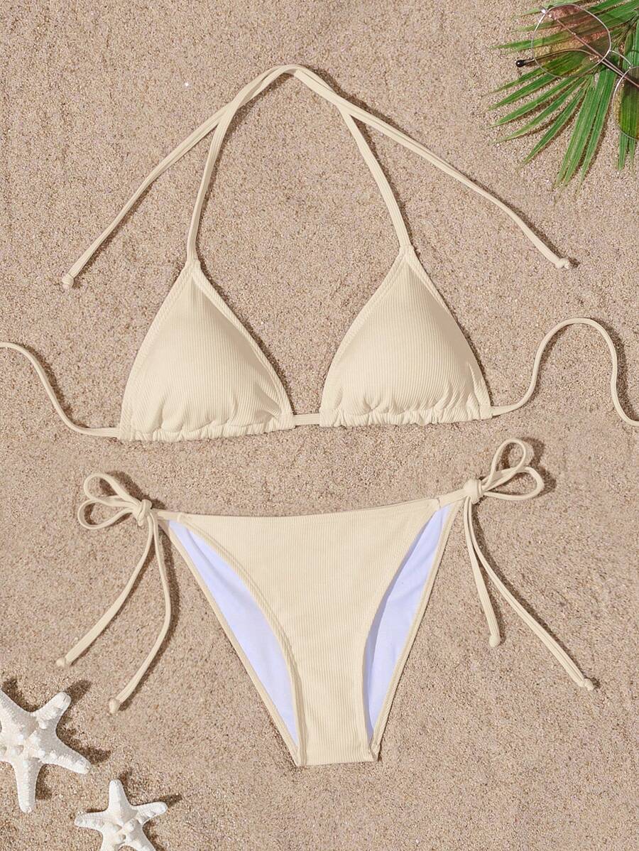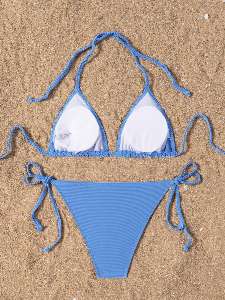 Conjunto de bikini sexy de atar al cuello de un solo color para mujer – Muy Bonita
