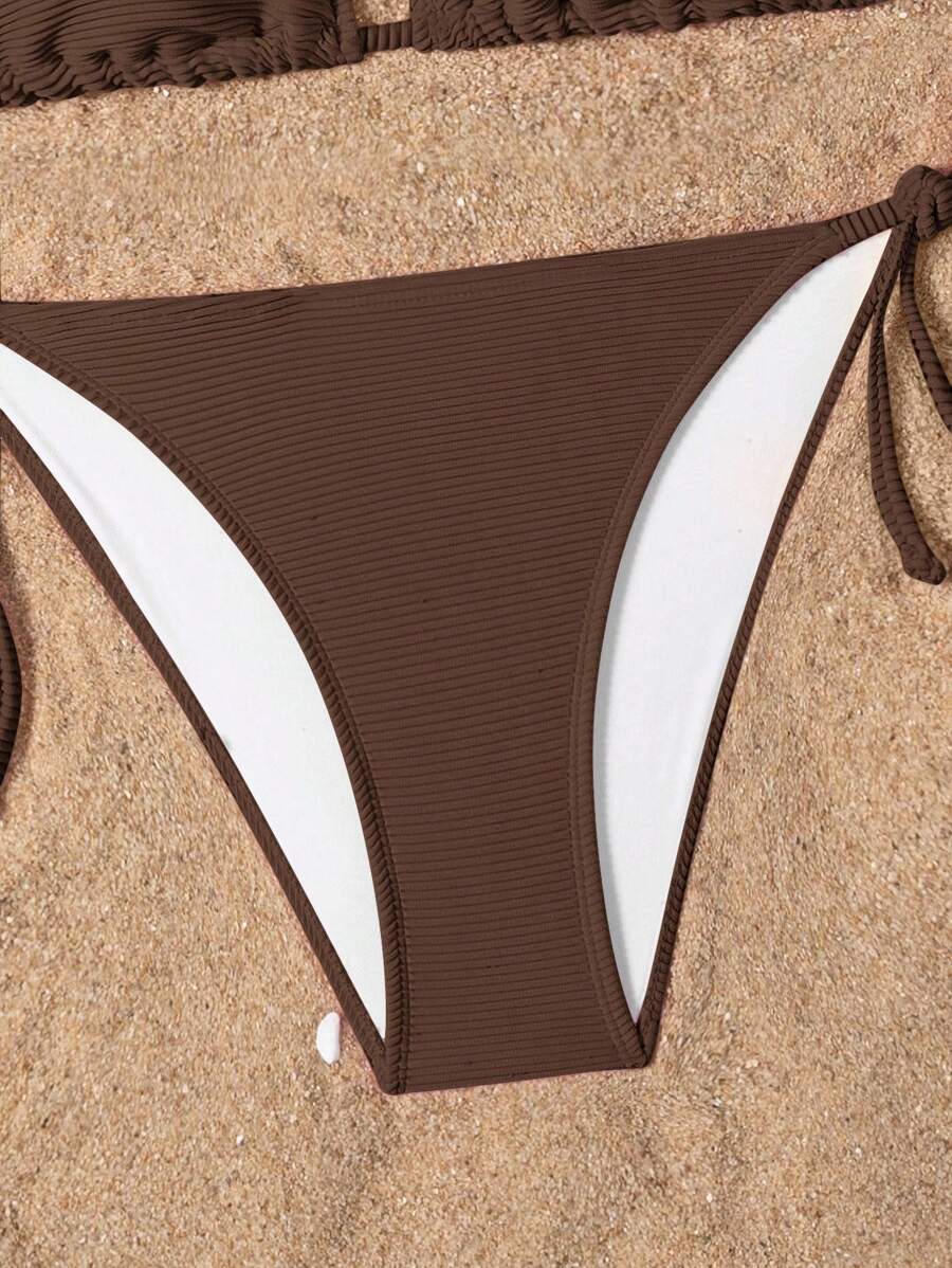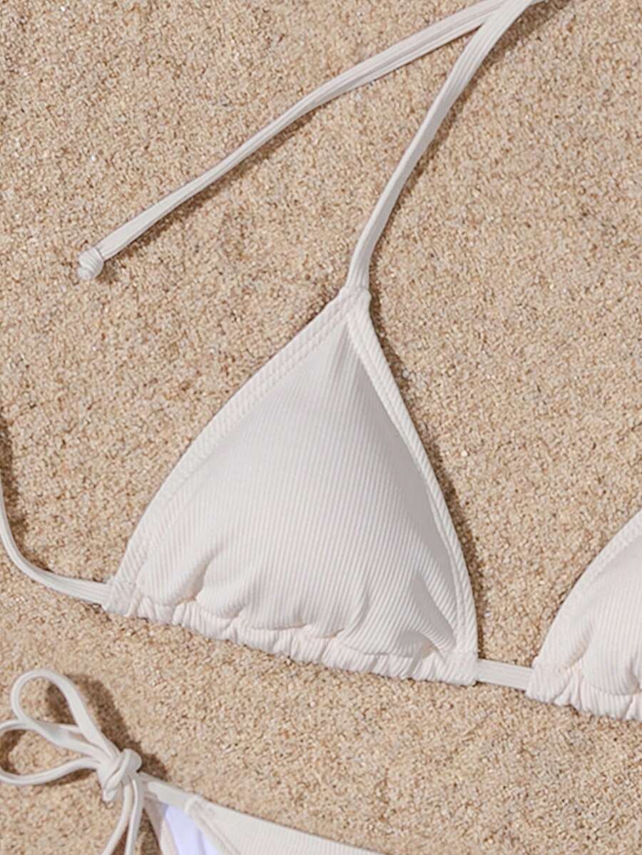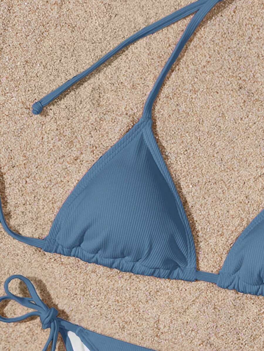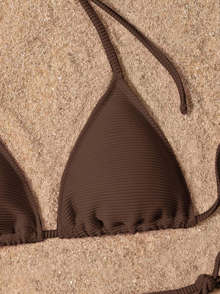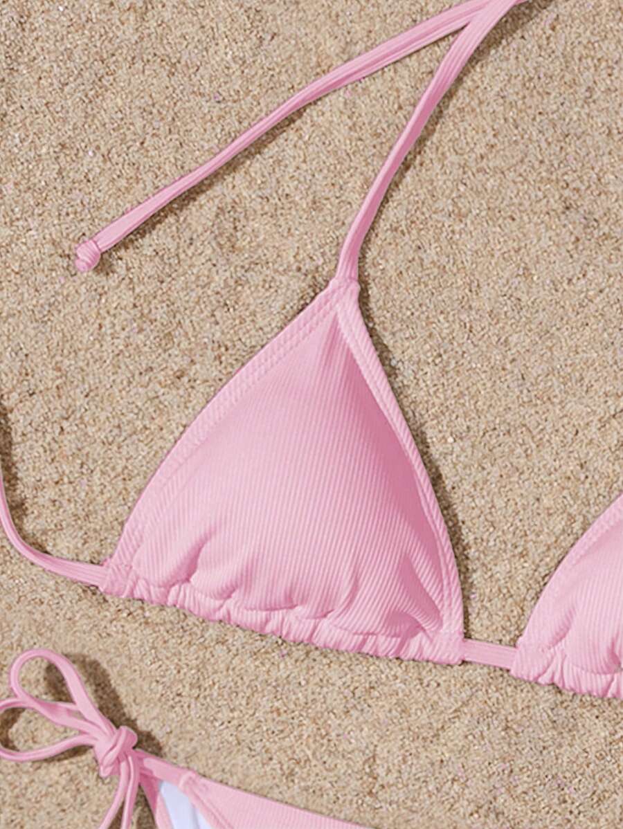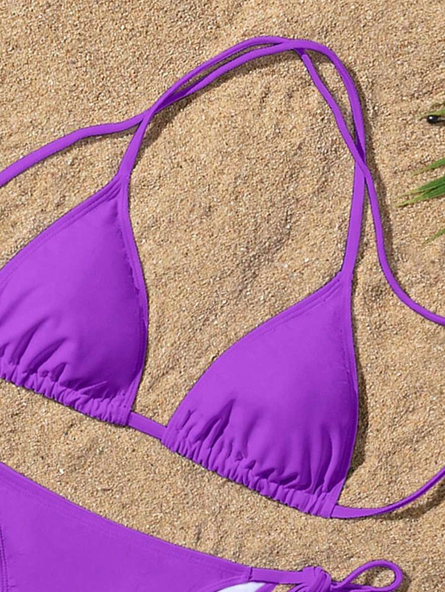 Conjunto de bikini sexy de atar al cuello de un solo color para mujer – Muy Bonita