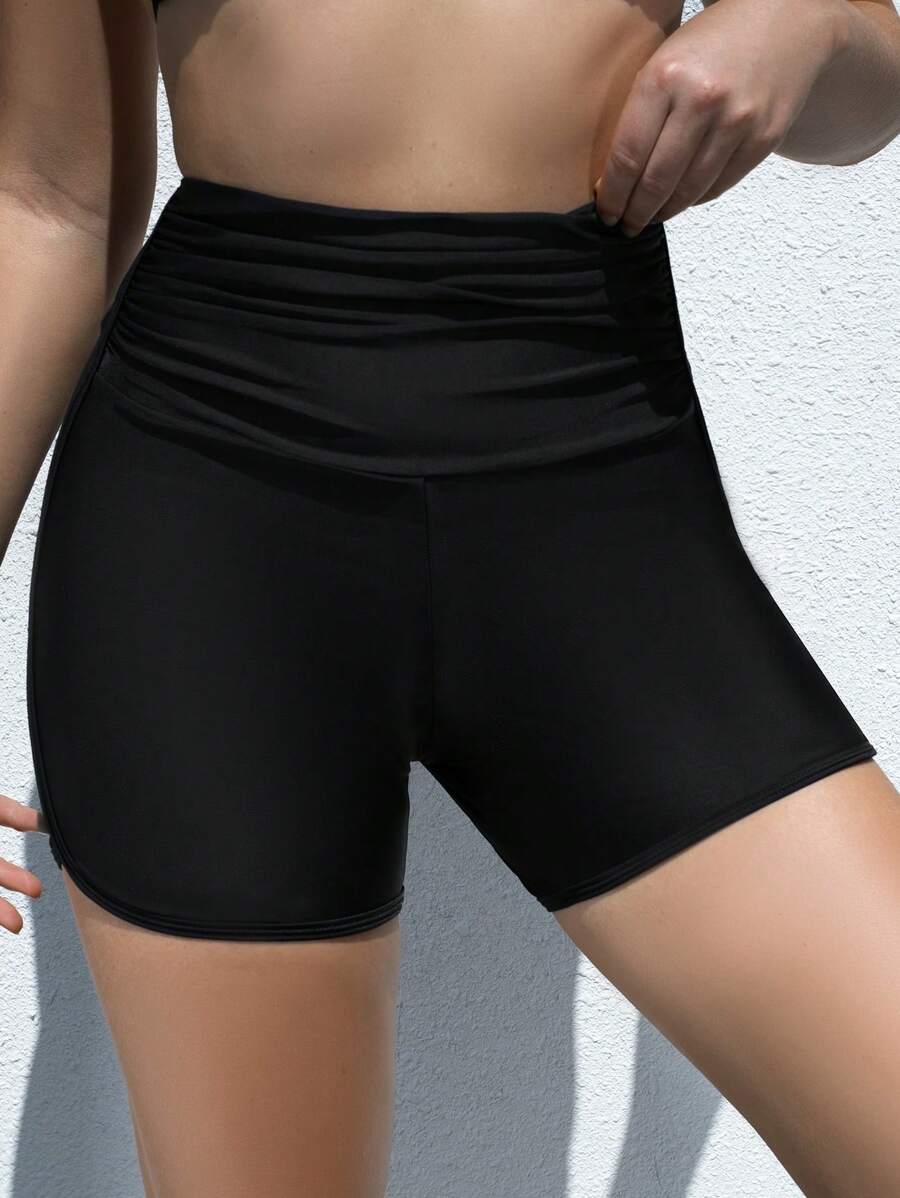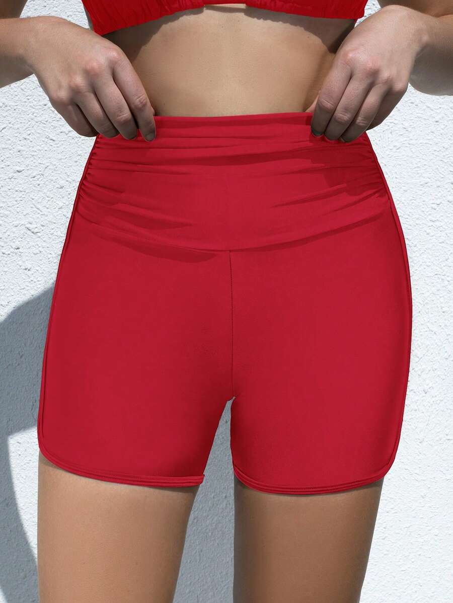 Pantalones cortos de traje de bano con control de barriga y cintura alta plisada, moda de verano para mujer