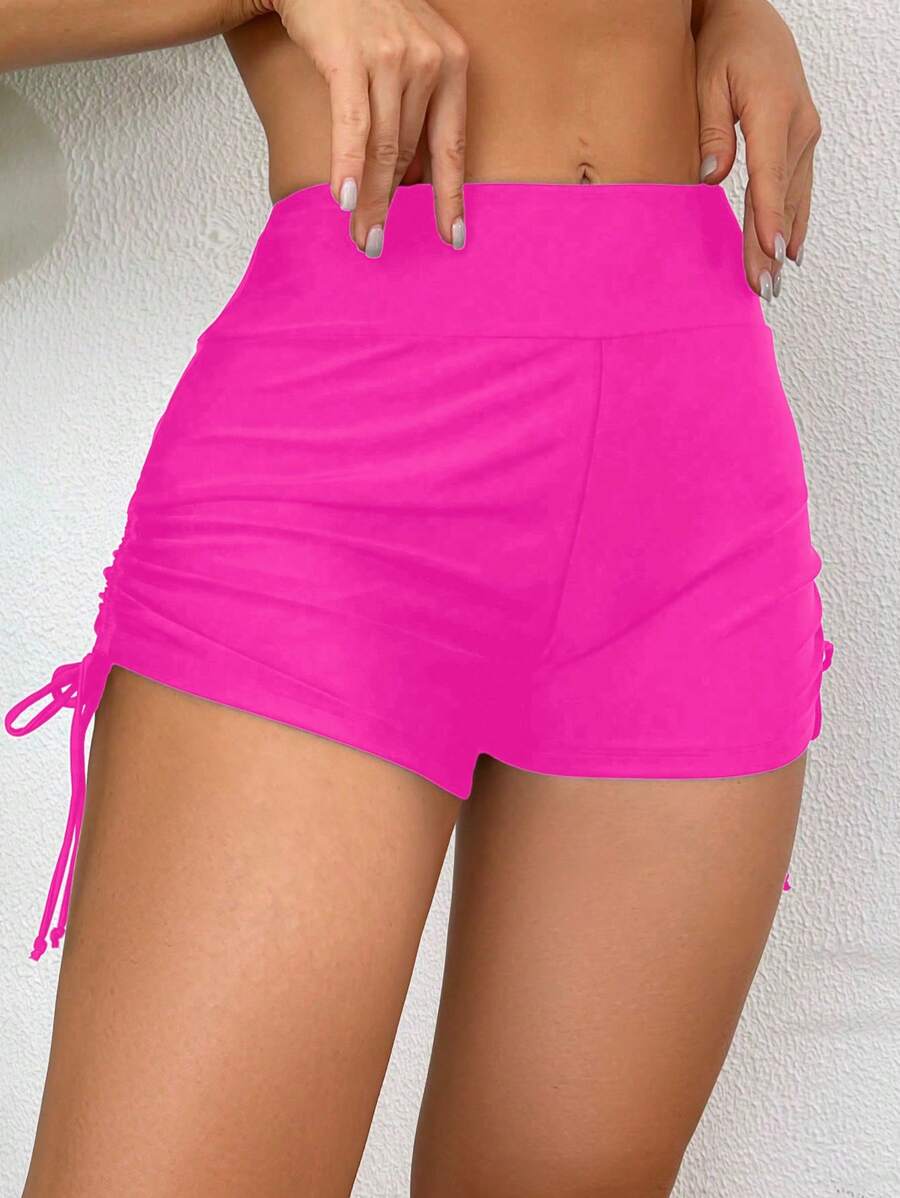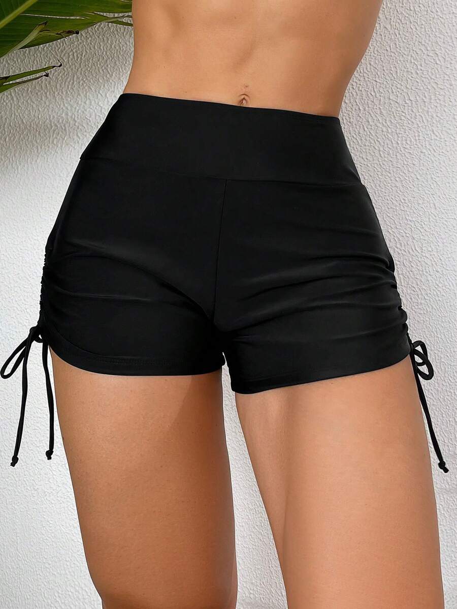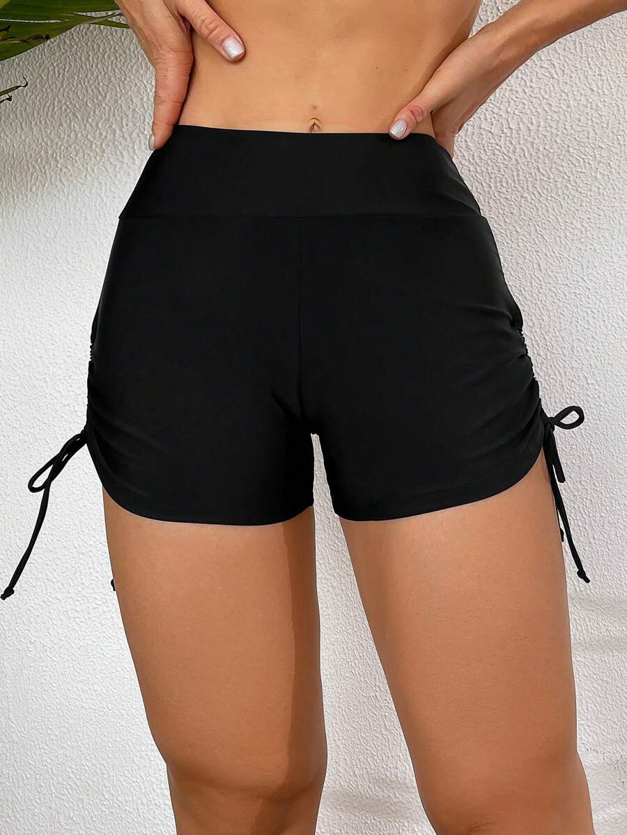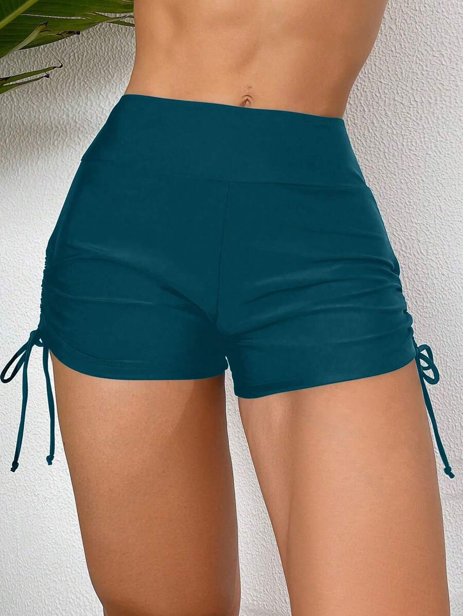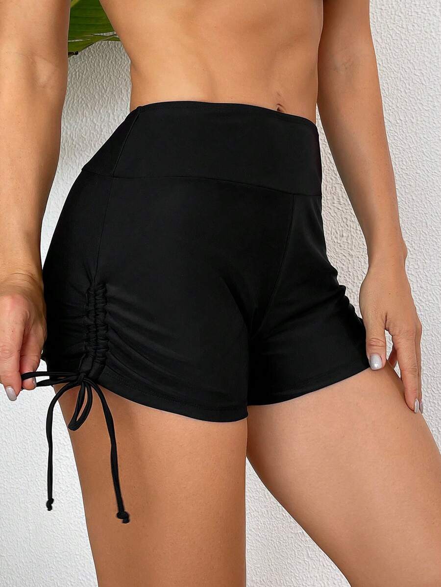 Short de traje de bano con cordon lateral de unicolor para mujer para playa