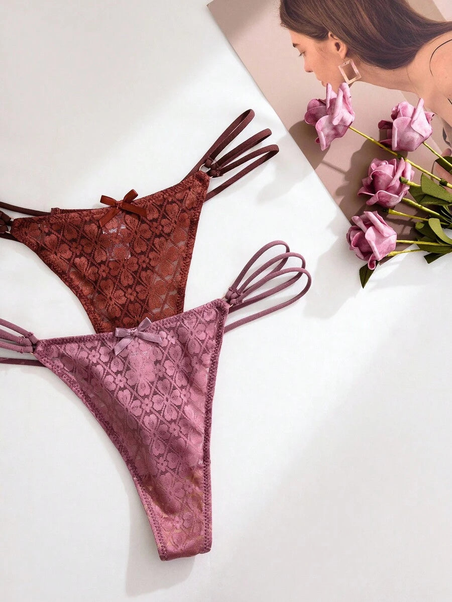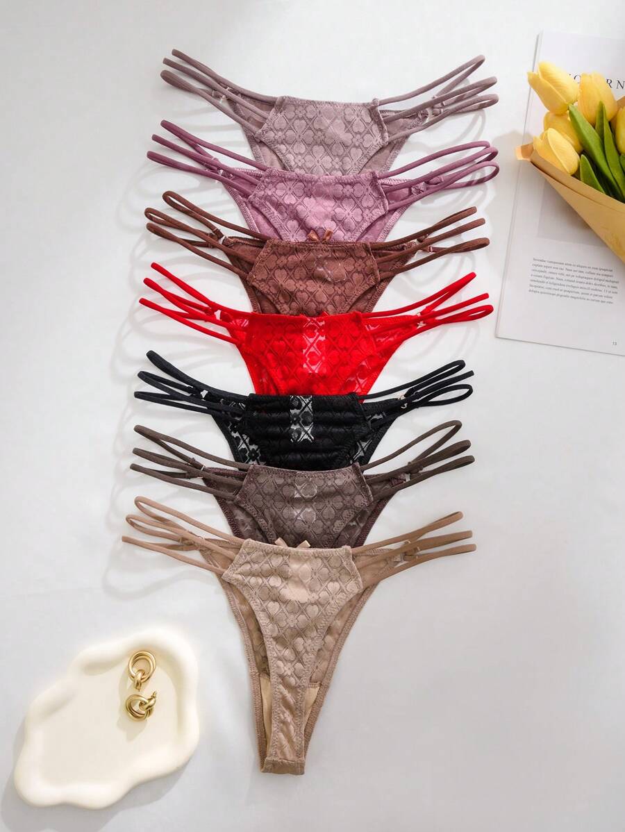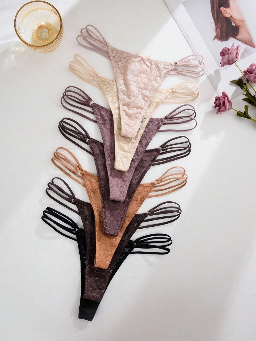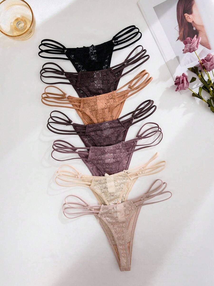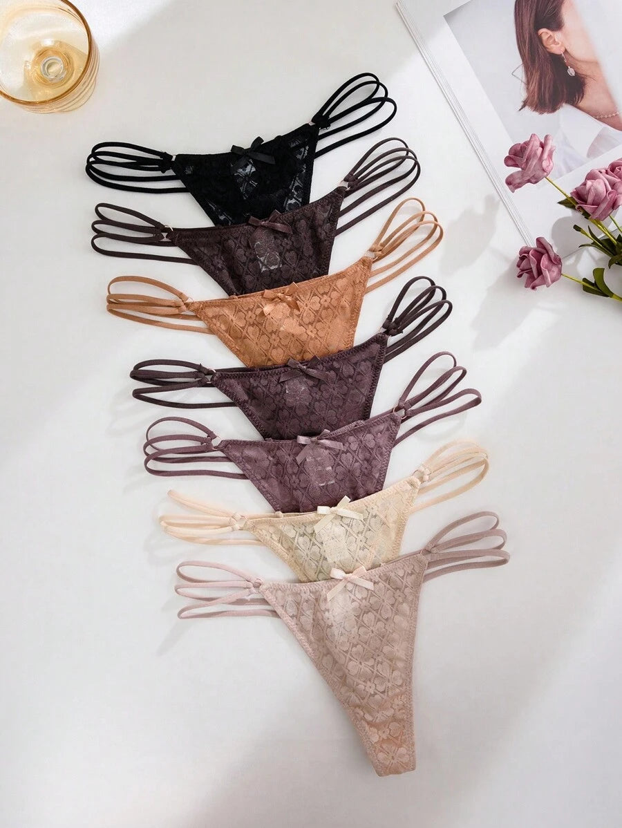 Conjunto de 7 piezas de lenceria romantica y sexy con tanga de encaje – Muy Bonita
