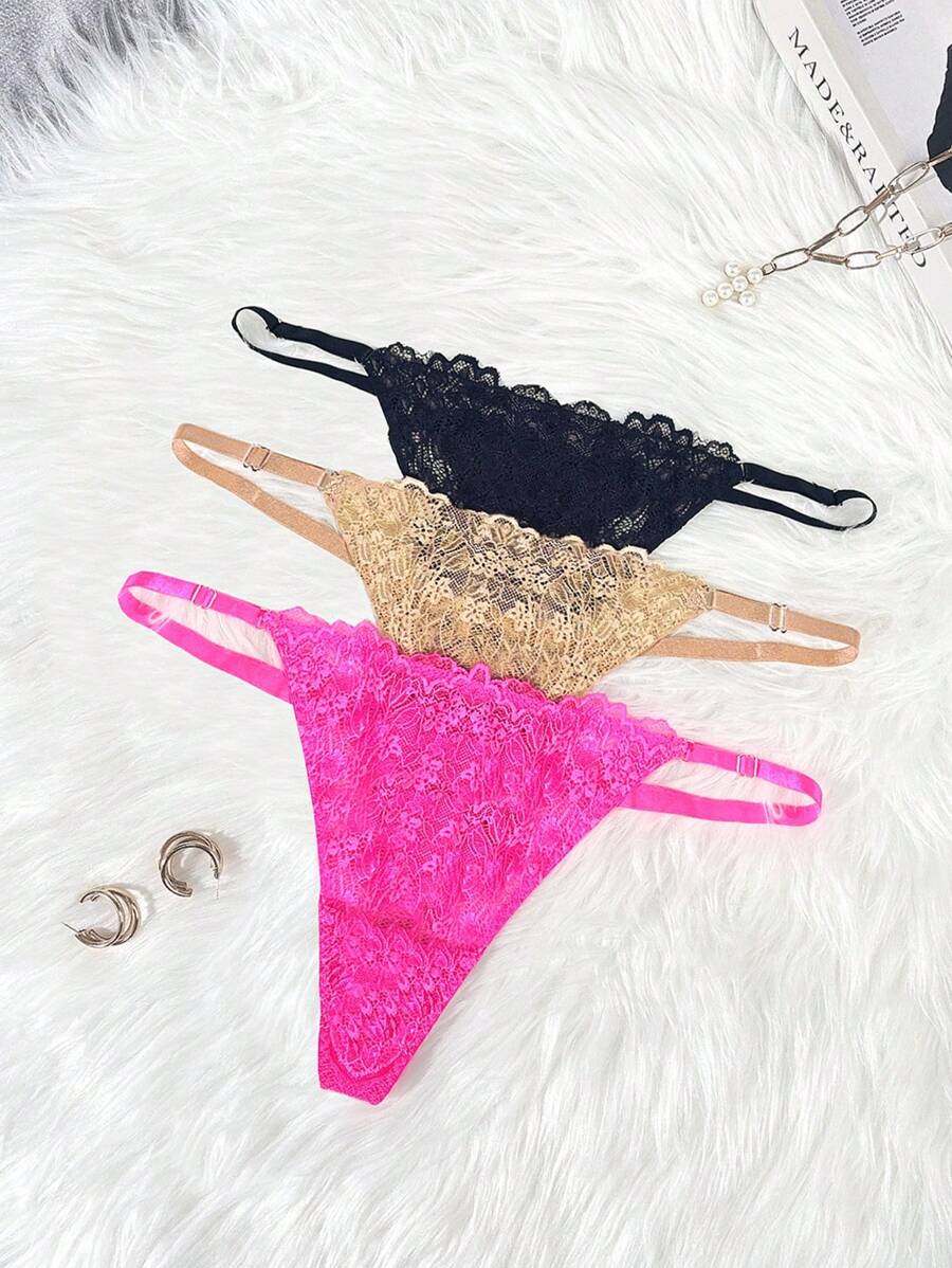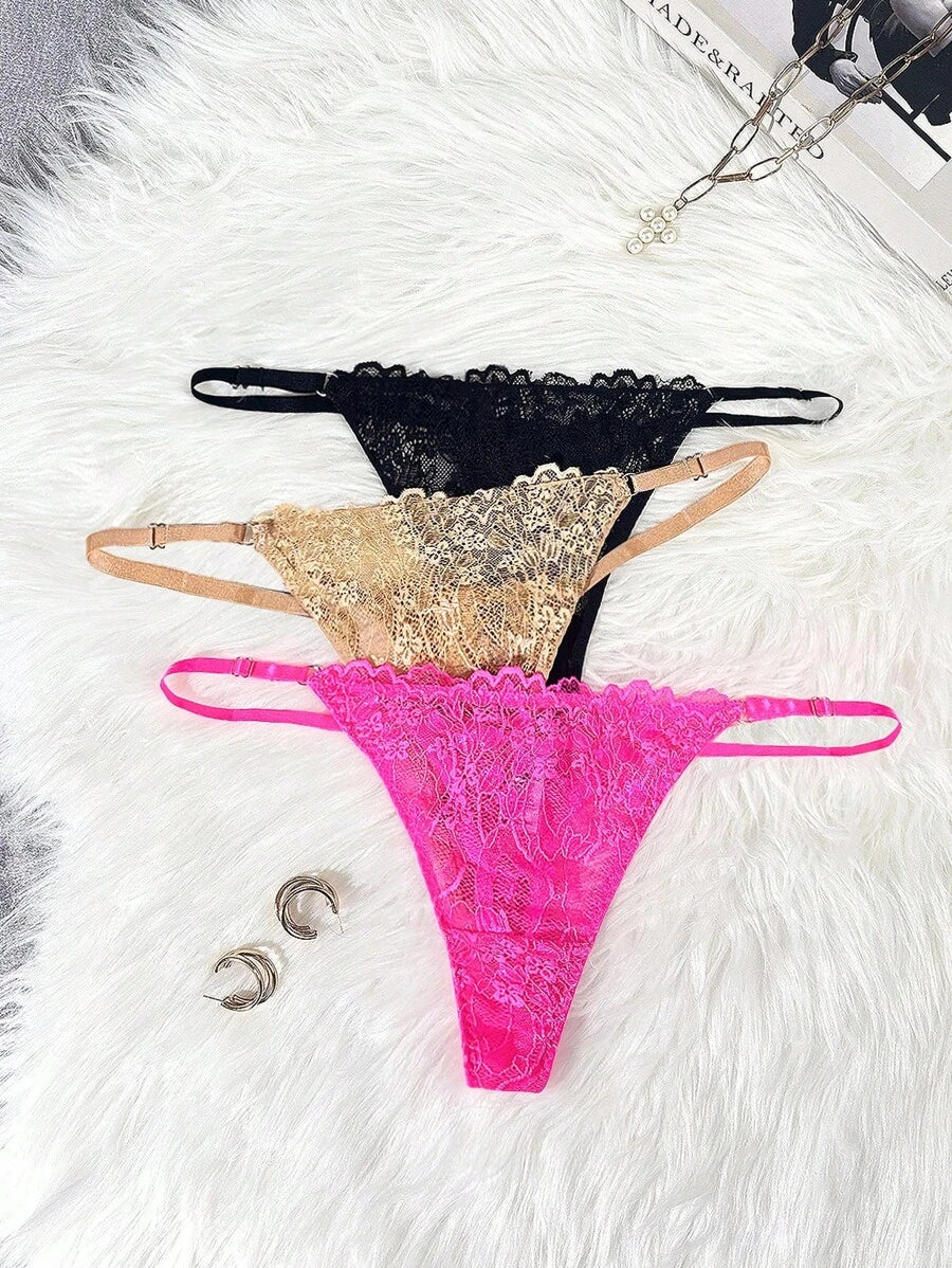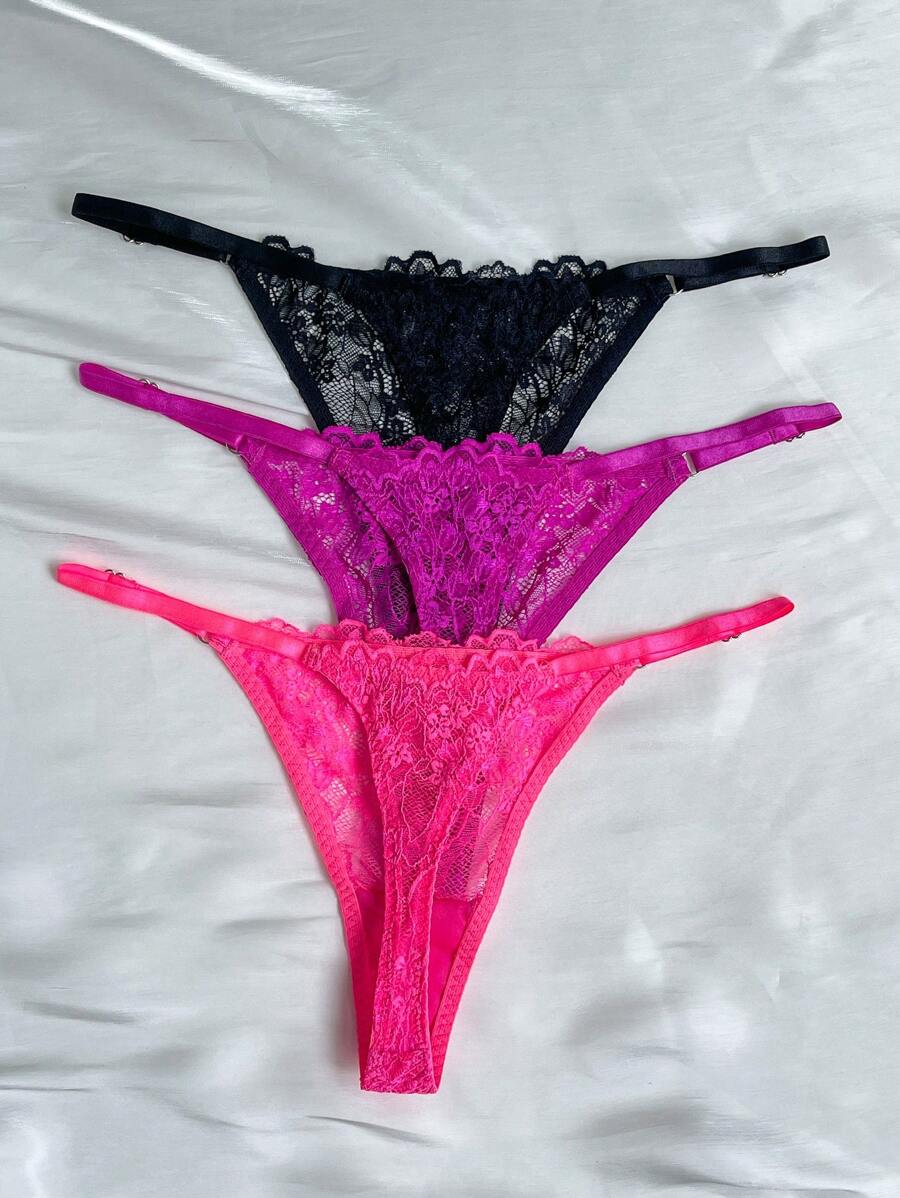 Conjunto de 3 tangas sexy de talle bajo con encaje frances – Muy Bonita
