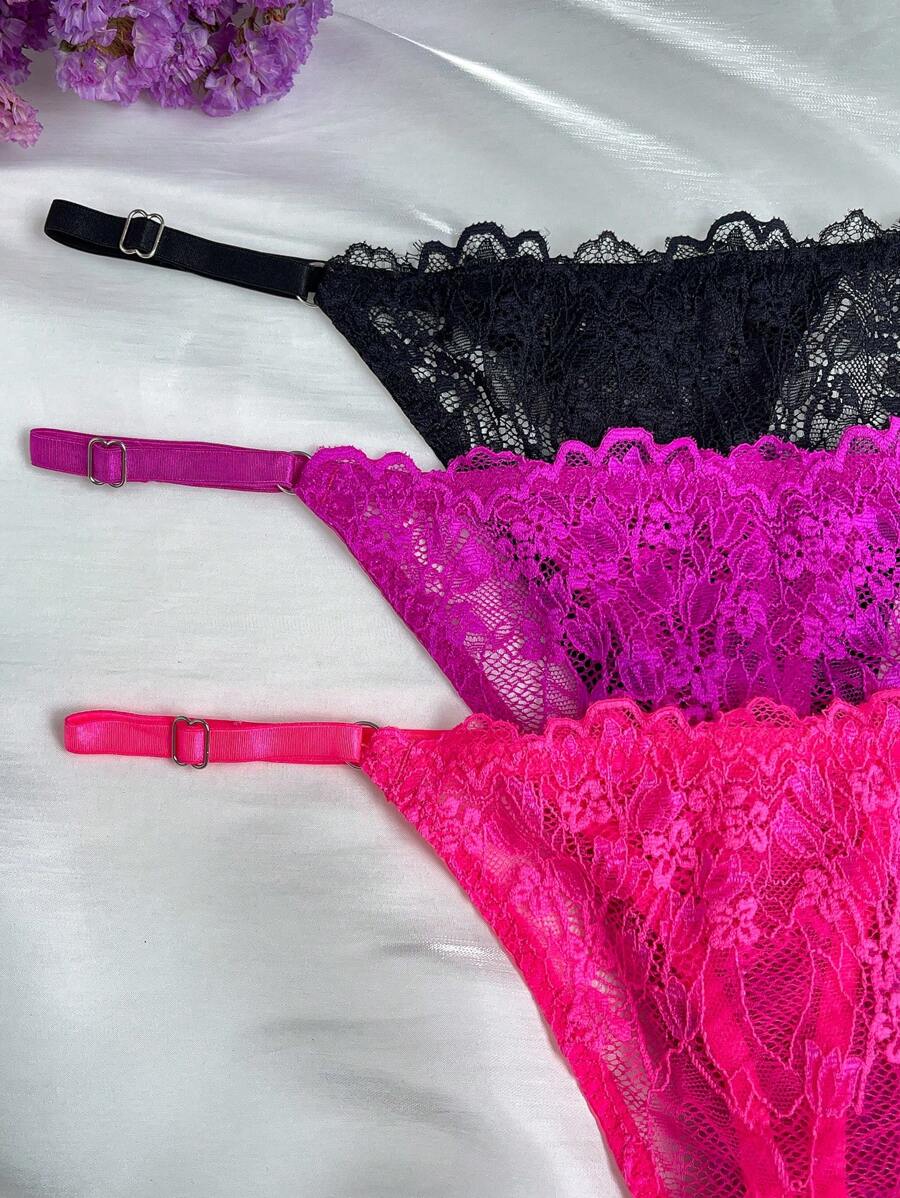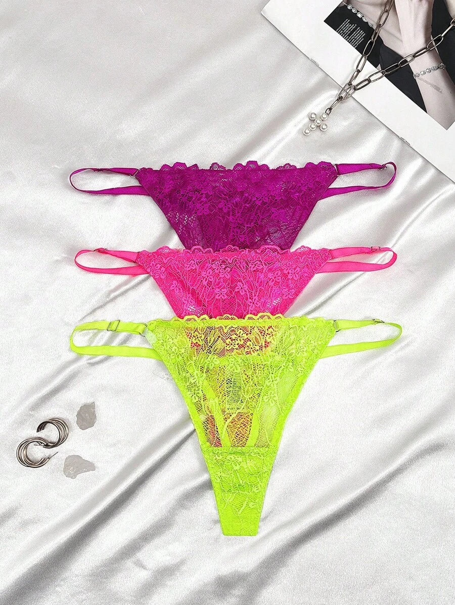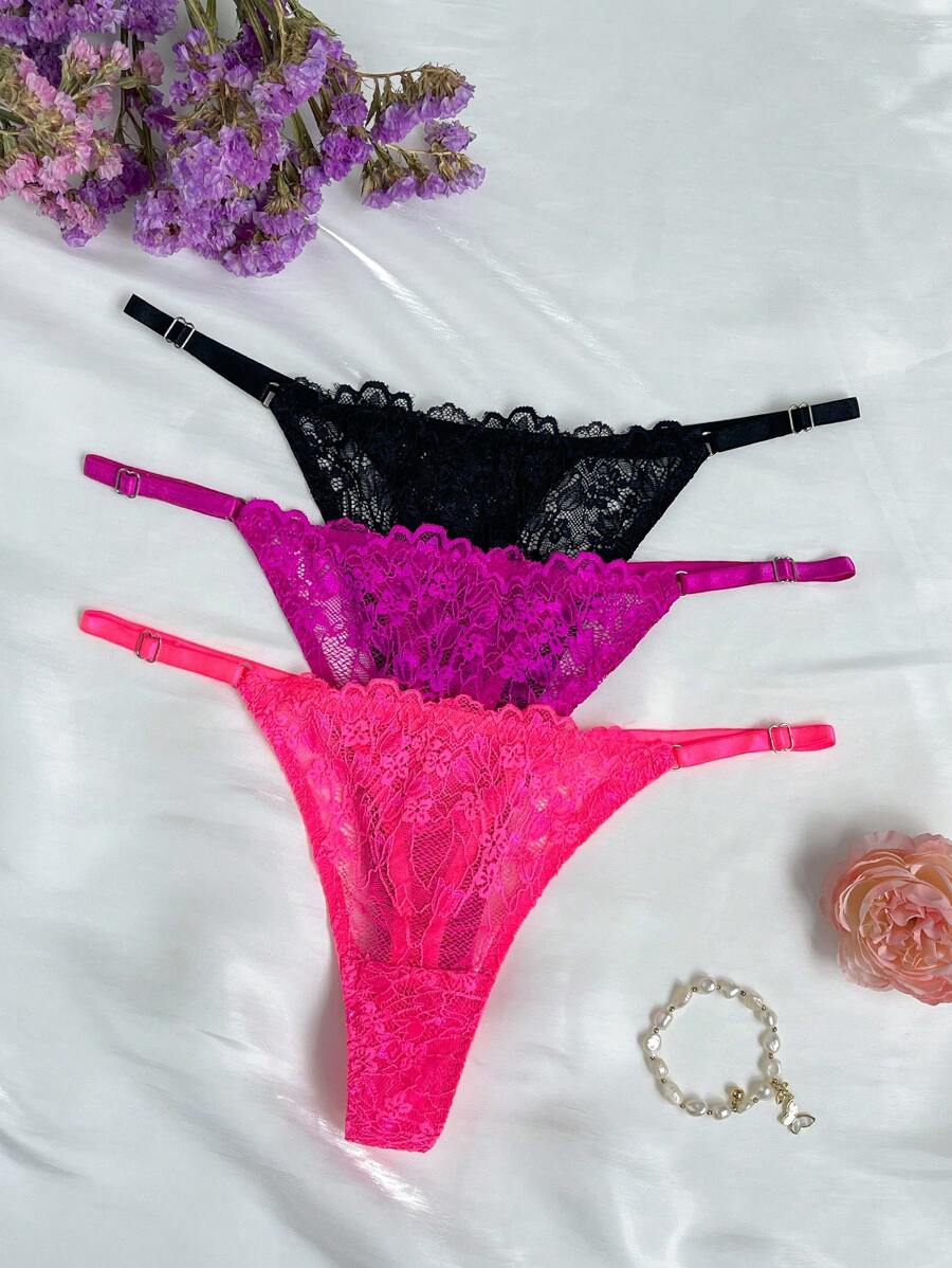 Conjunto de 3 tangas sexy de talle bajo con encaje frances – Muy Bonita