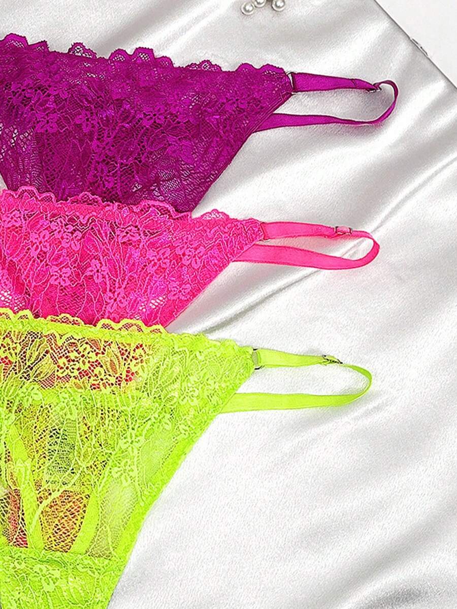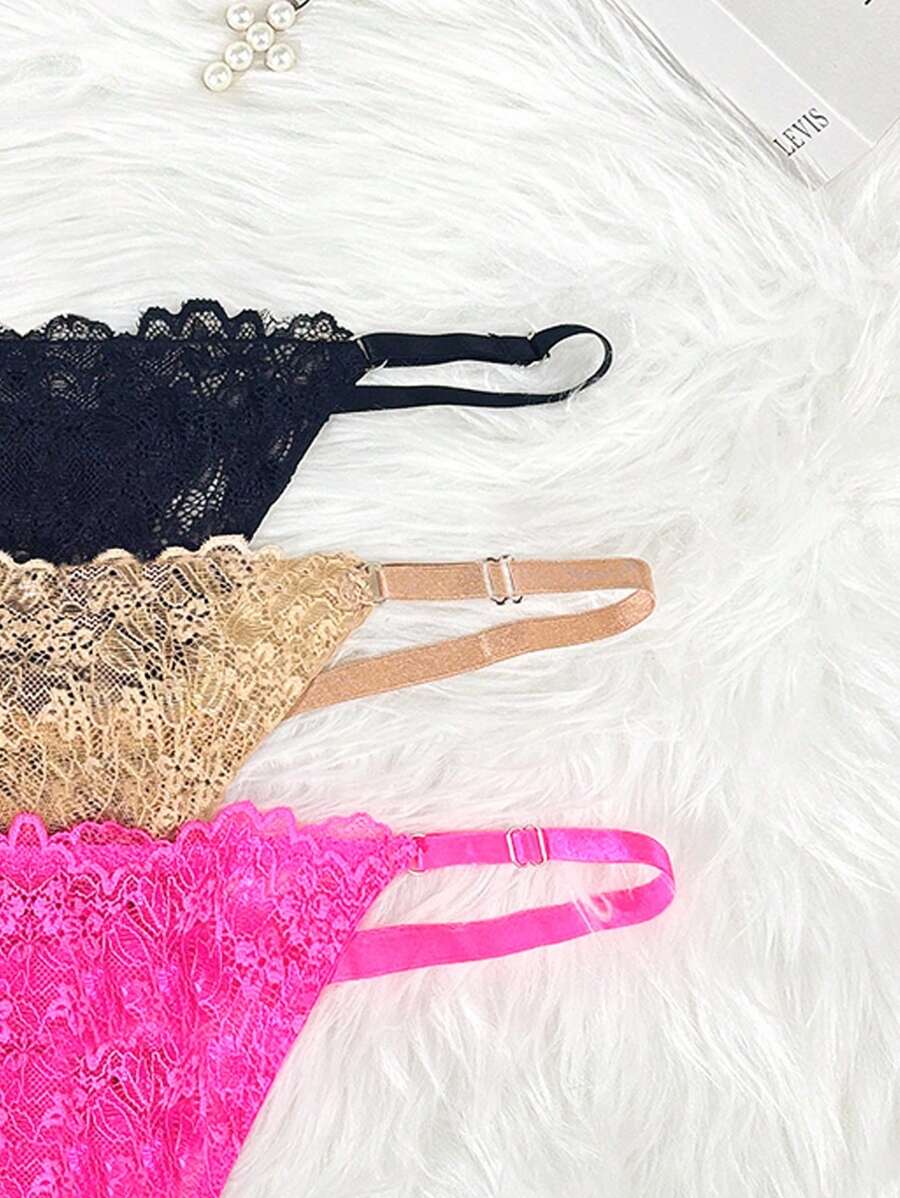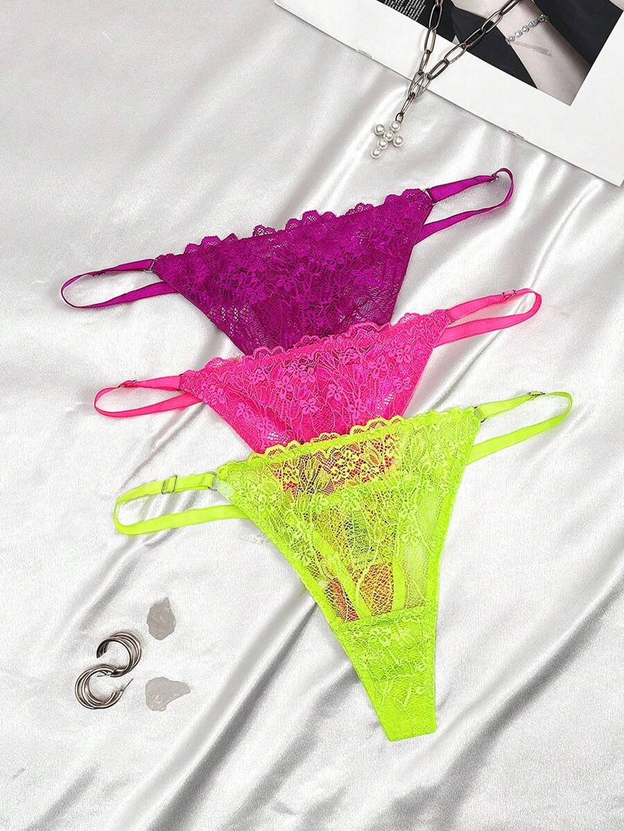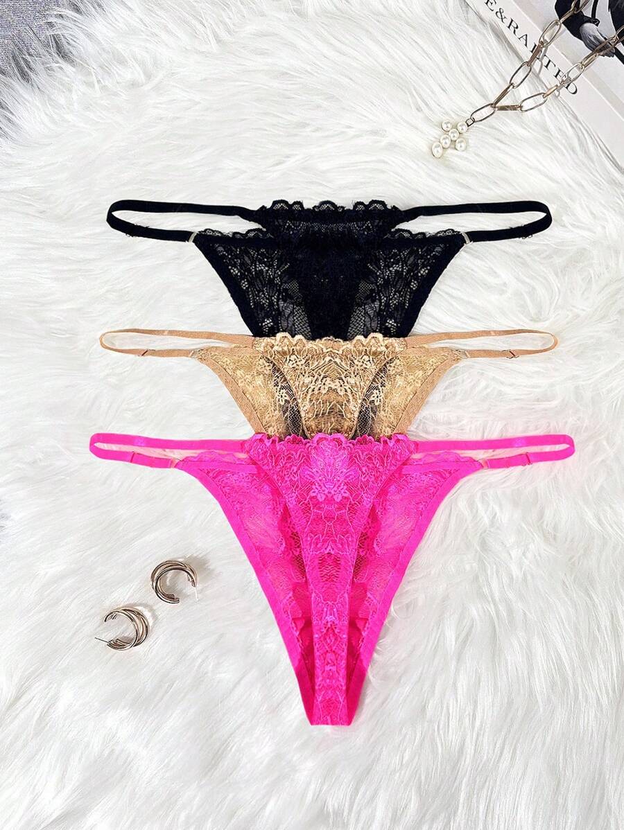Conjunto de 3 tangas sexy de talle bajo con encaje frances