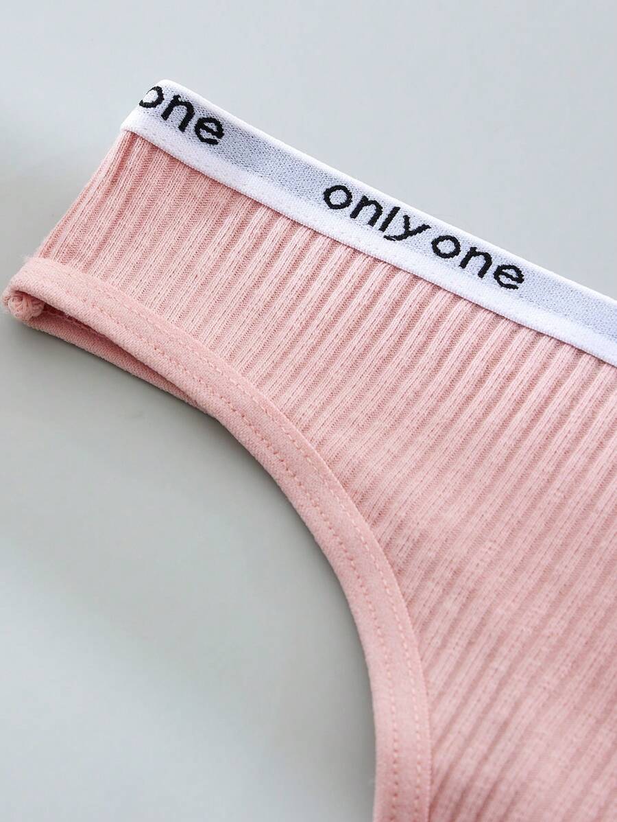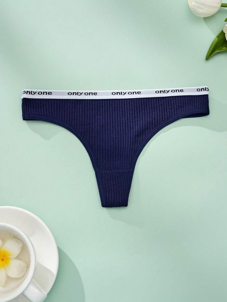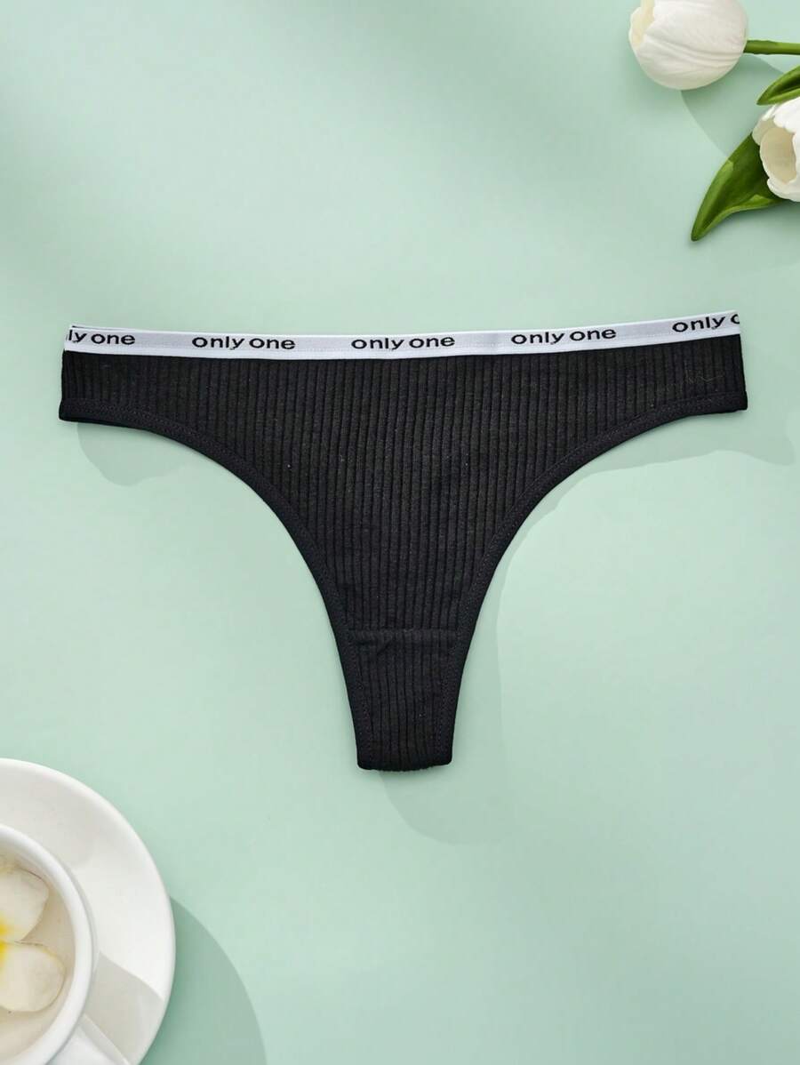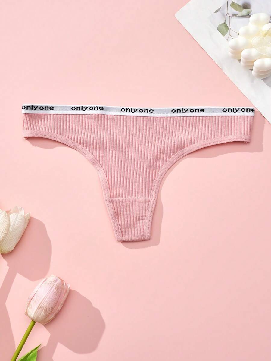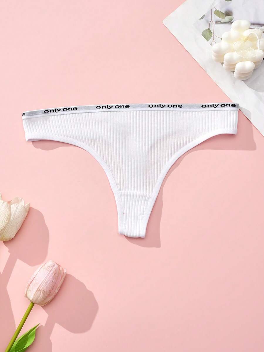Aprsea paquete de 4 tangas de mezcla de algodon de colores aleatorios para mujeres - ropa interior sexy tipo tanga de talle bajo con estampado de letras, tela de punto comoda, calzoncillos con banda elastica sin marcas con diseno de letras