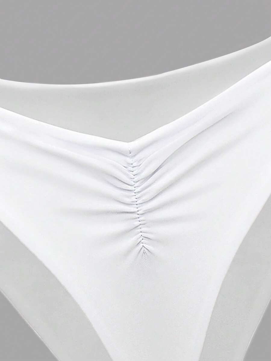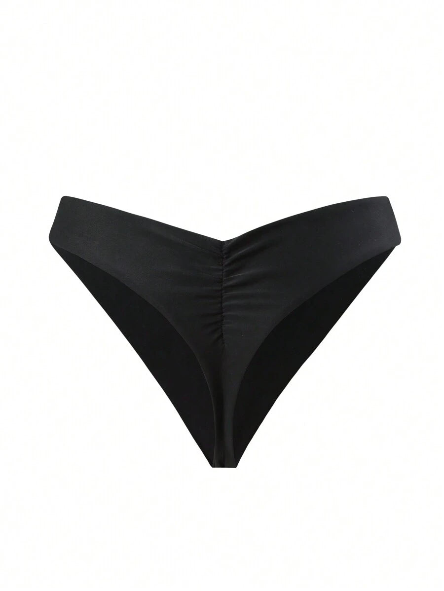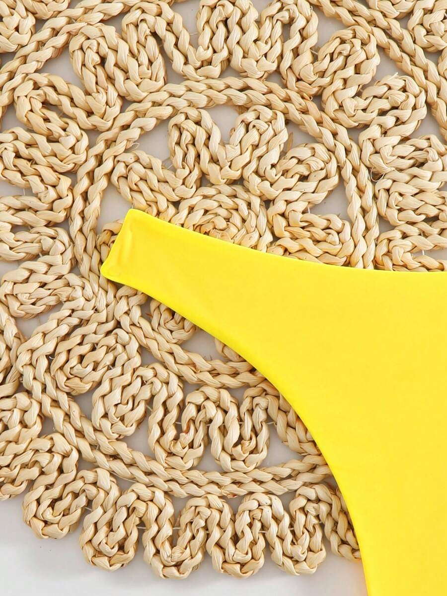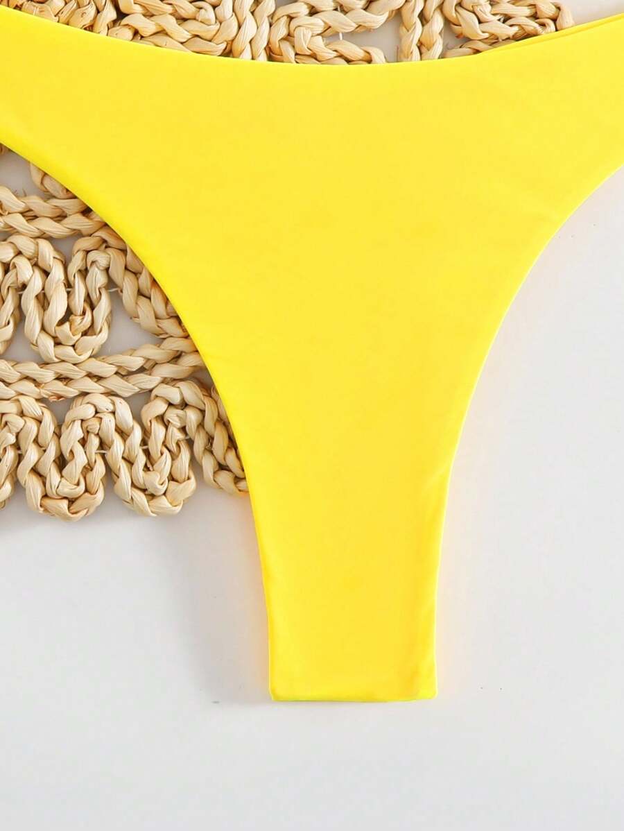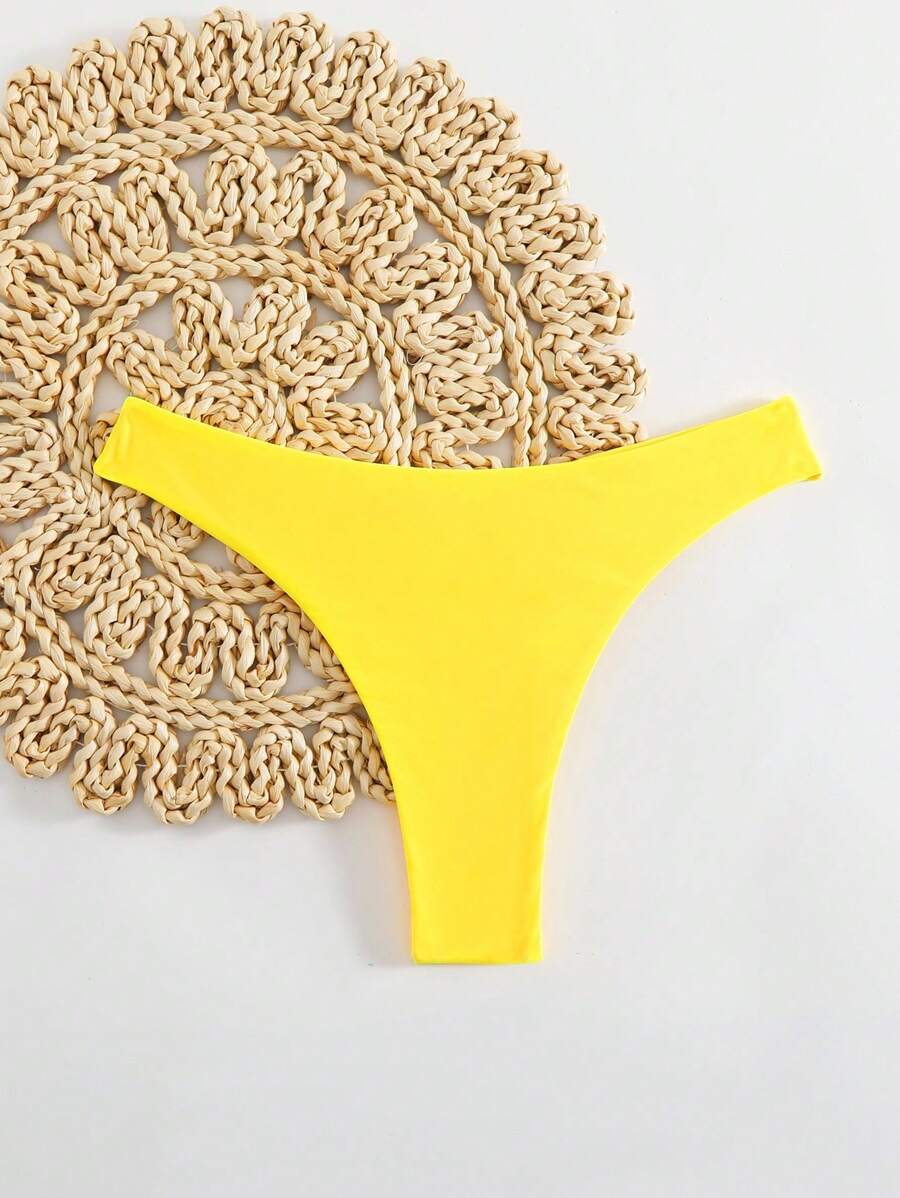 Bottom de bikini triangular amarilla fruncida de unicolor para mujer