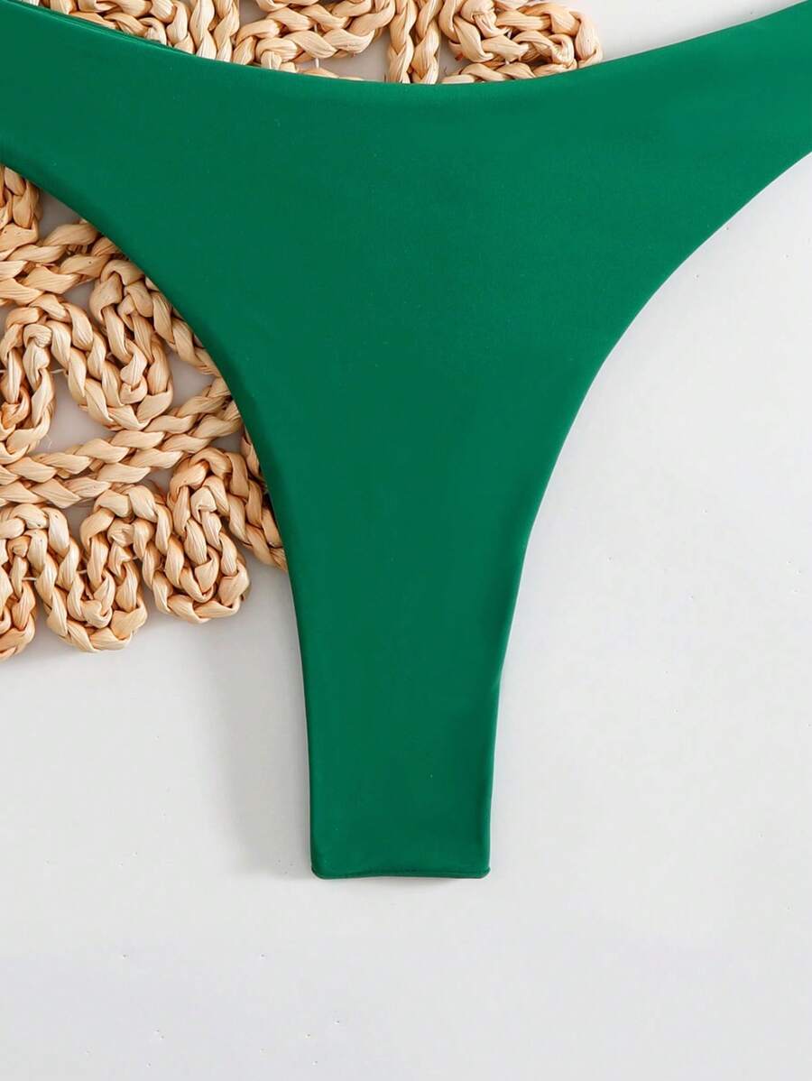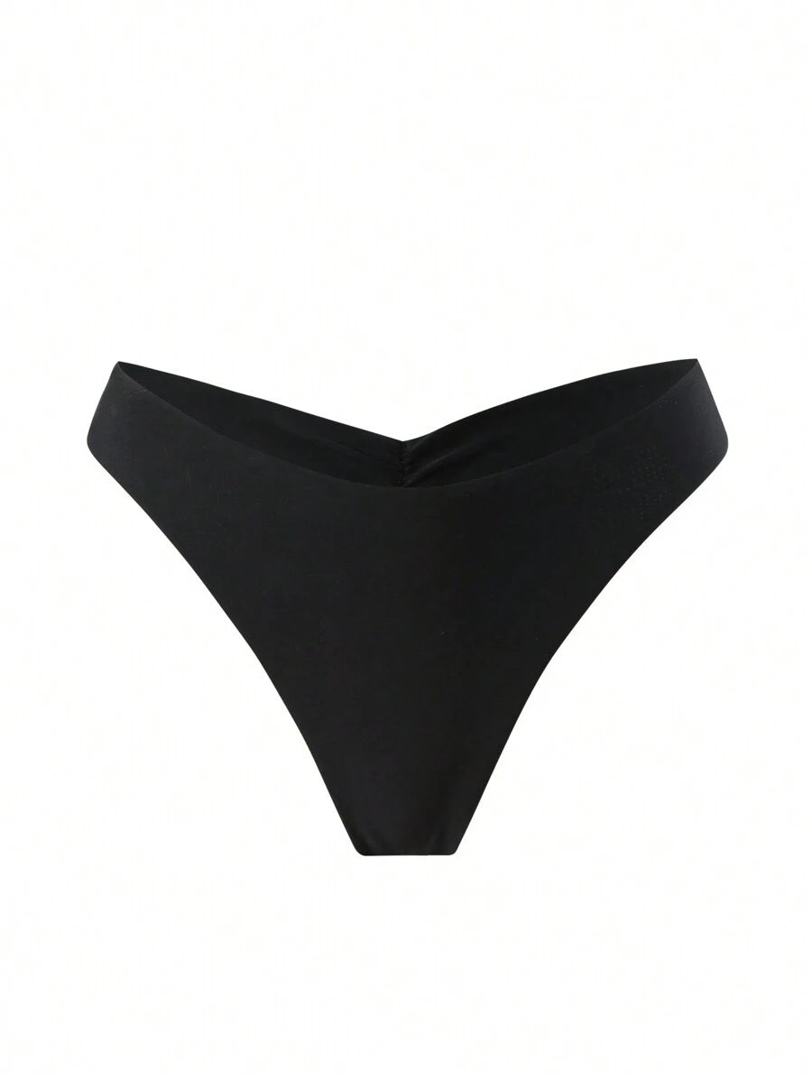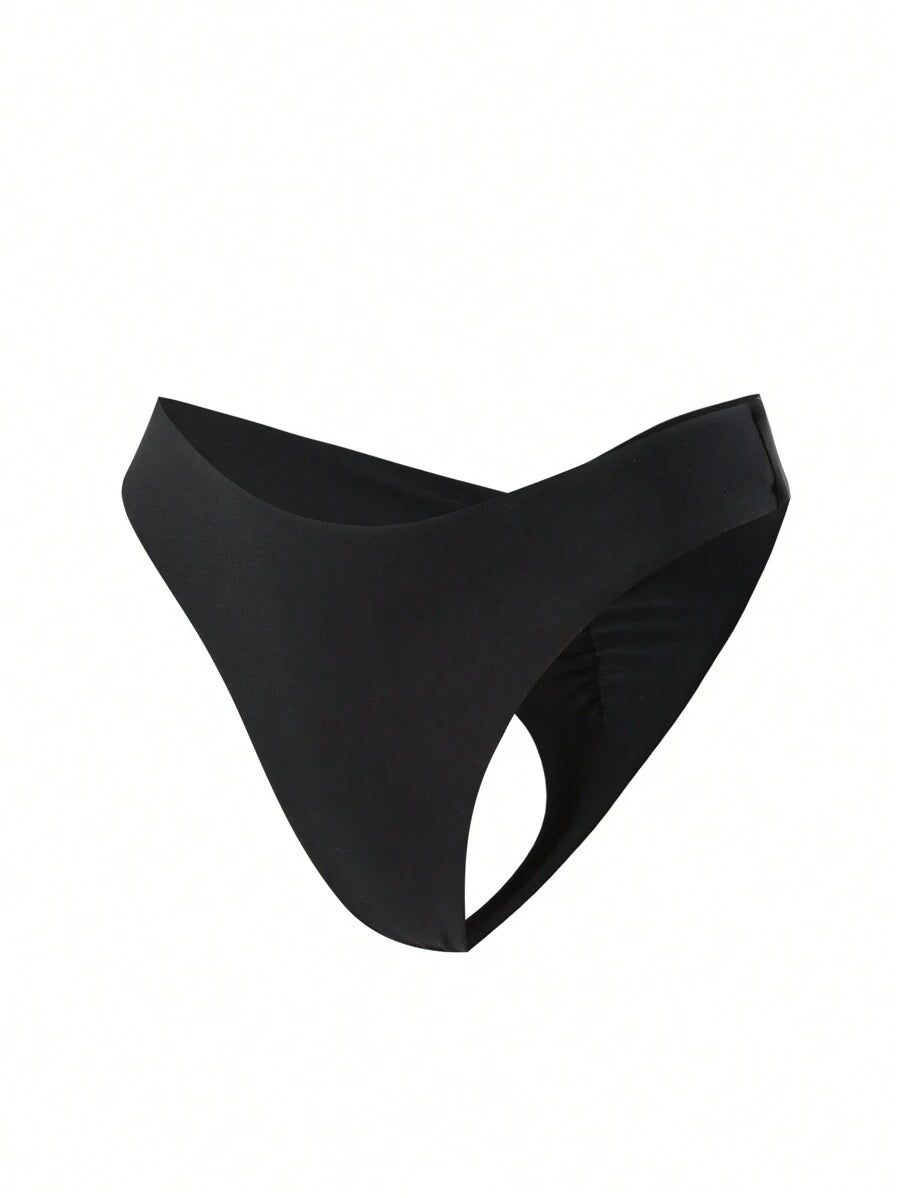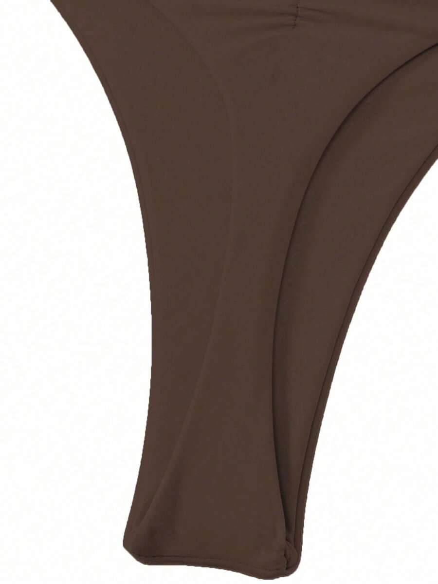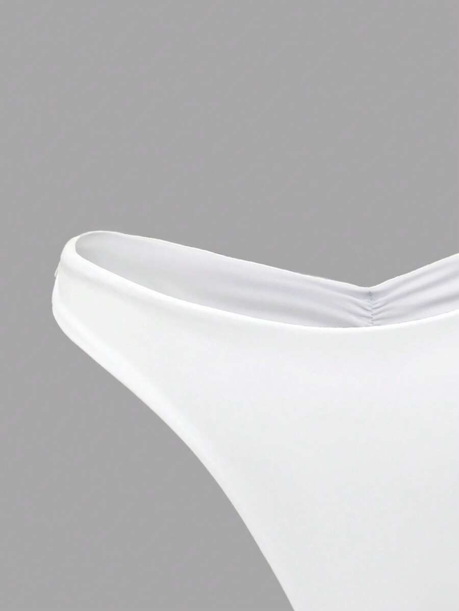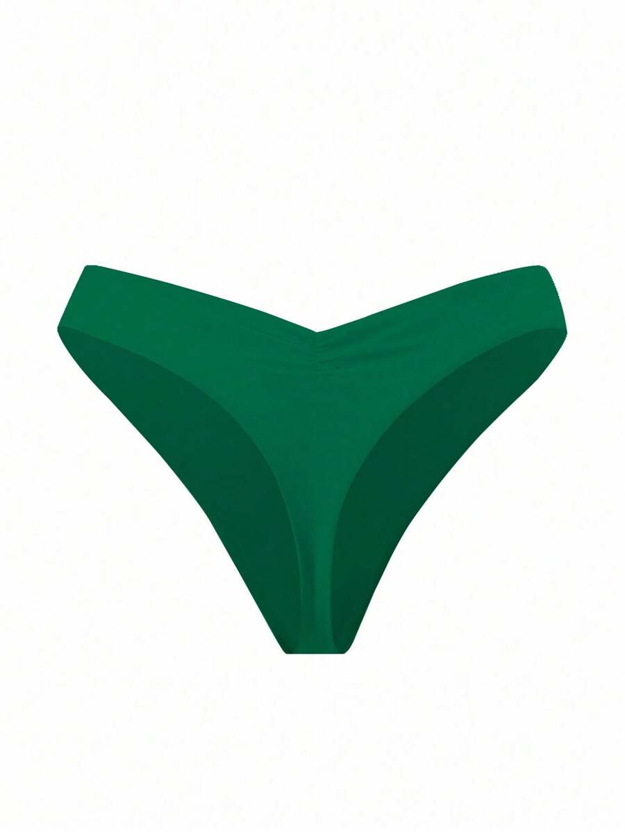 Bottom de bikini triangular amarilla fruncida de unicolor para mujer