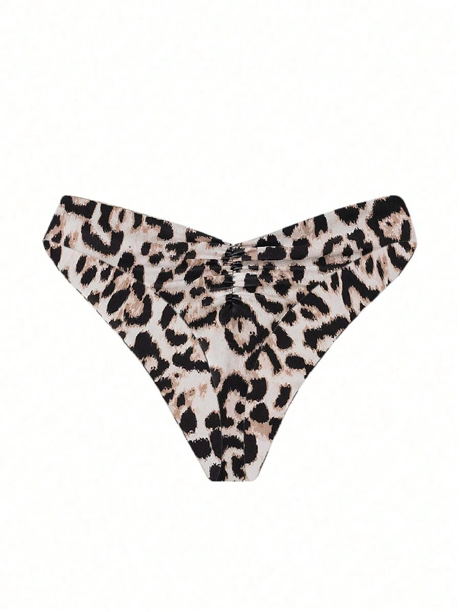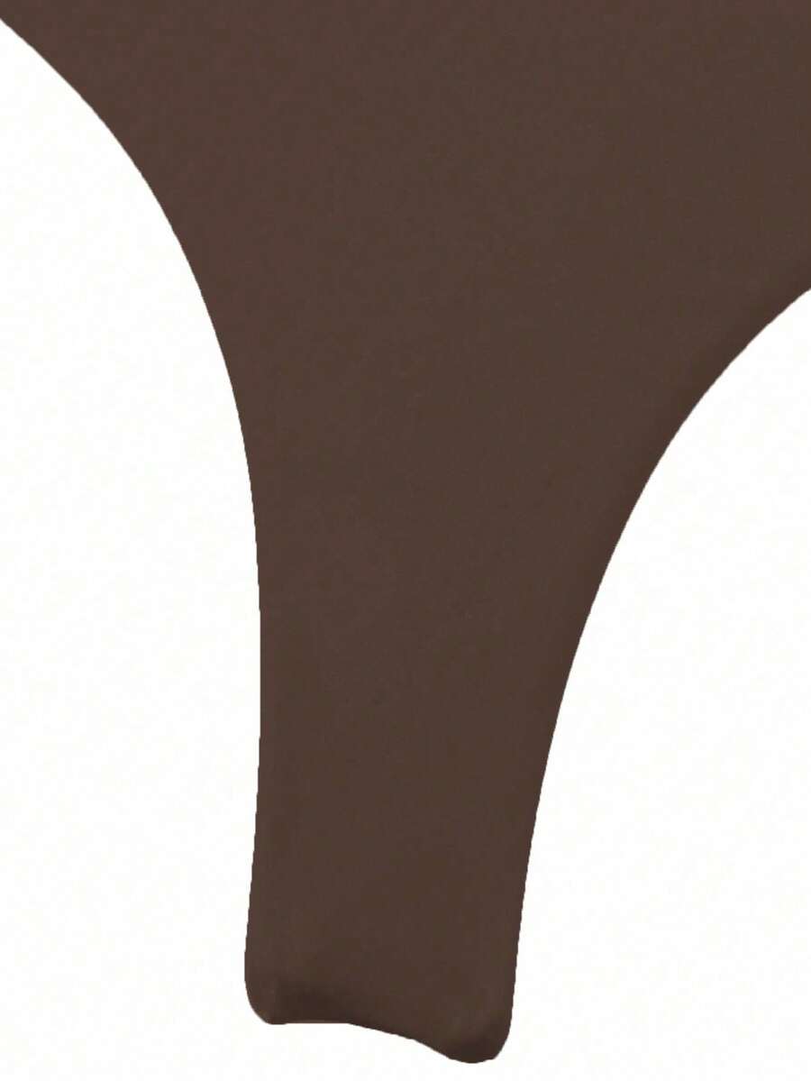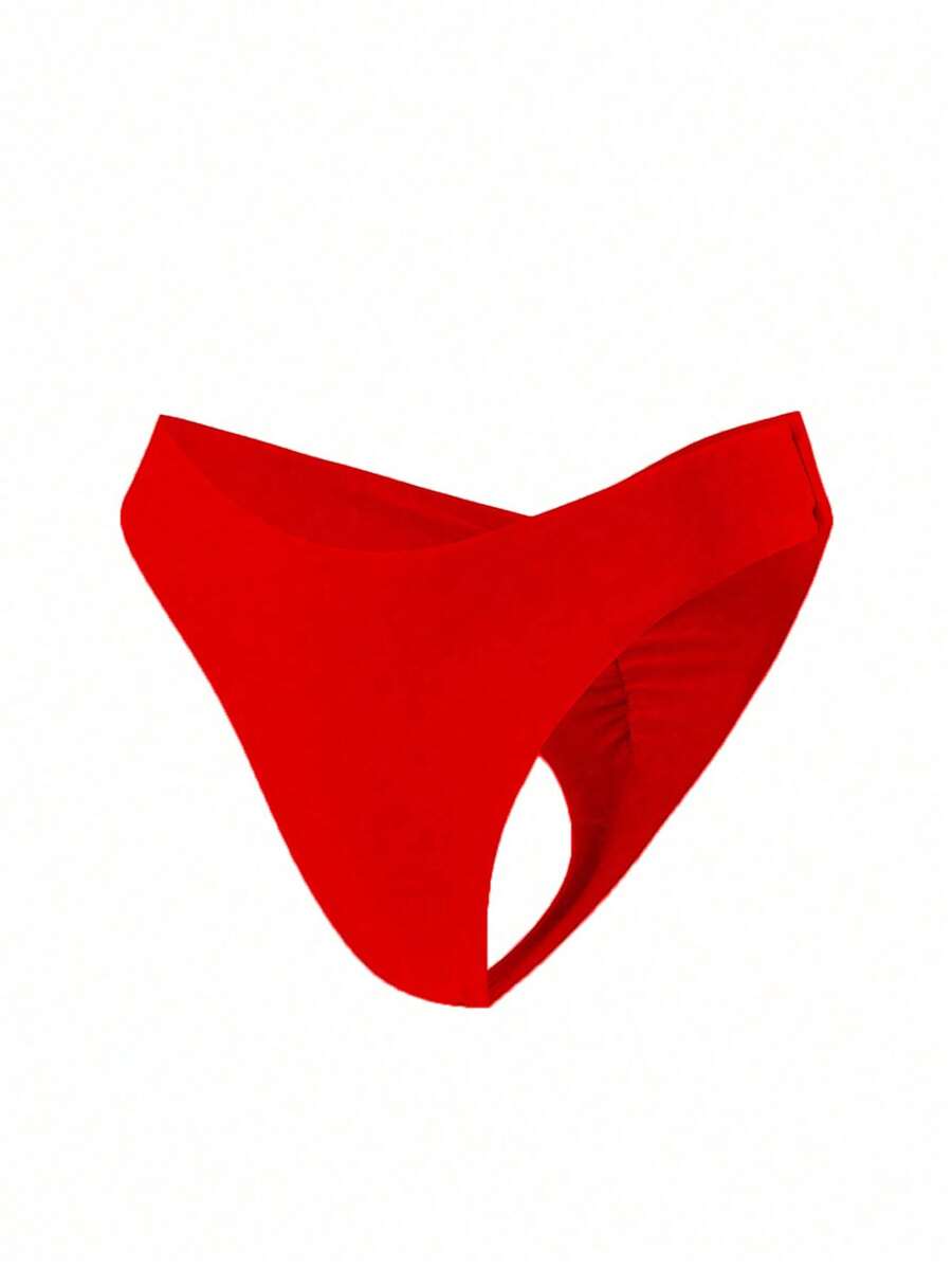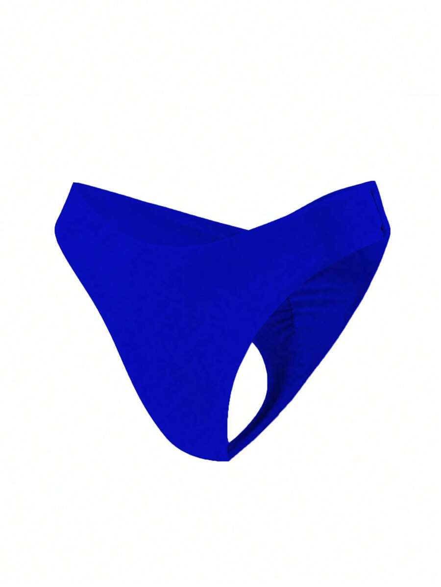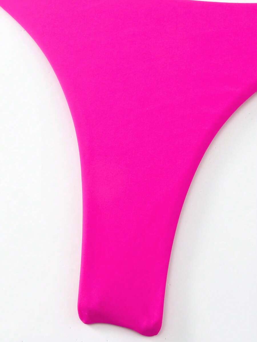 Bottom de bikini triangular amarilla fruncida de unicolor para mujer