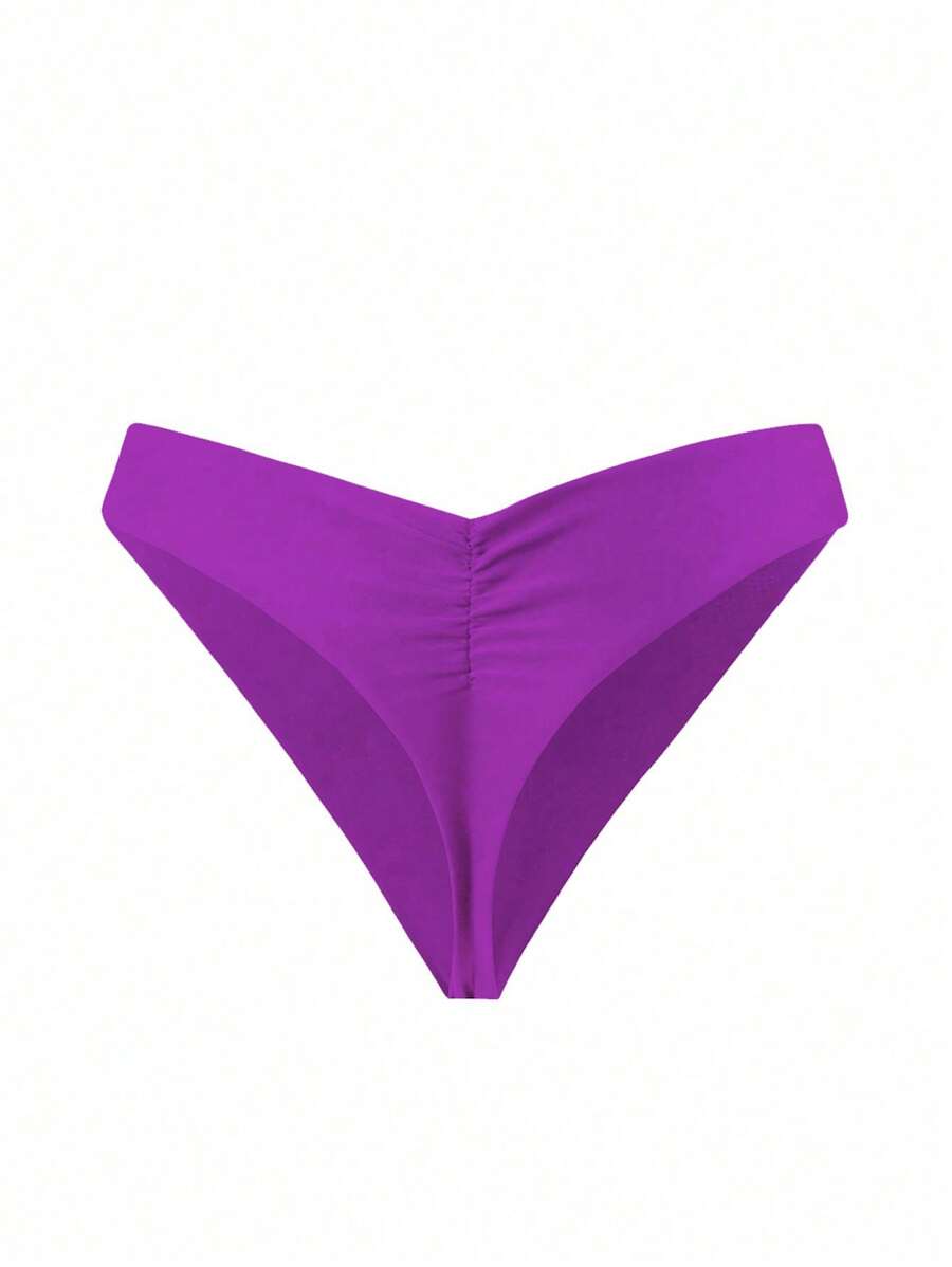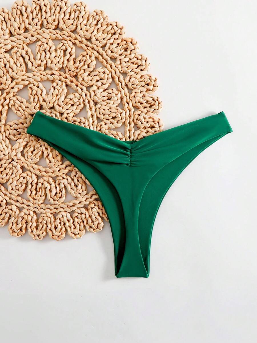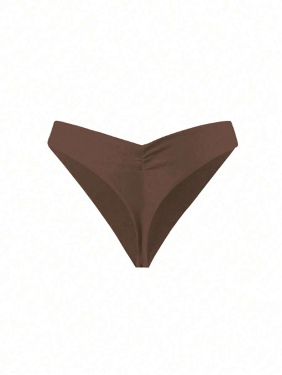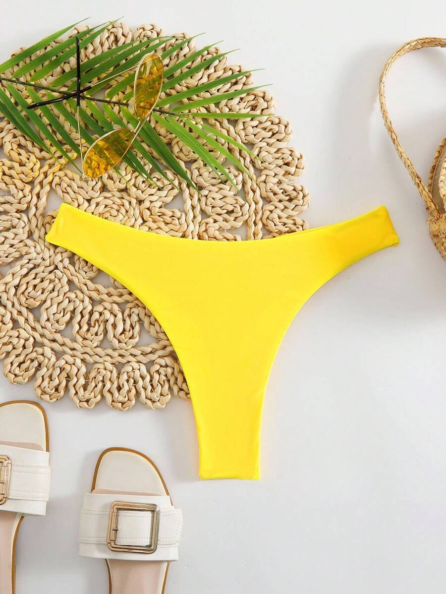 Bottom de bikini triangular amarilla fruncida de unicolor para mujer – Muy Bonita
