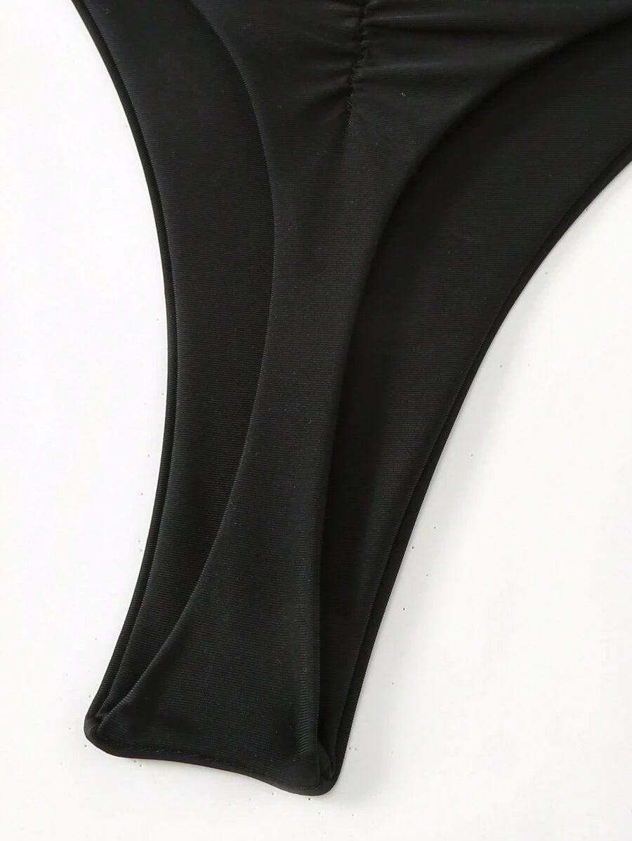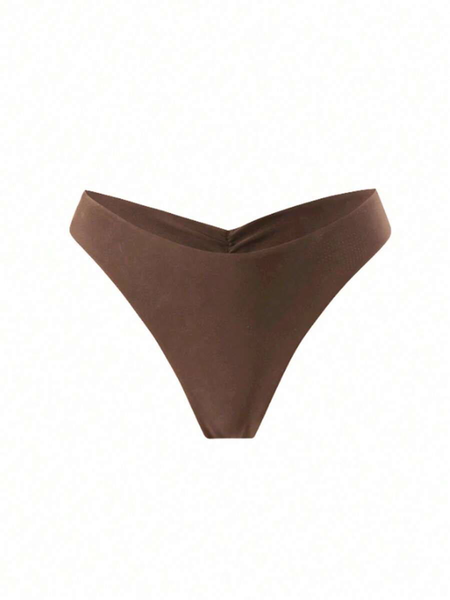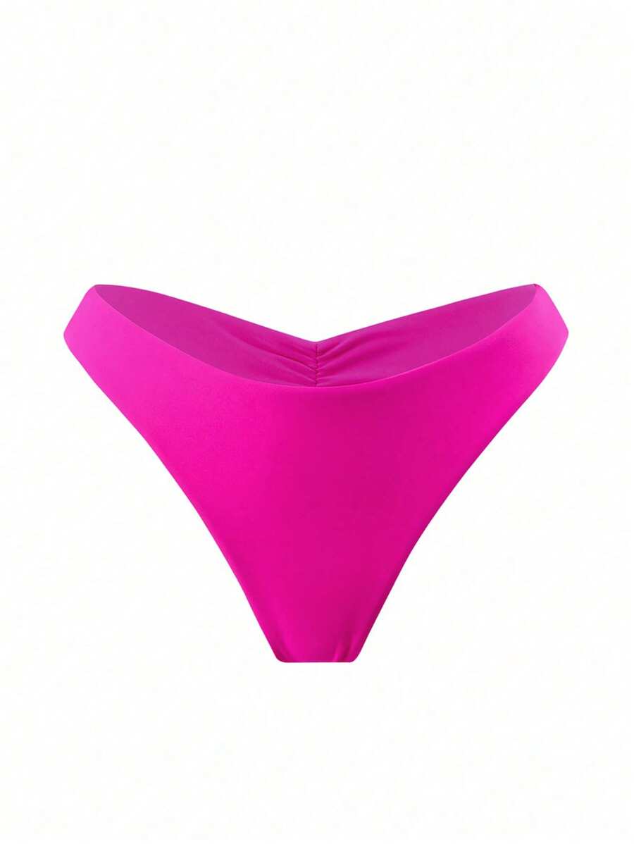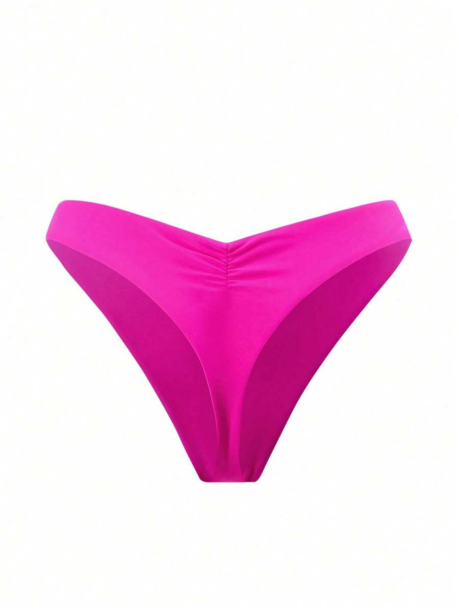 Bottom de bikini triangular amarilla fruncida de unicolor para mujer – Muy Bonita