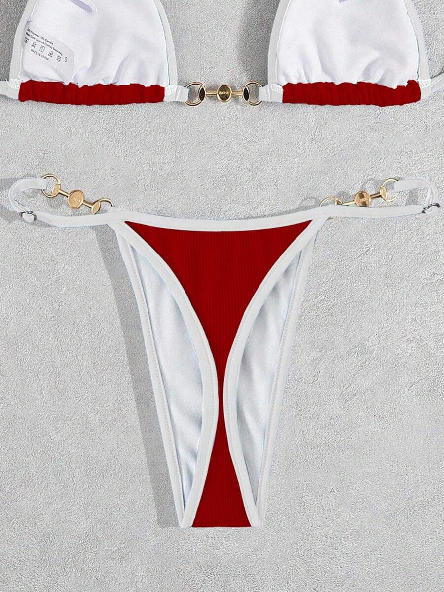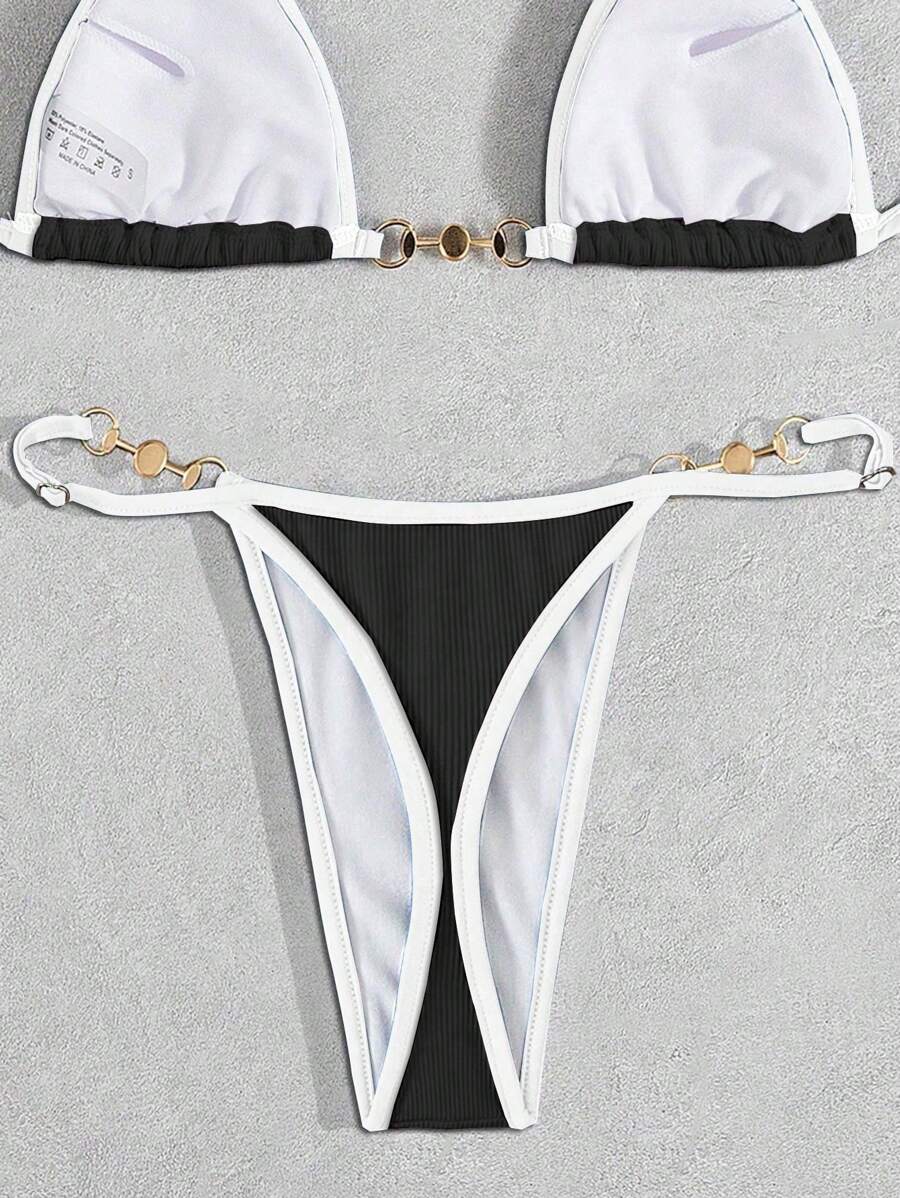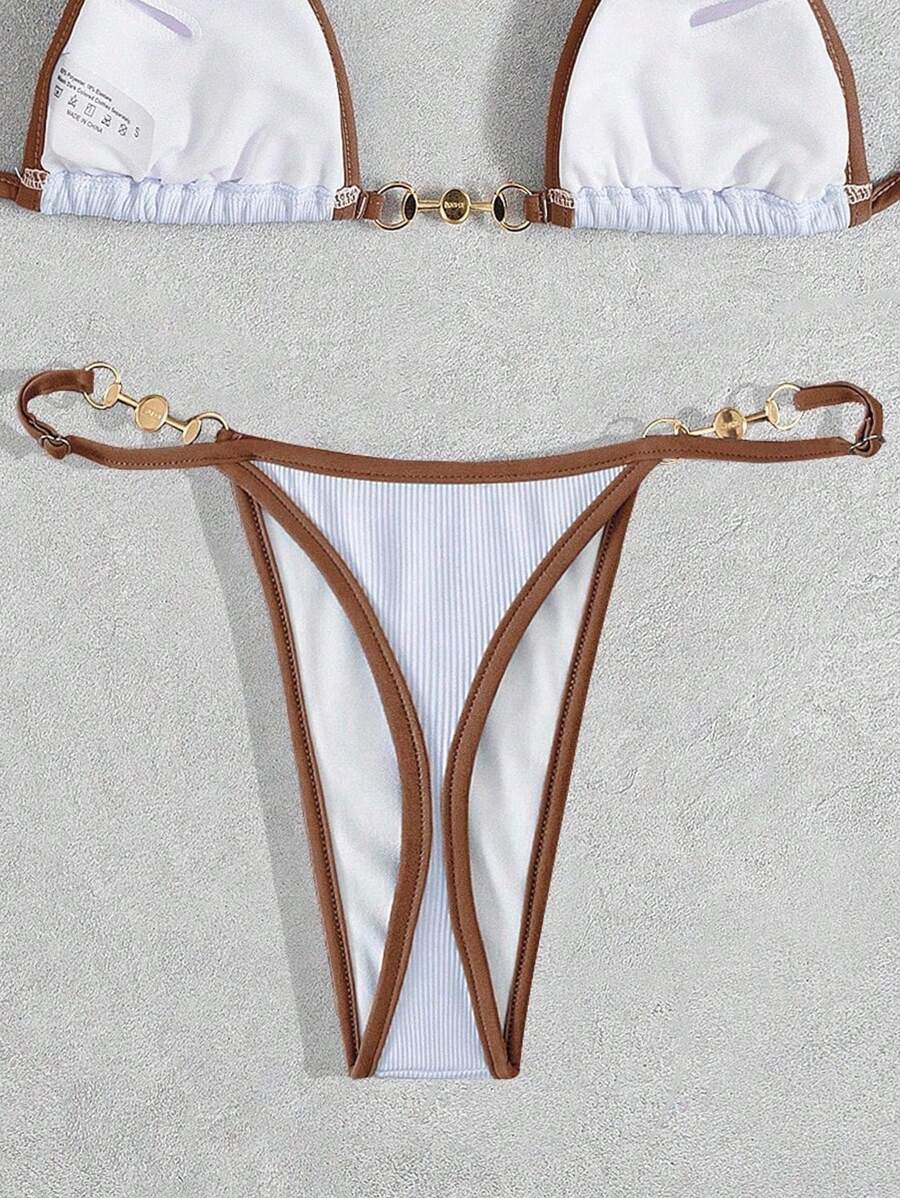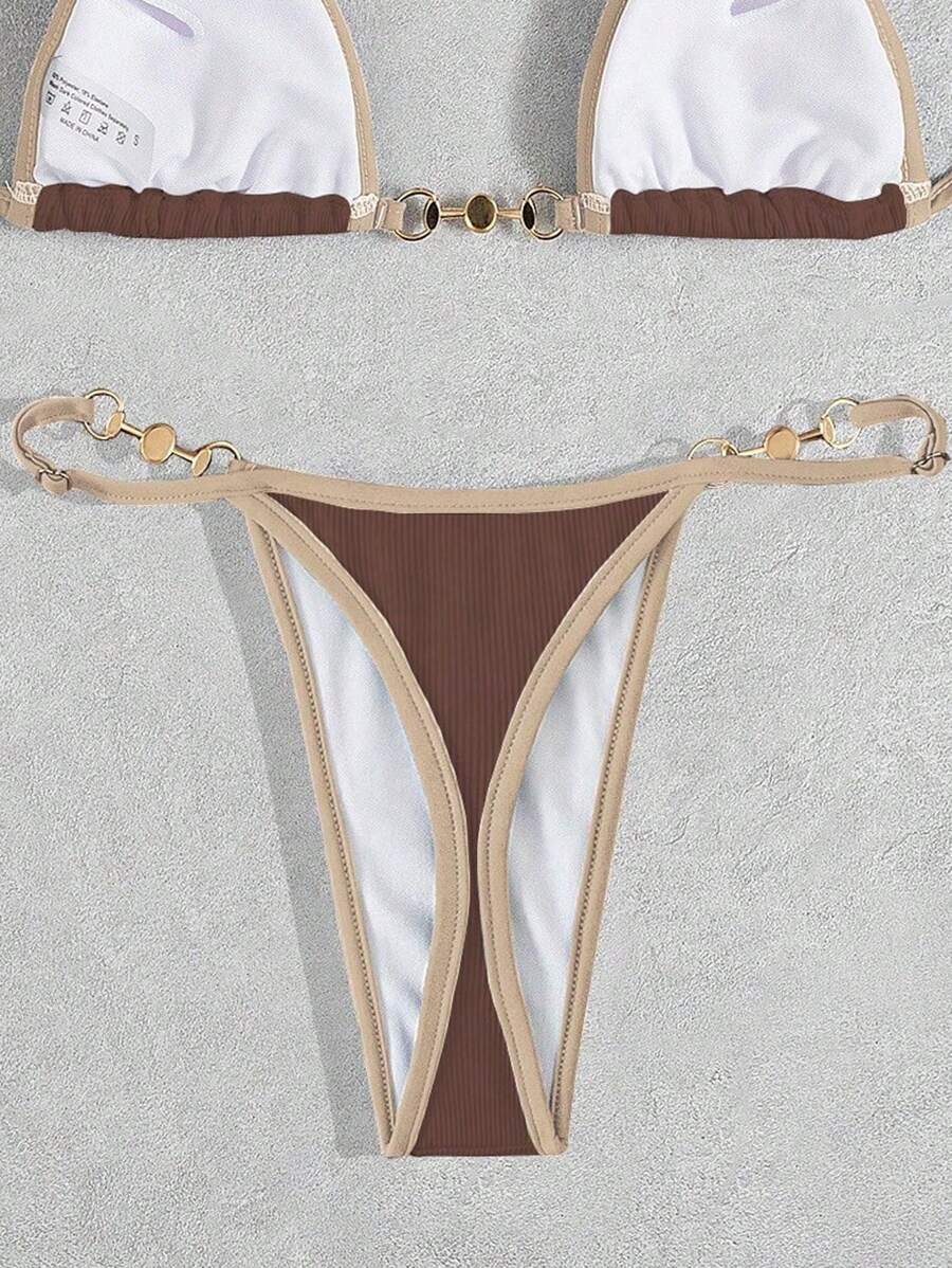 Bottom de bikini con decoracion metalica para vacaciones de verano en la playa de mujer