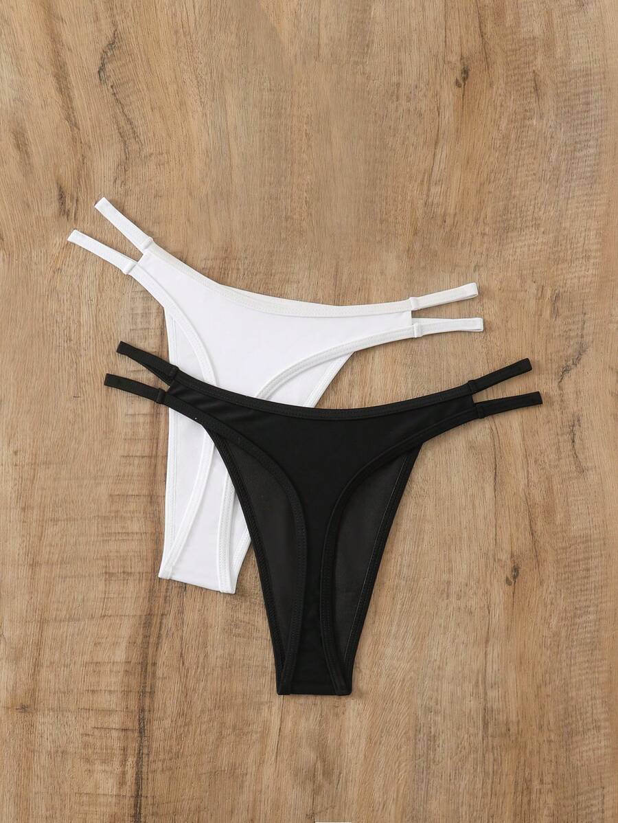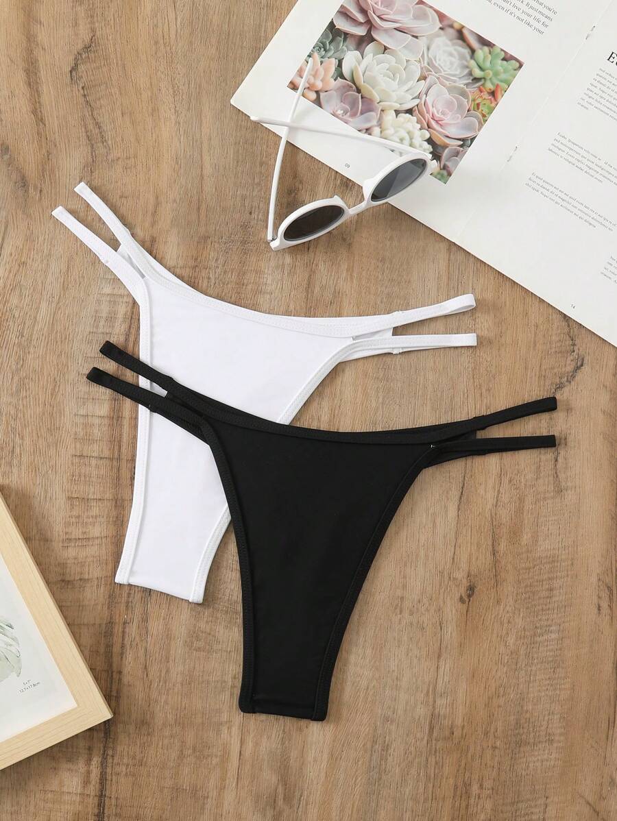 Conjunto de 2 tangas de bikini negro y blanco lisos y sexys para mujer – Muy Bonita