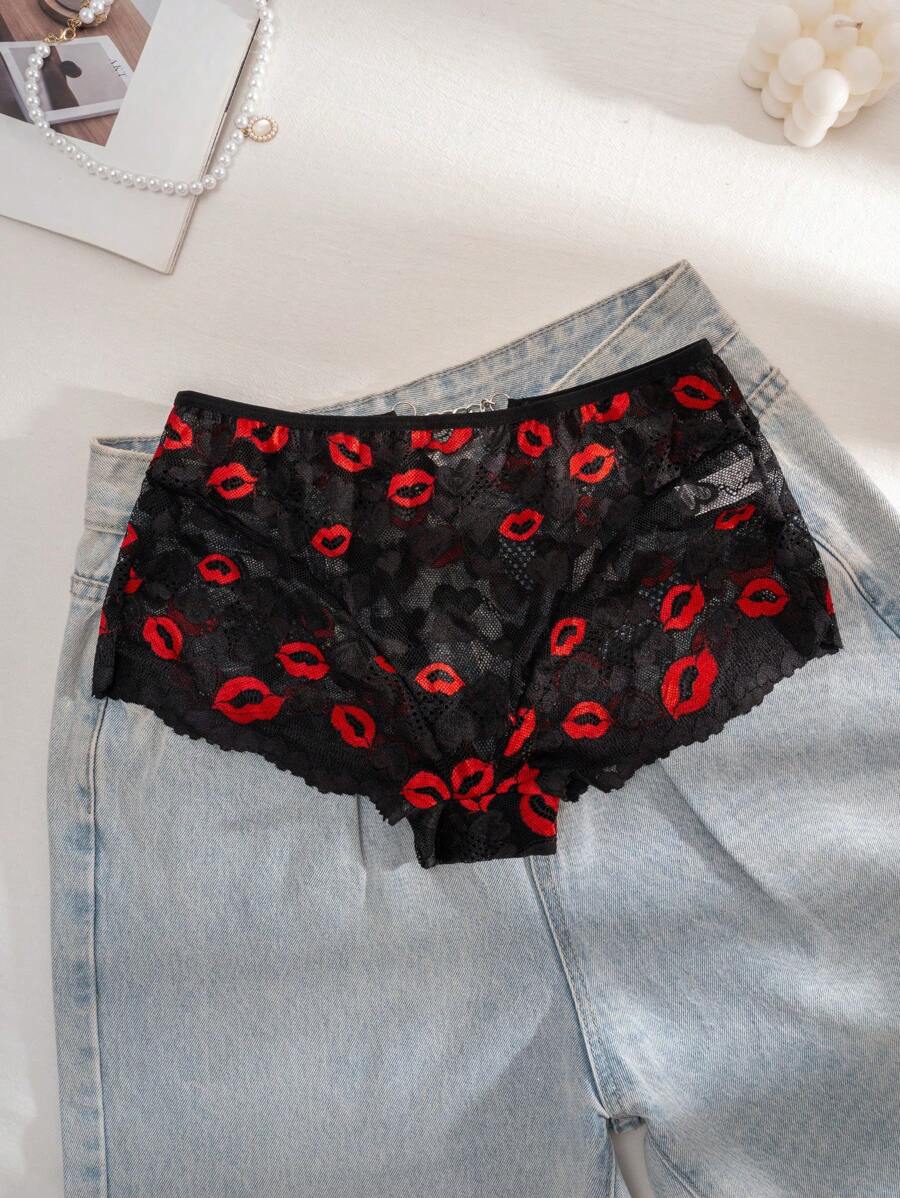 1 pieza pantis de mujer de unicolor con decoracion de labios, comodos – Muy Bonita
