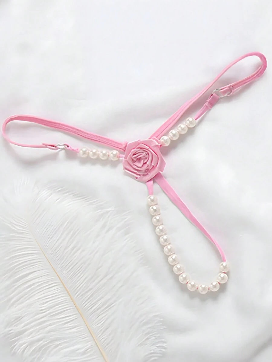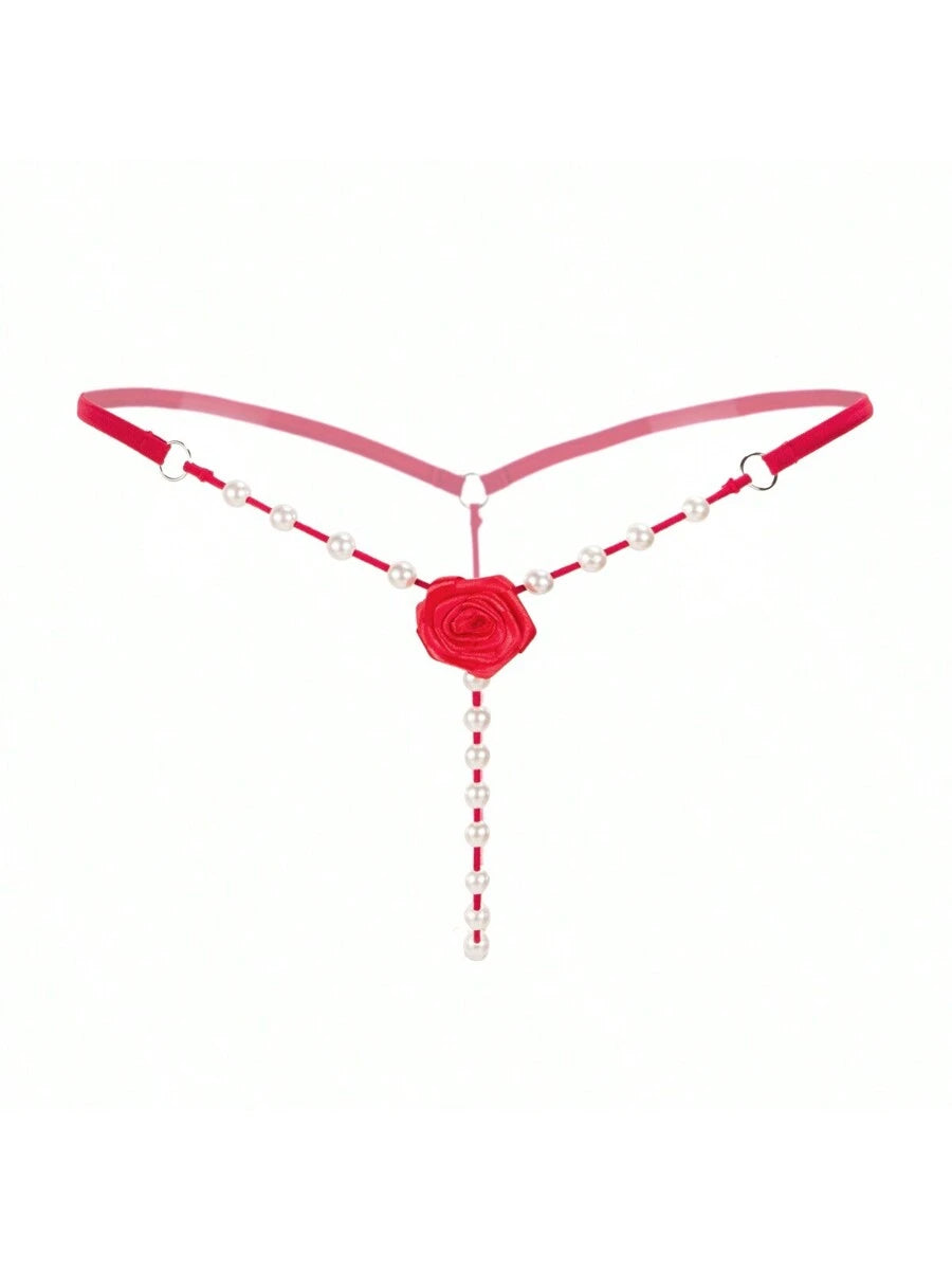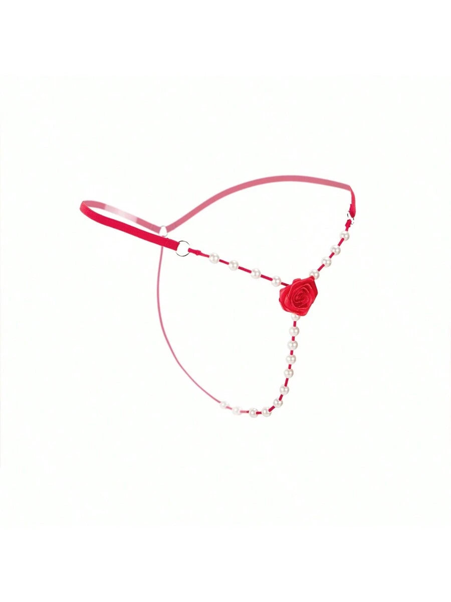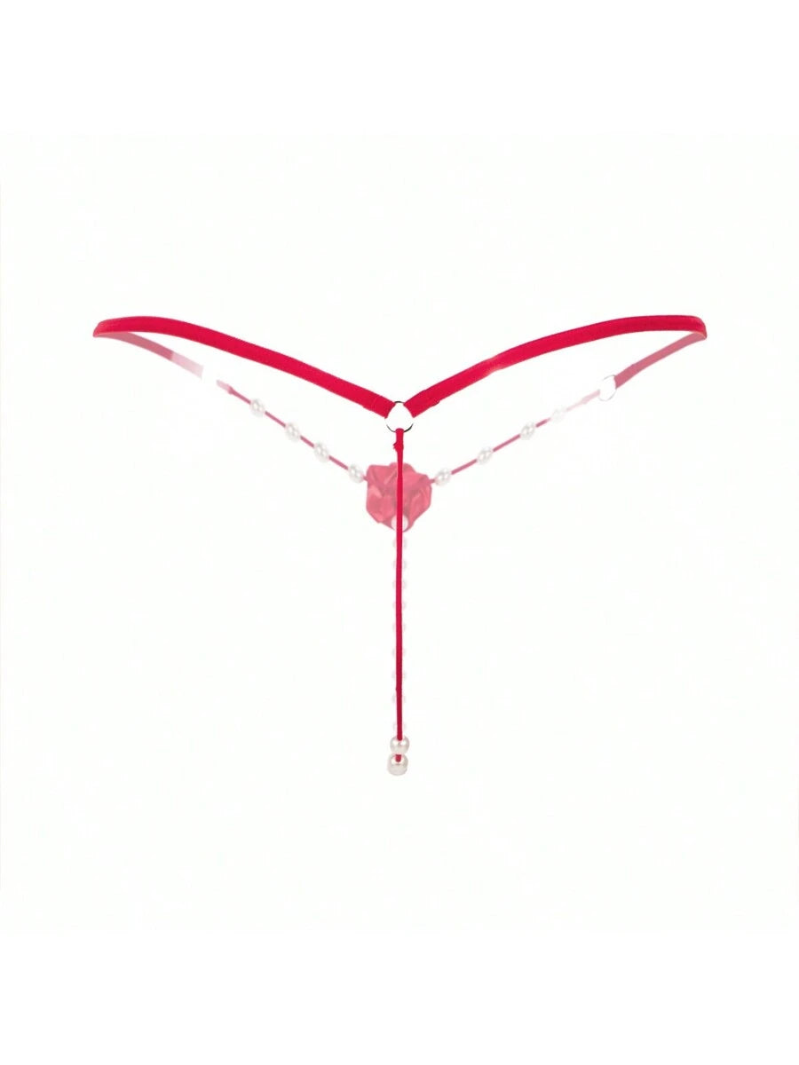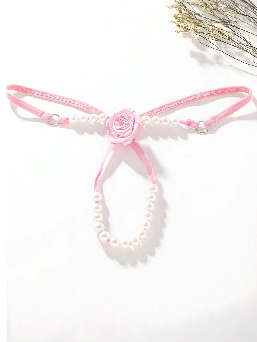 Chanclas con decoracion de flores, bragas transparentes con anillos enlazados y perlas falsas, lenceria y ropa interior sexy para mujer, esenciales sexy para halloween y navidad