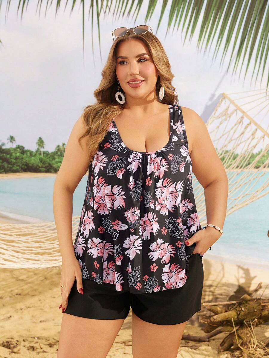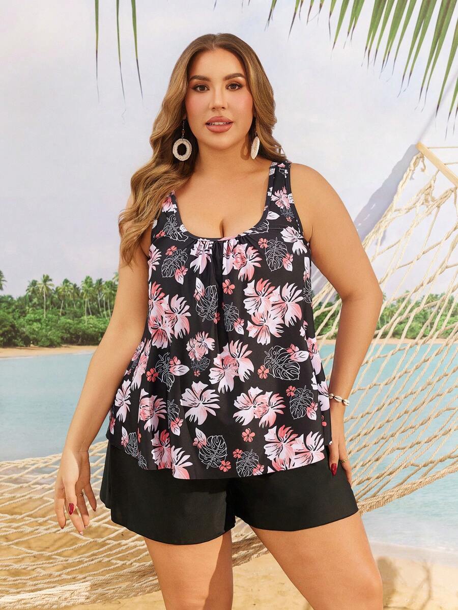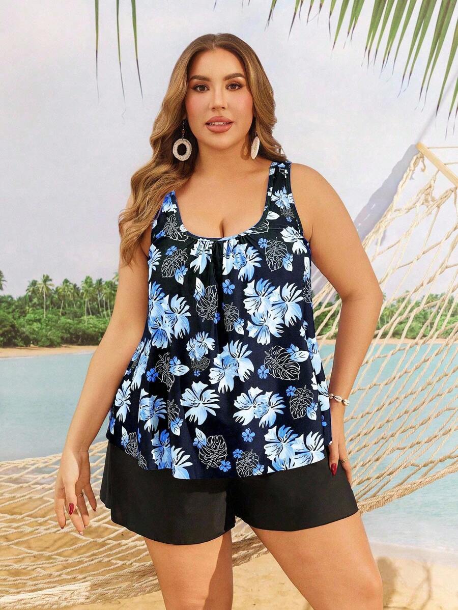 Lushoire conjunto de tankini de talla grande para mujer con estampado – Muy Bonita