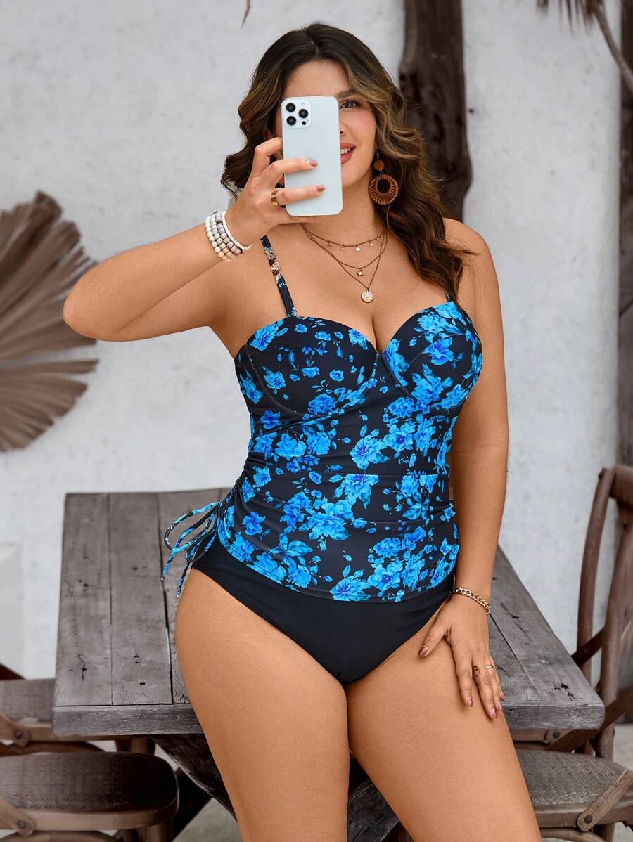 Lushoire traje de bano de 2 piezas de tiras de espagueti con estampado floral sexy para vacaciones en la playa para mujeres de talla grande