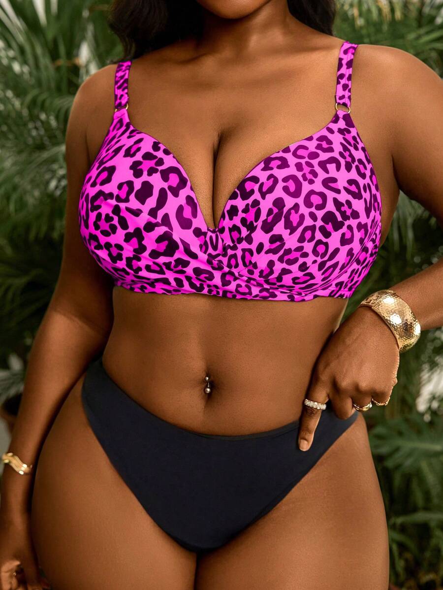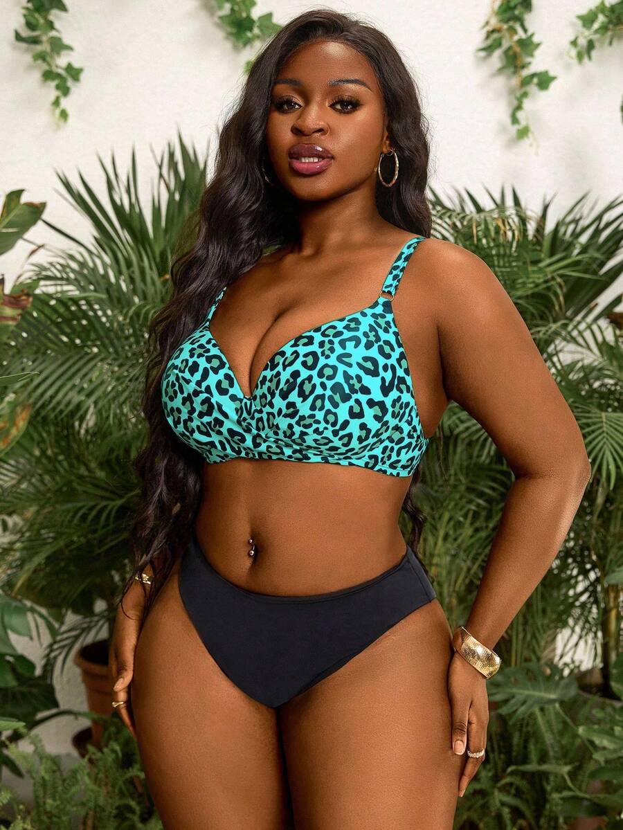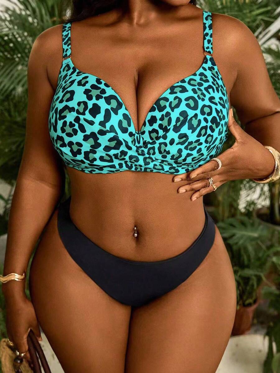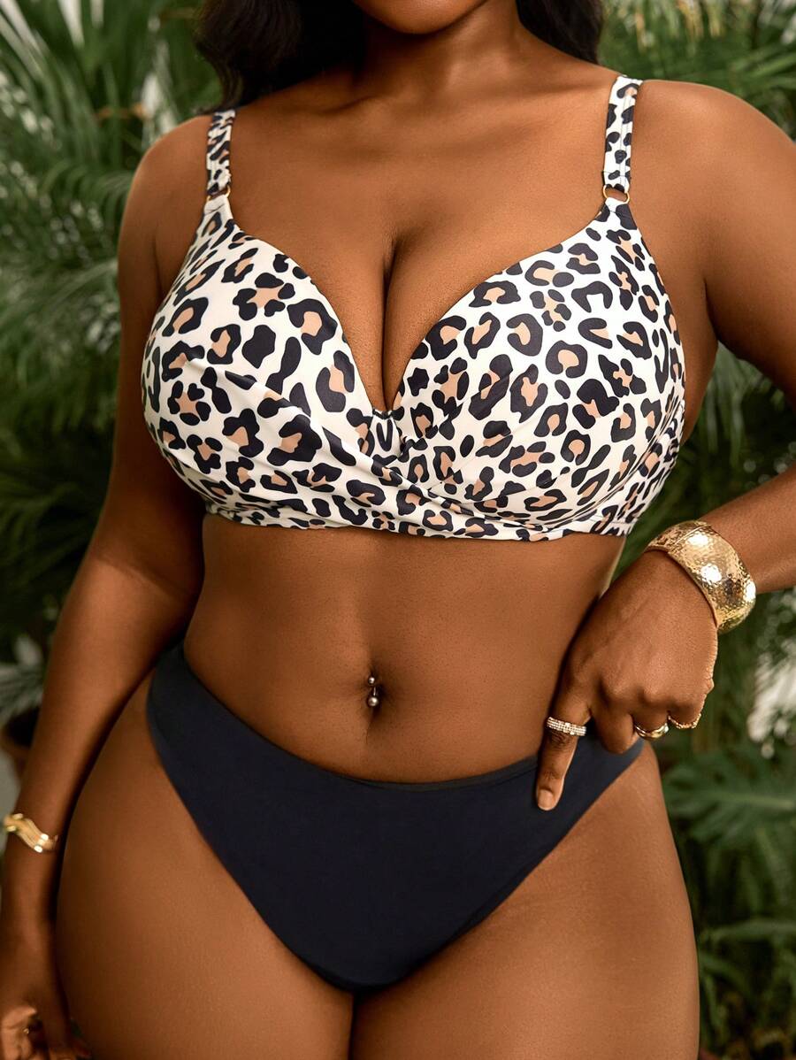 Top de tankini con estampado de leopardo y cruzado para mujer de talla – Muy Bonita