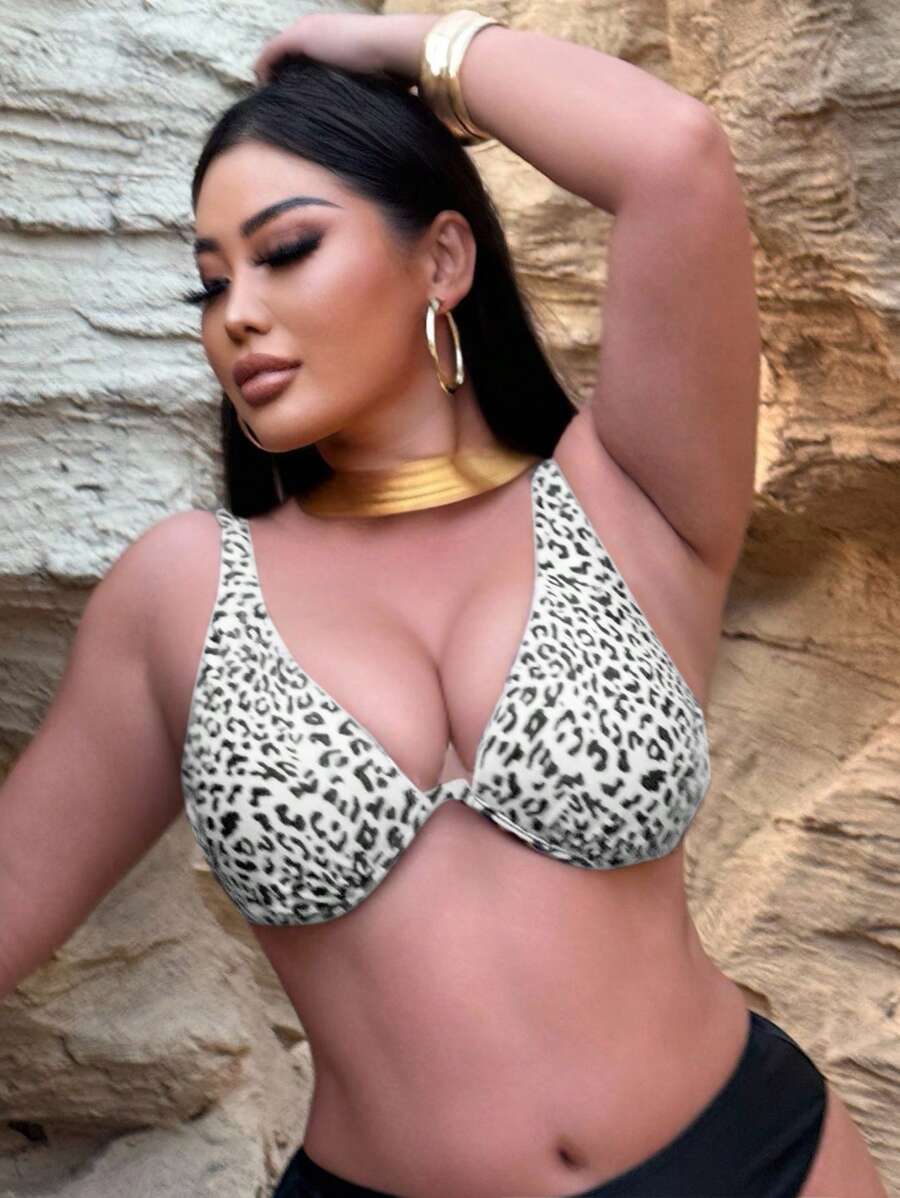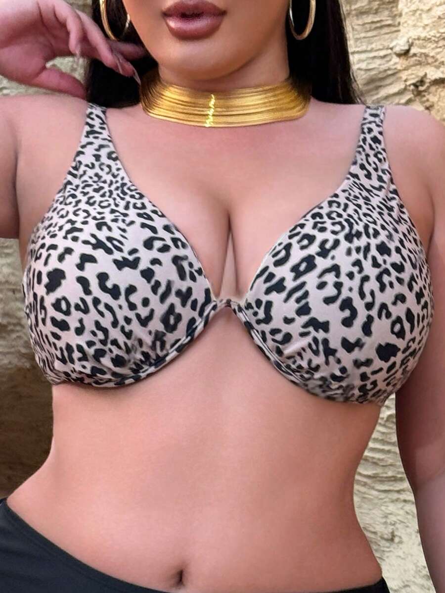 Parte superior de bikini de estampado de leopardo de talla grande, apt – Muy Bonita