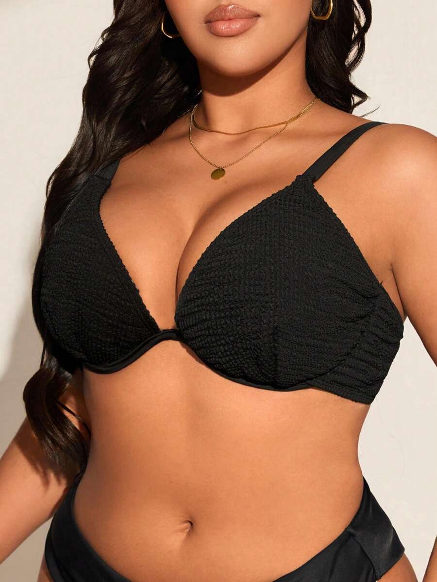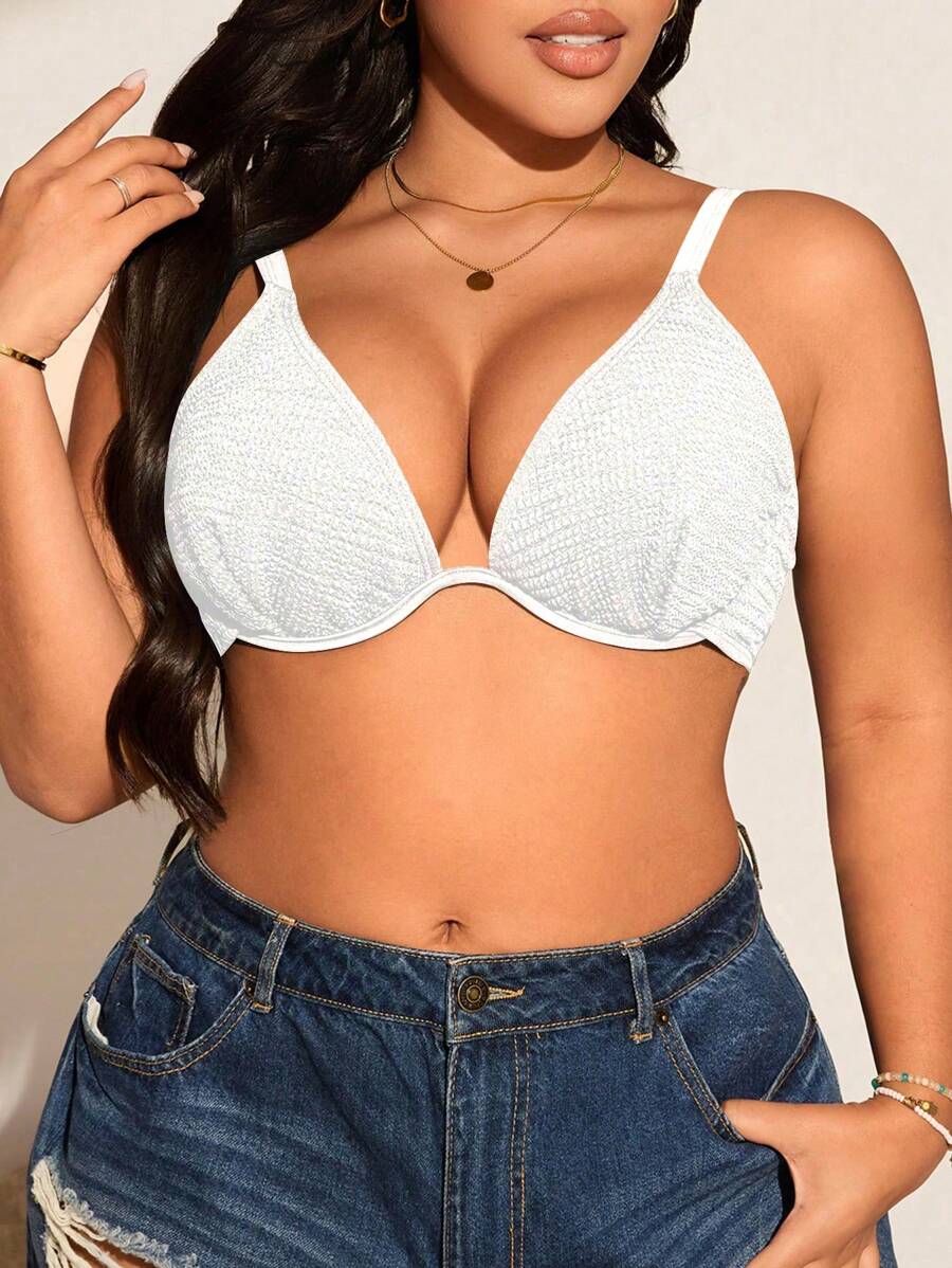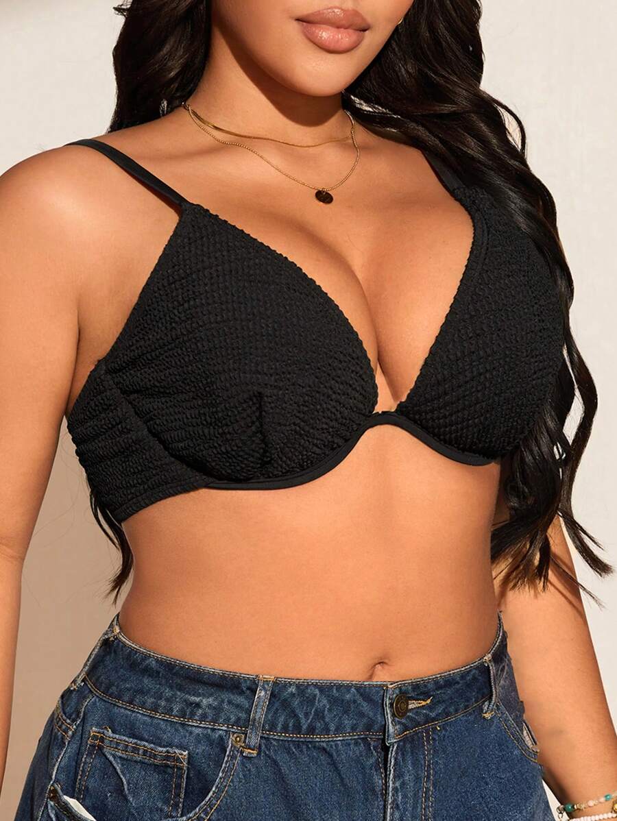Top de tankini con escote en la espalda y volantes para mujeres talla grande - unicolor, de moda y versatil, apropiado para vacaciones de verano