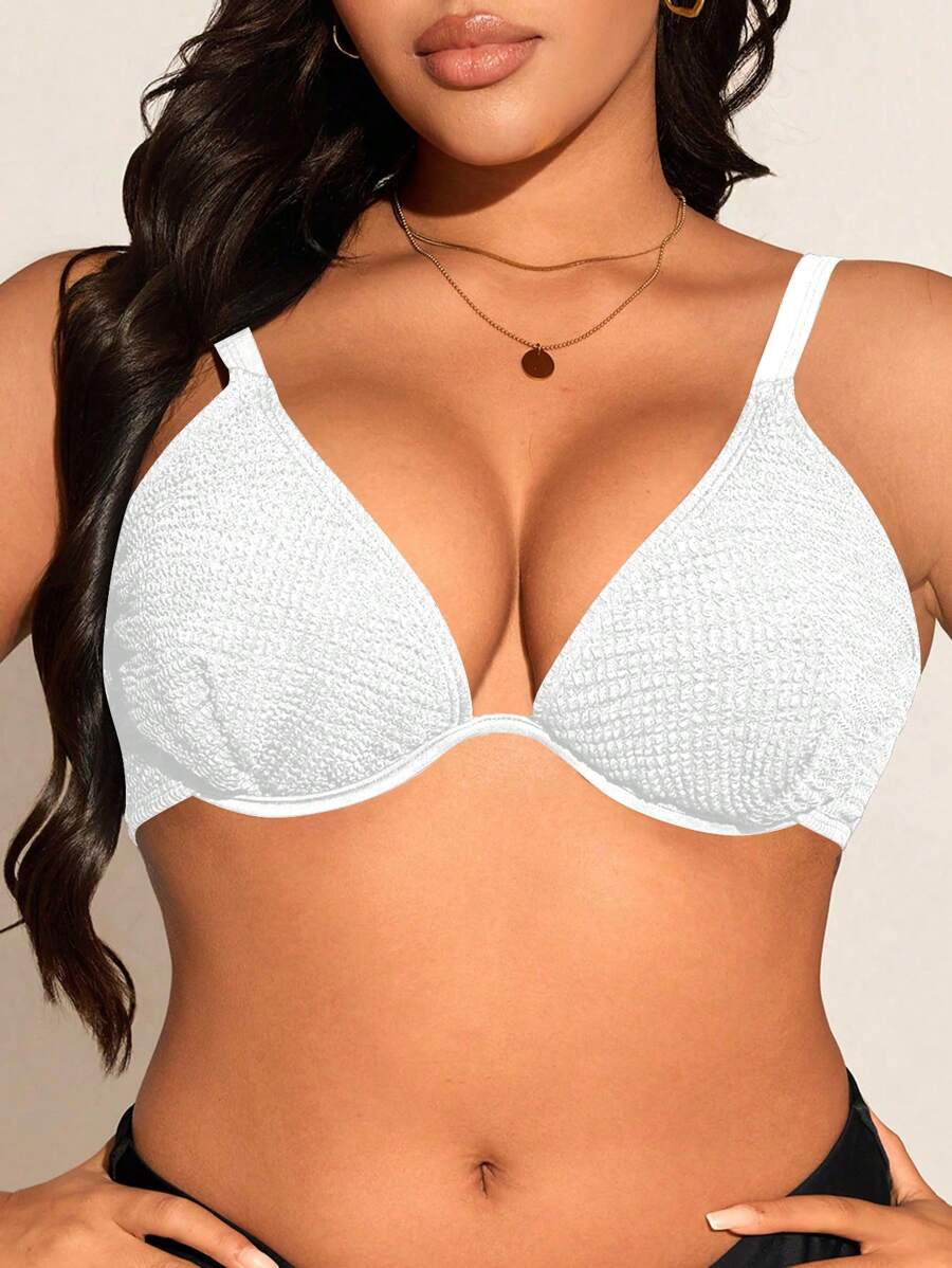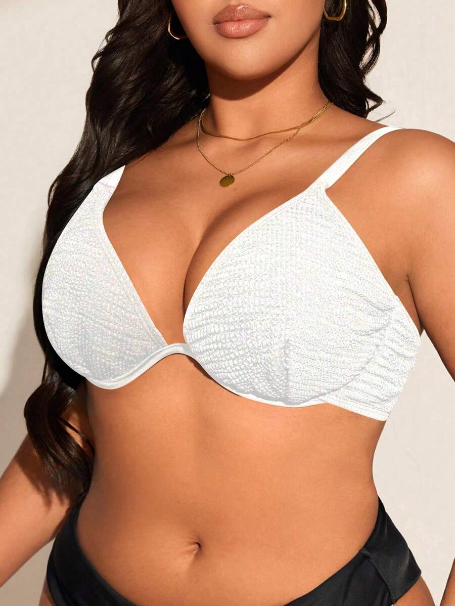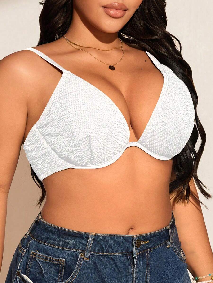 Top de tankini con escote en la espalda y volantes para mujeres talla grande - unicolor, de moda y versatil, apropiado para vacaciones de verano
