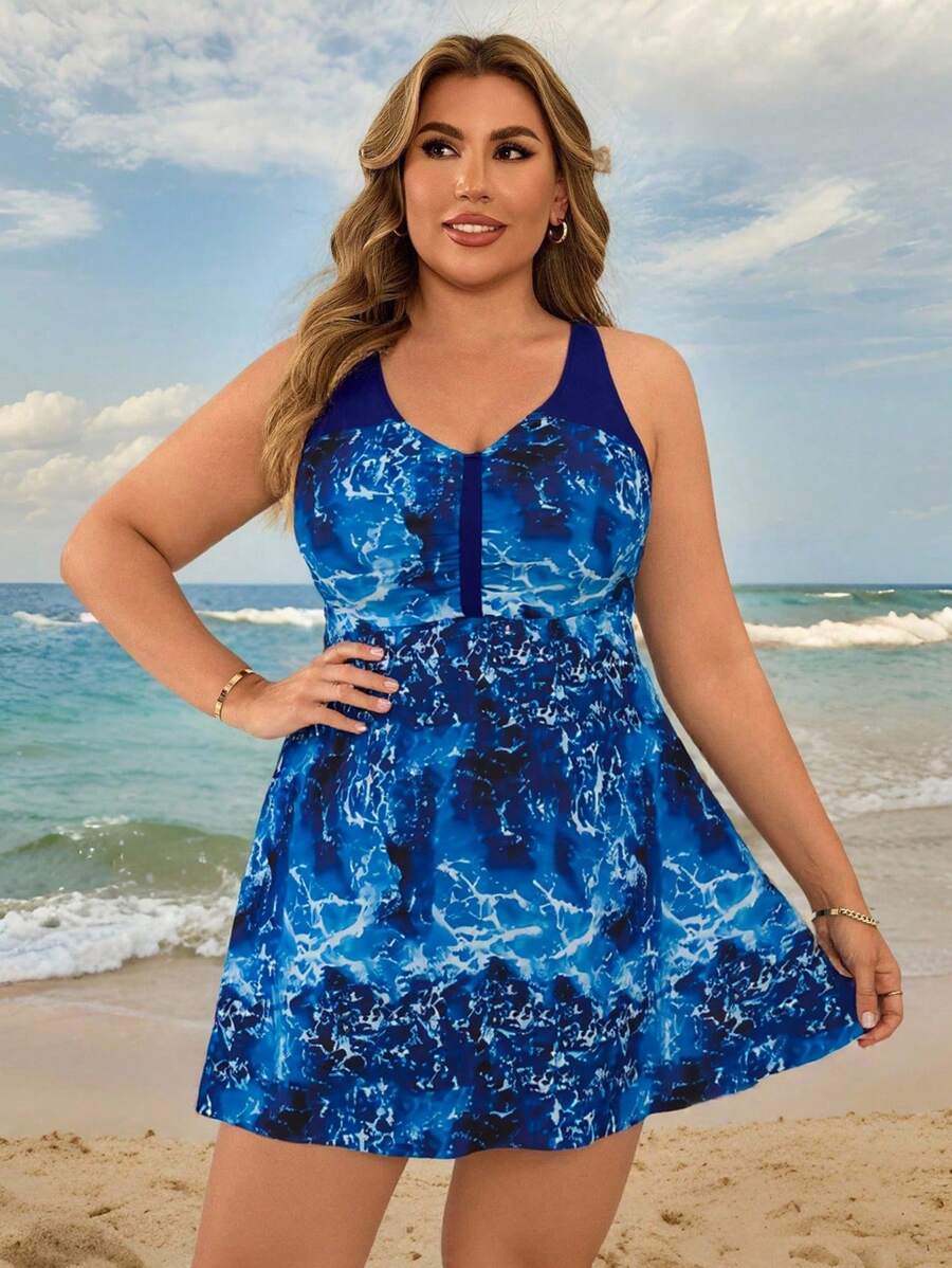 Lushoire top de bikini con estampado digital efecto tie-dye y espalda descubierta, traje de bano para vacaciones en la playa, tallas grandes