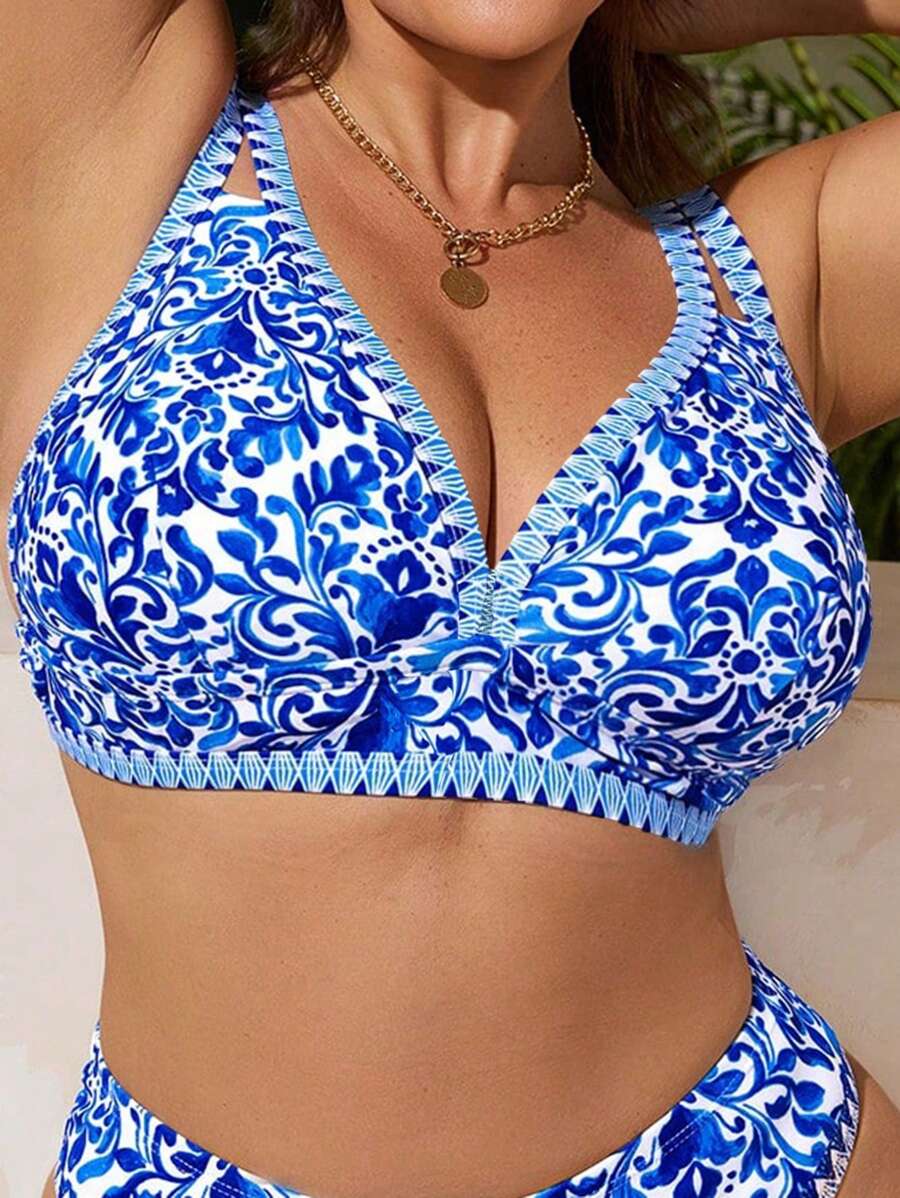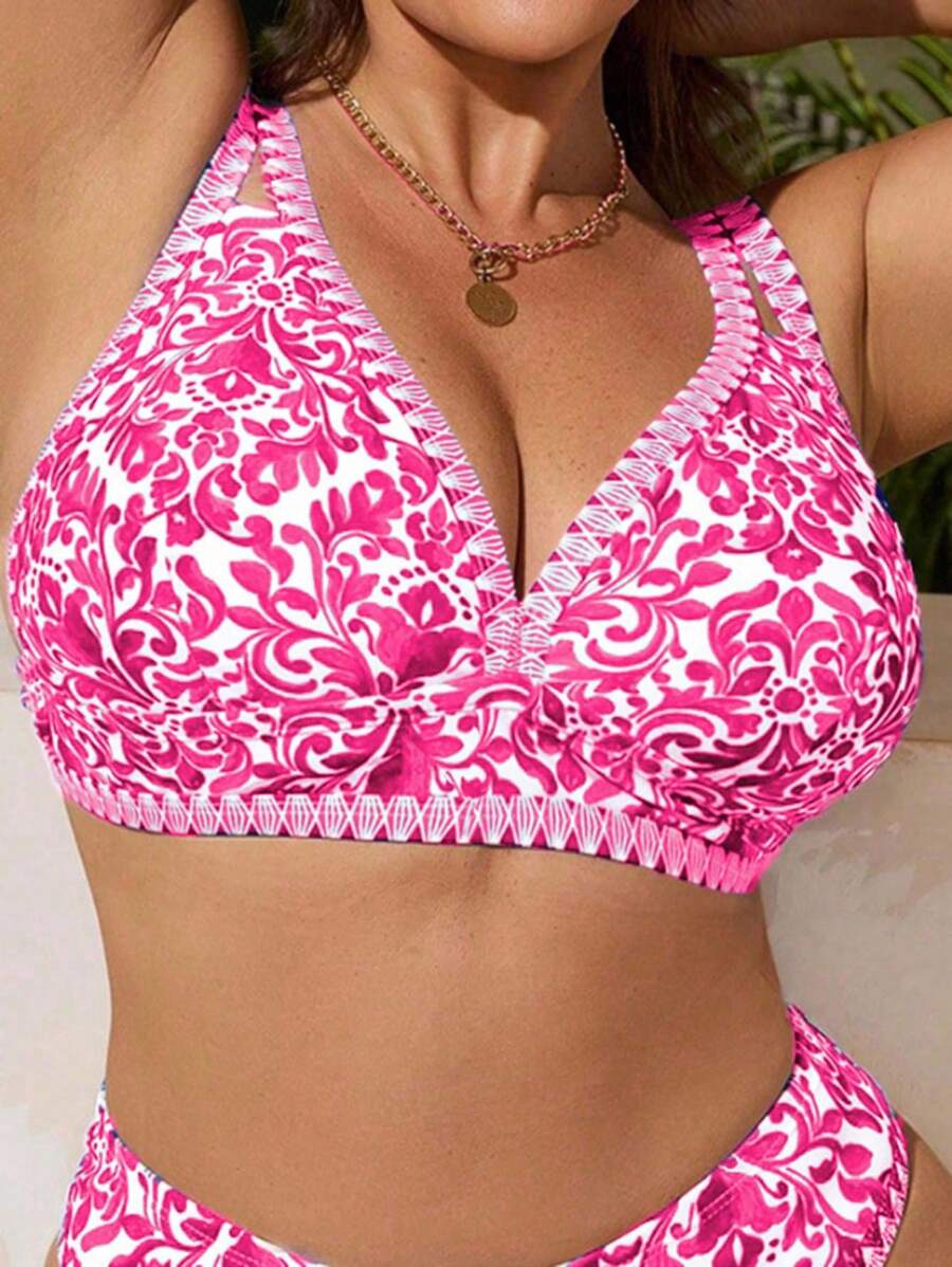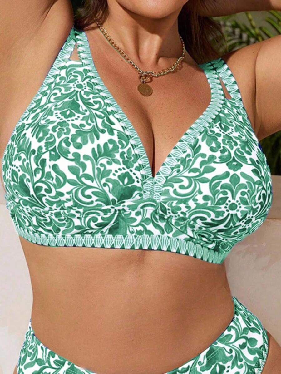 Lushoire top de bikini triangular de estampado, ajustable y casual sexy para mujer de talla grande, adecuado para vacaciones y uso diario