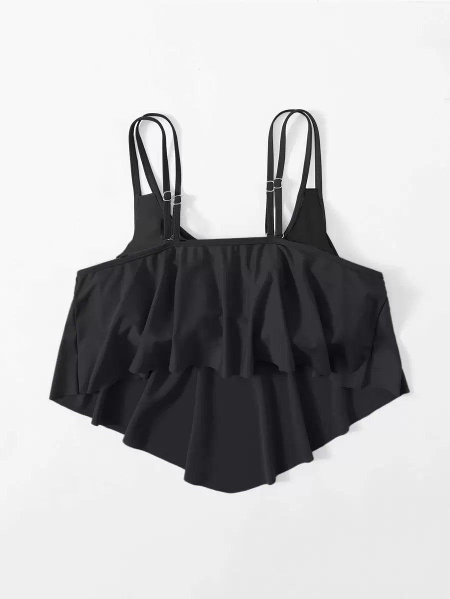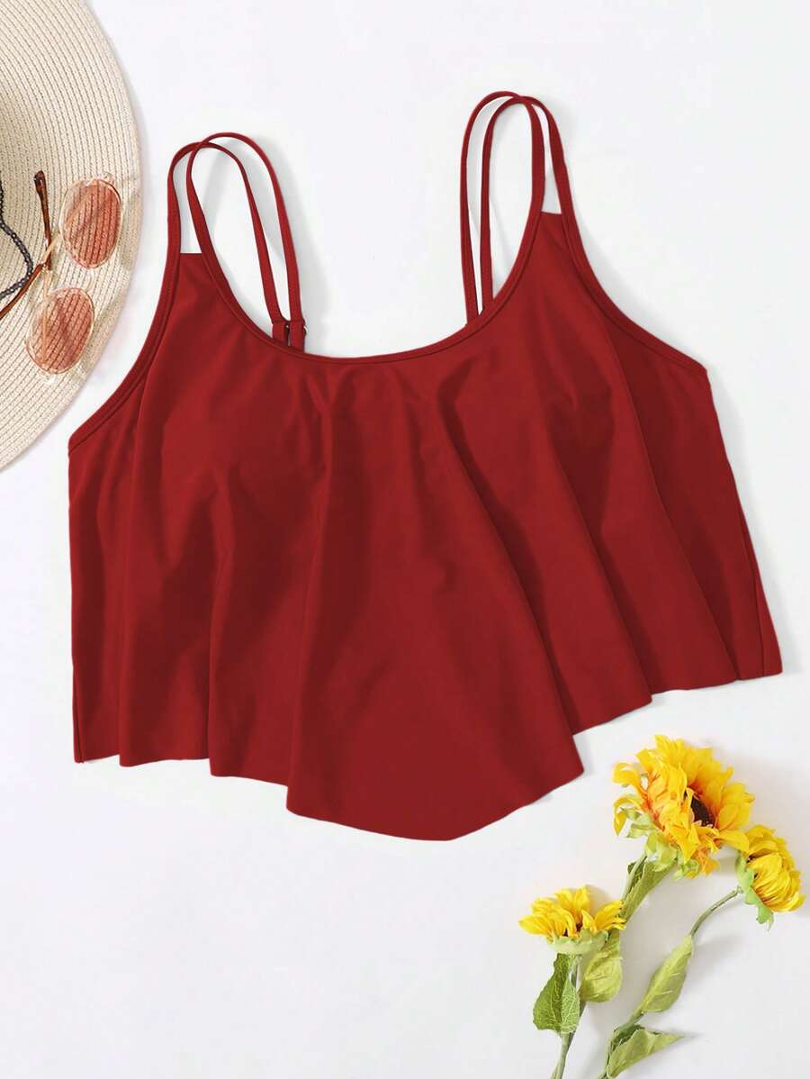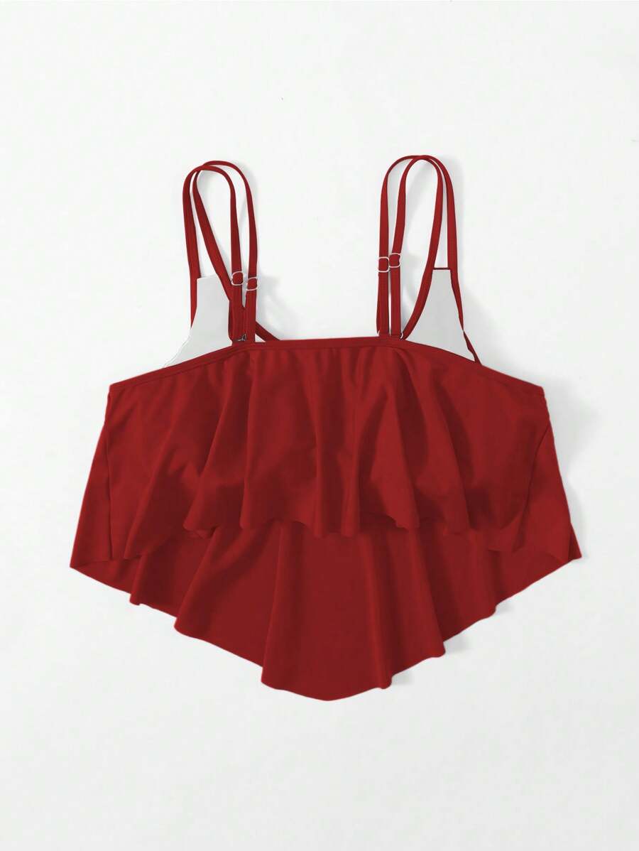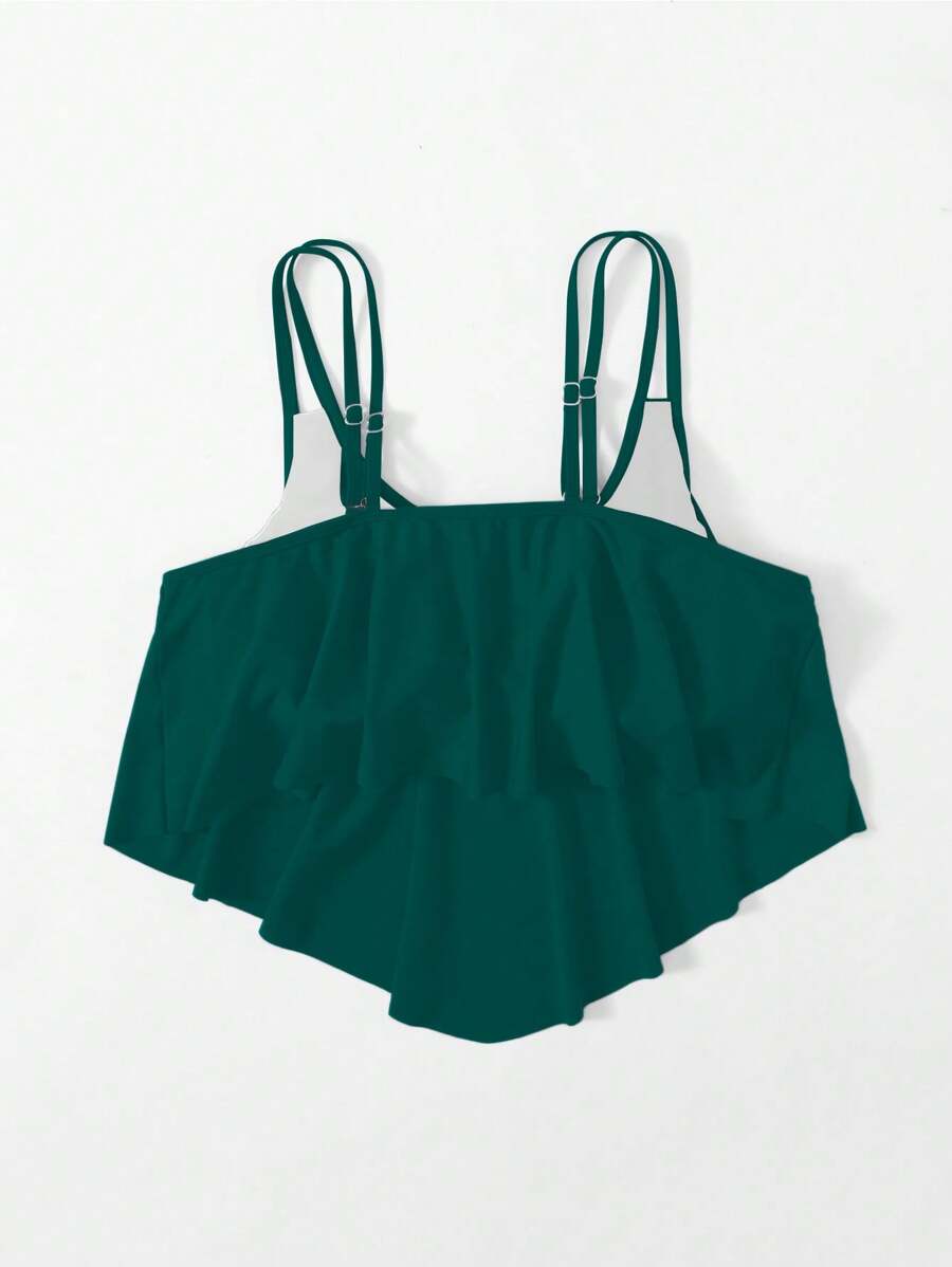 Curve top de traje de bano de una sola pieza con volantes en talla grande para mujer en unicolor