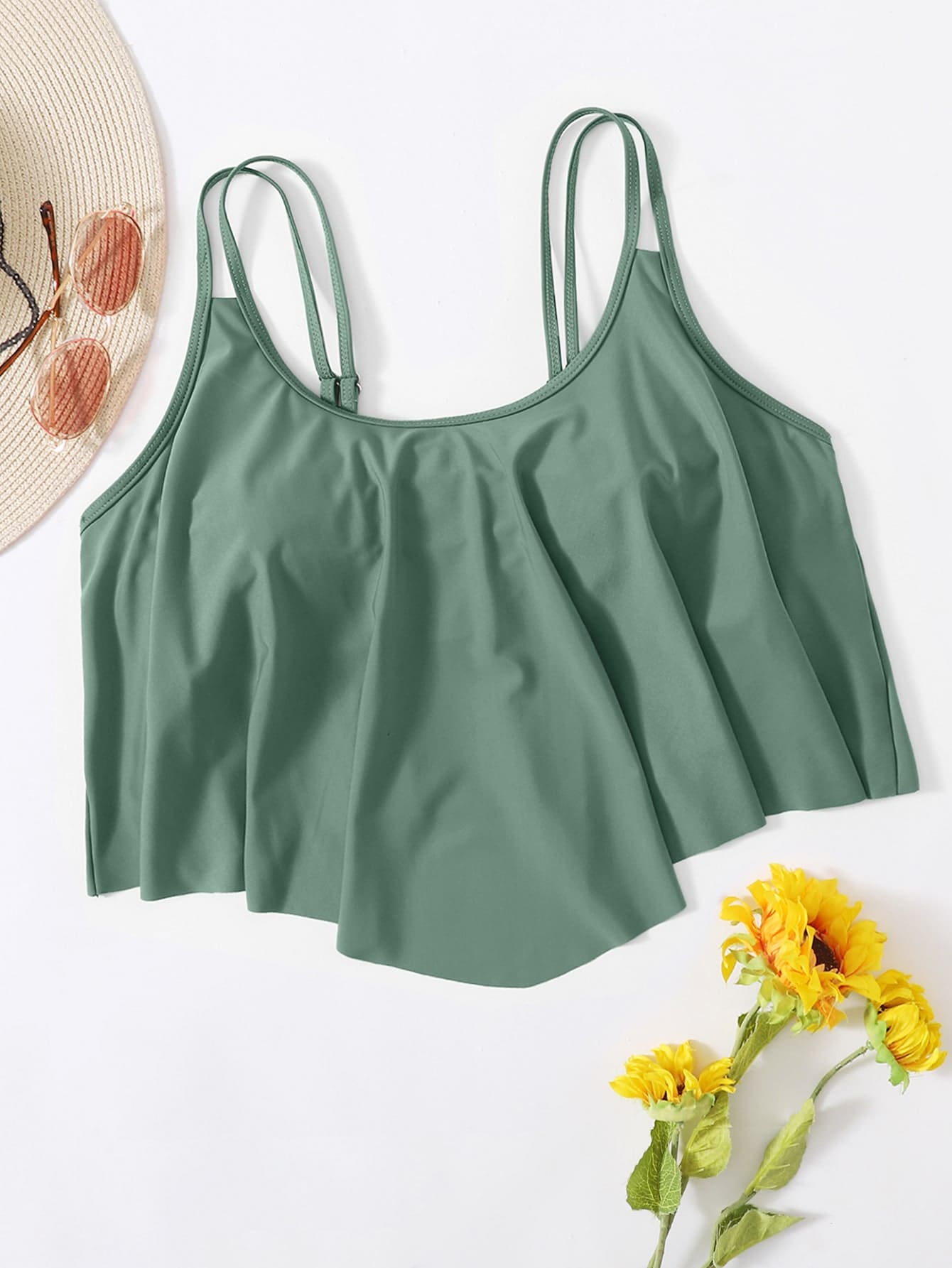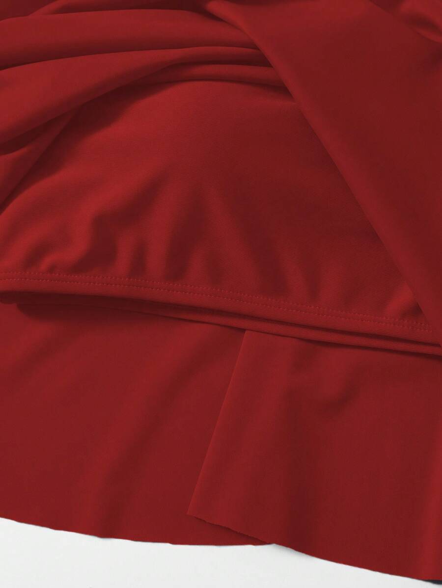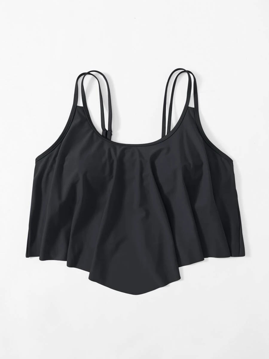 Curve top de traje de bano de una sola pieza con volantes en talla grande para mujer en unicolor