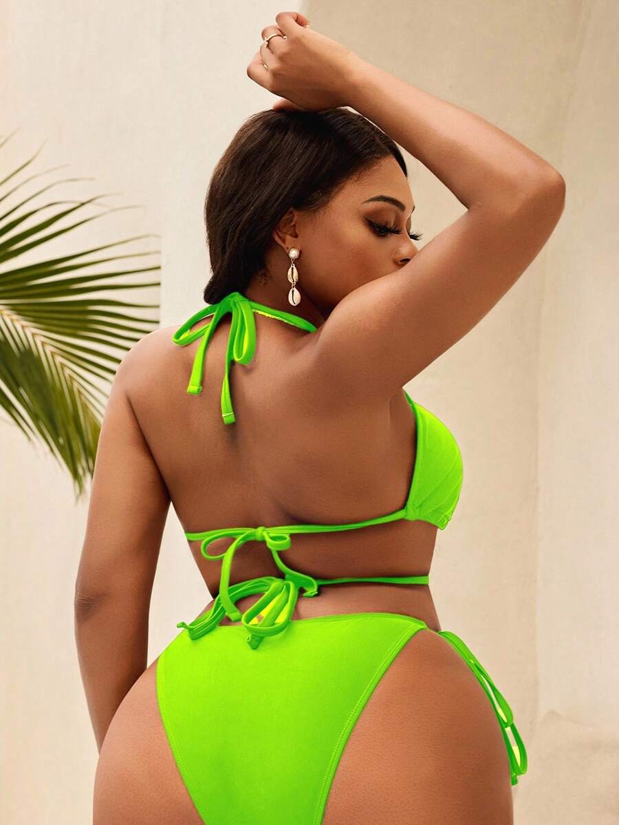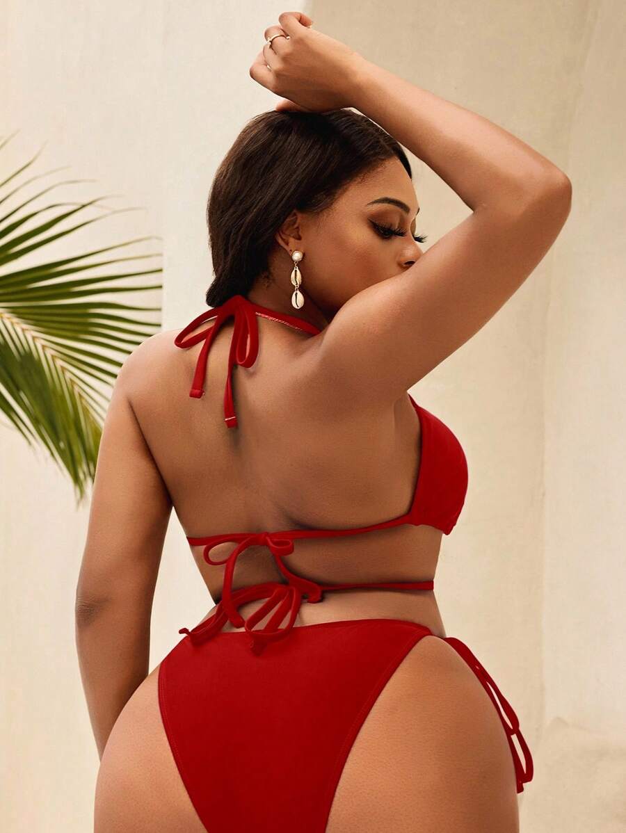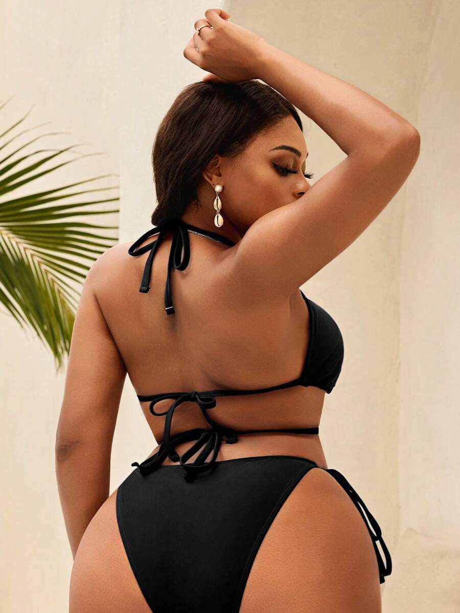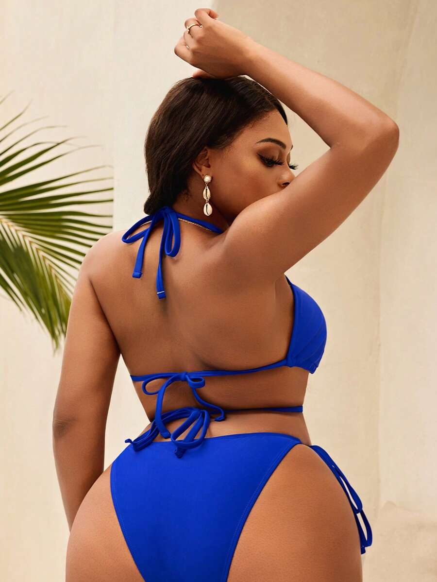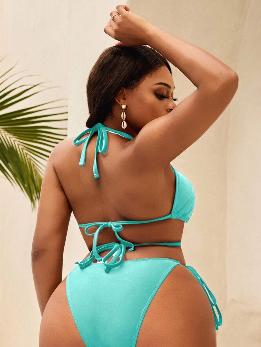 Top de bikini con tallas grandes de unicolor, de escote halter con ata – Muy Bonita