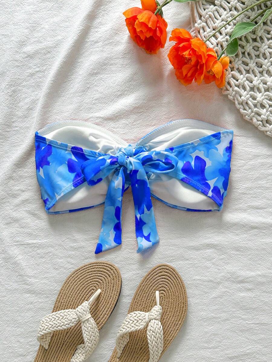 Parte superior de bikini tipo brasier sin tirantes con estampado flora – Muy Bonita