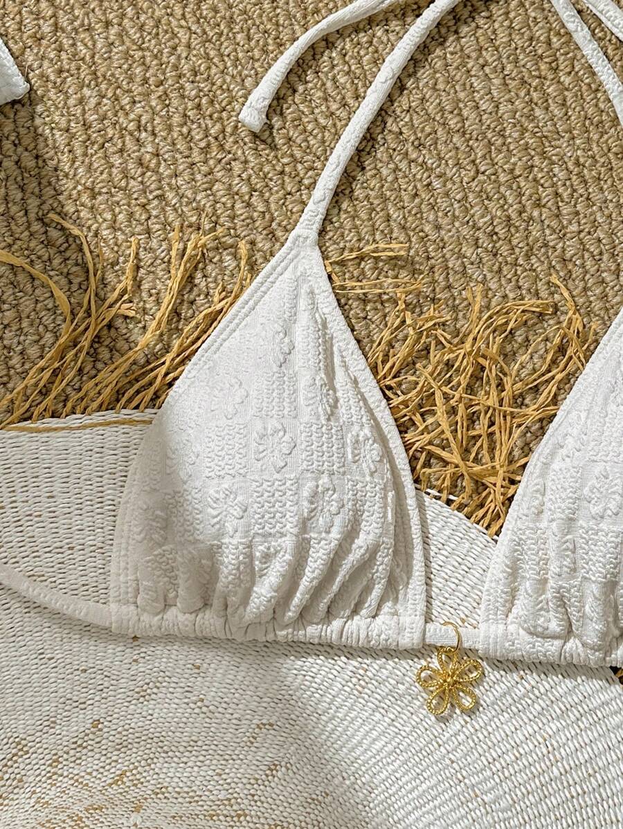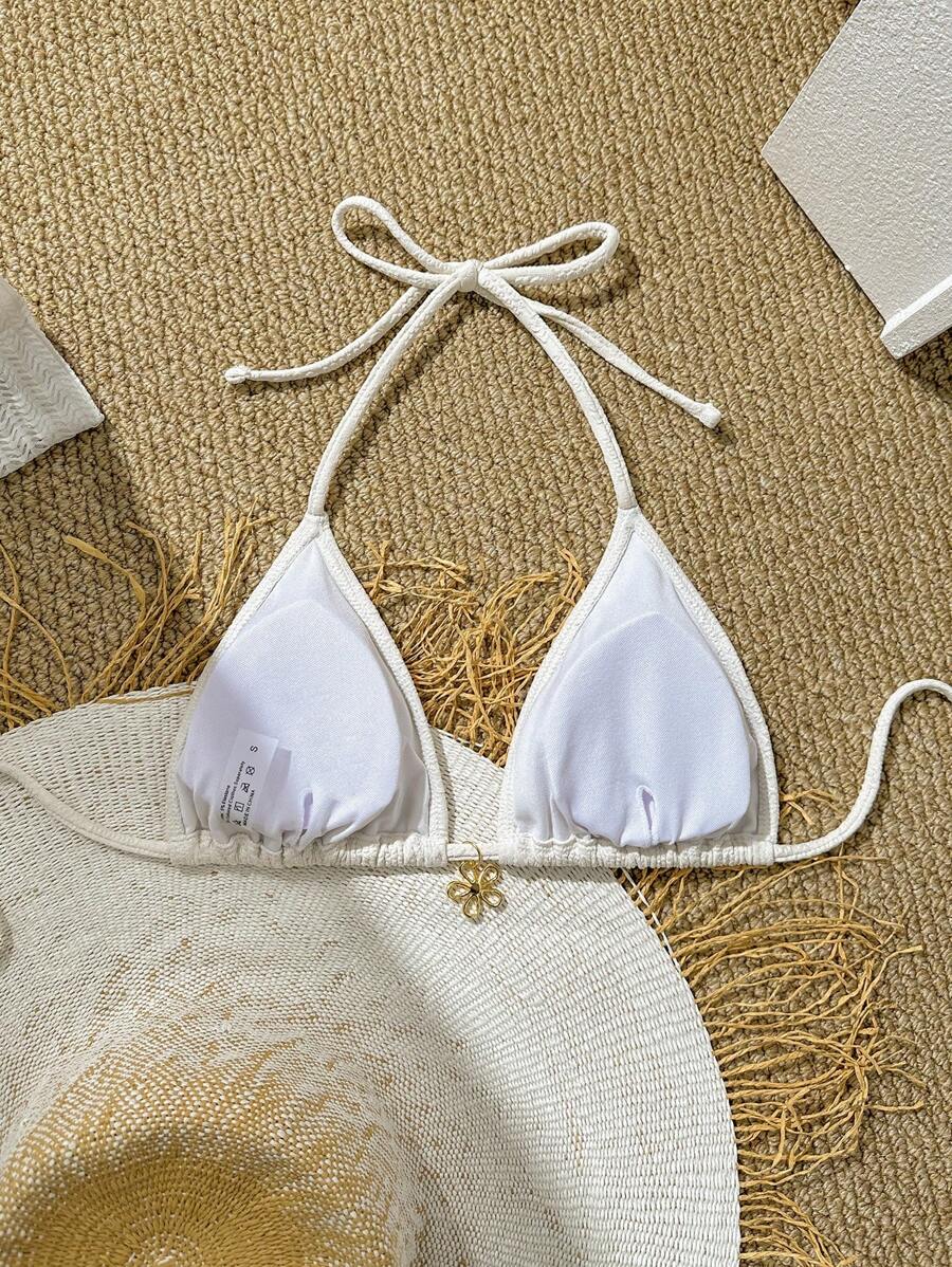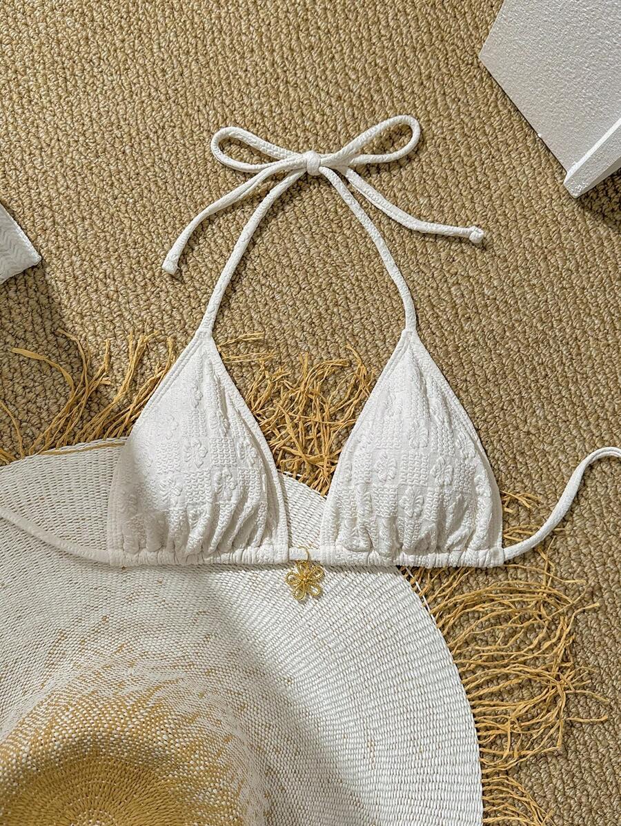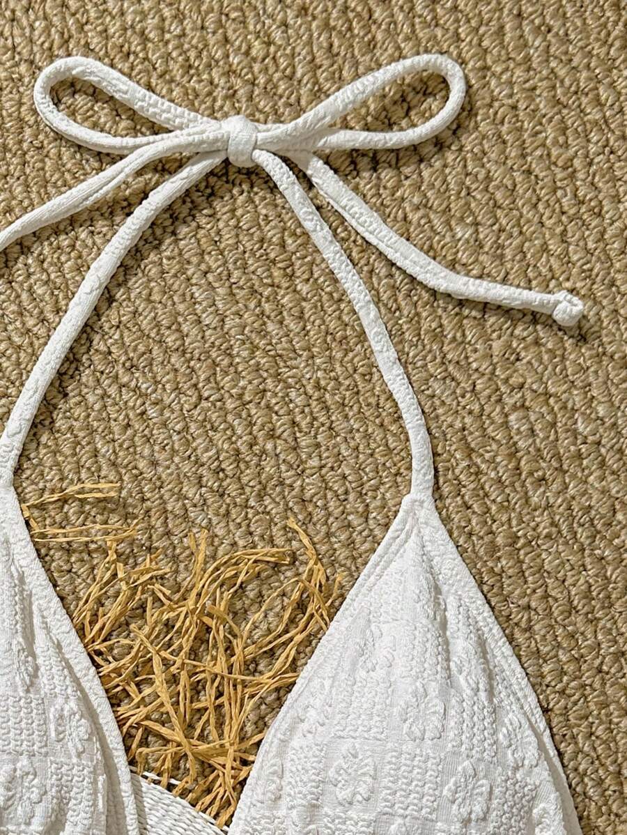 1 pieza top de bikini de mujer de unicolor con textura de estilo halte – Muy Bonita