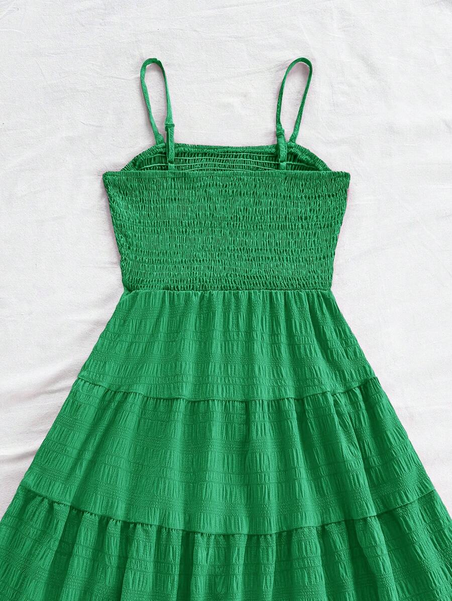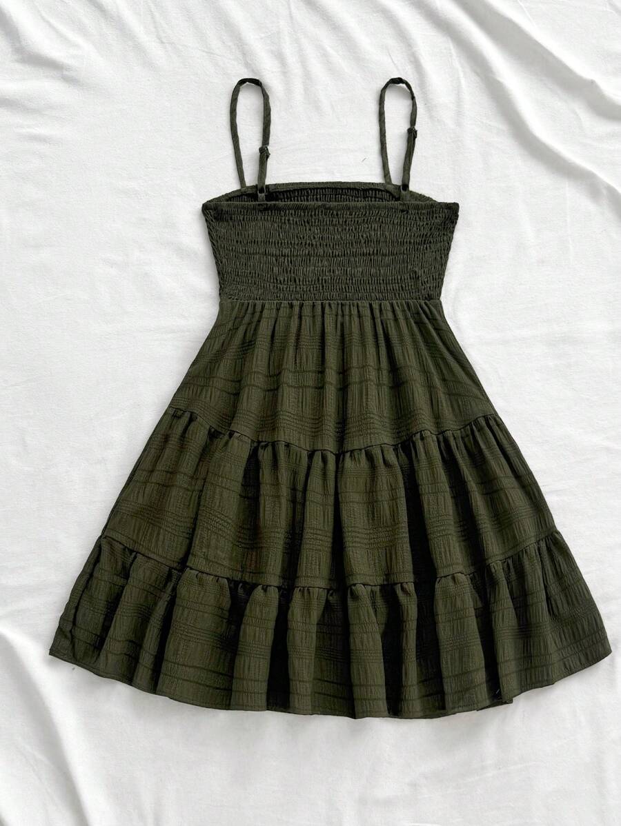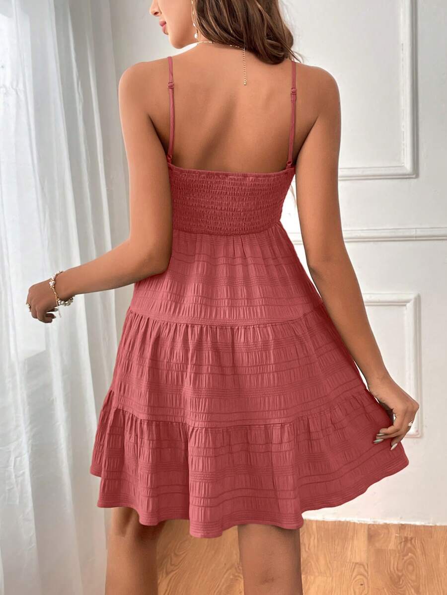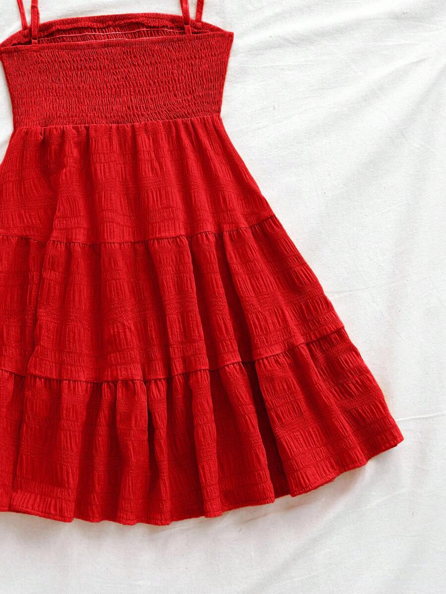 Detalles: Espalda al aire, Bajo con volante, Fruncido