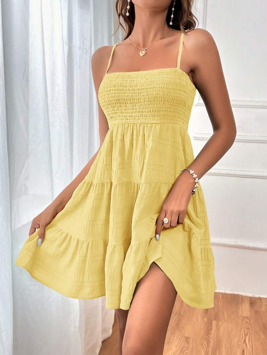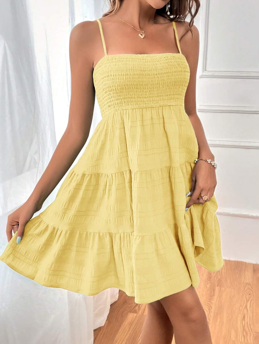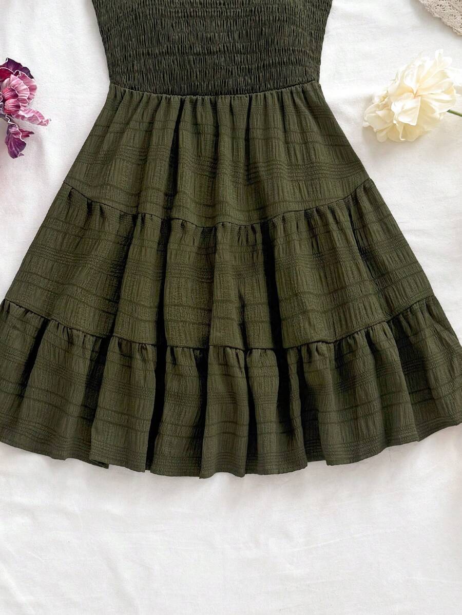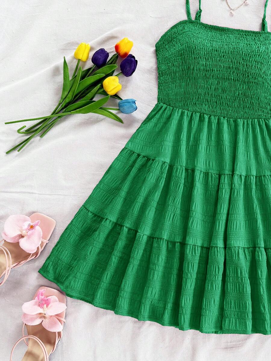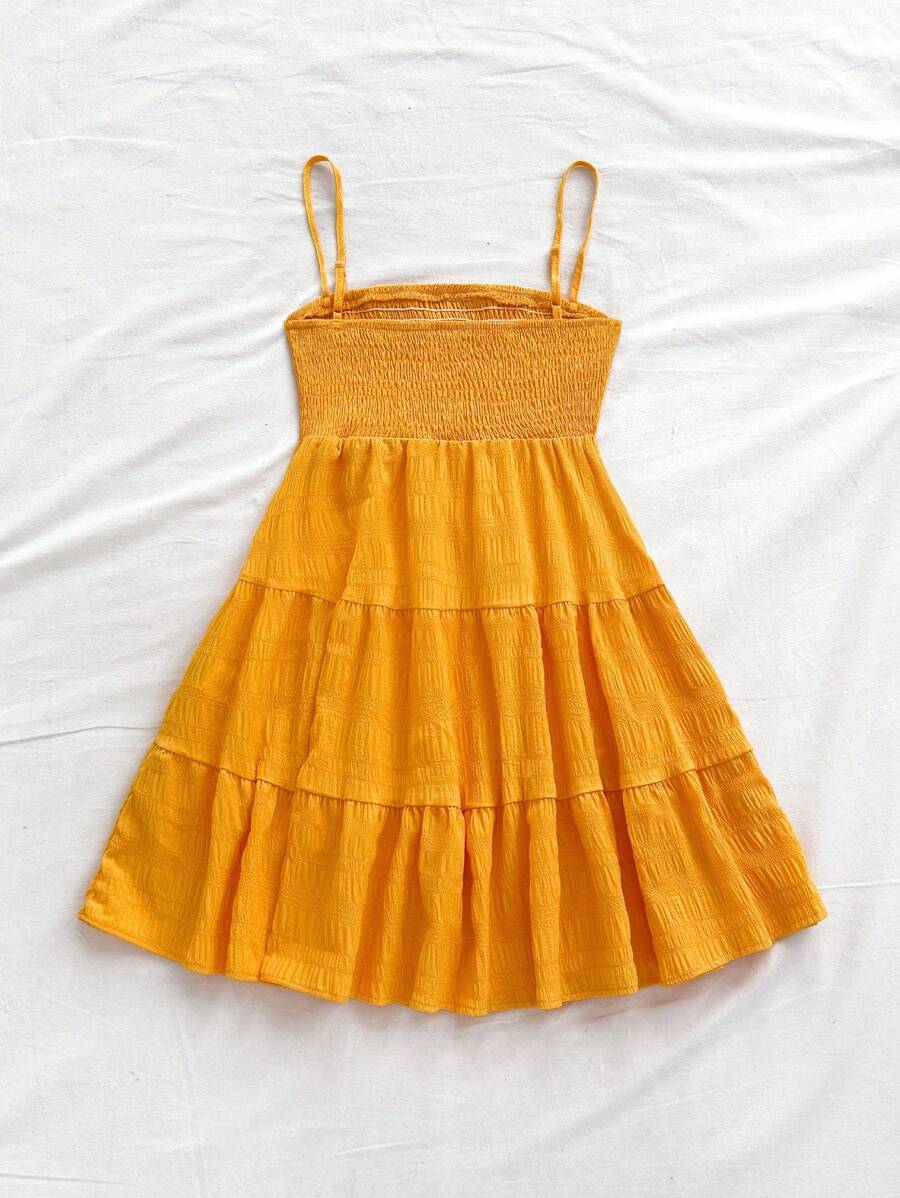Detalles: Espalda al aire, Bajo con volante, Fruncido