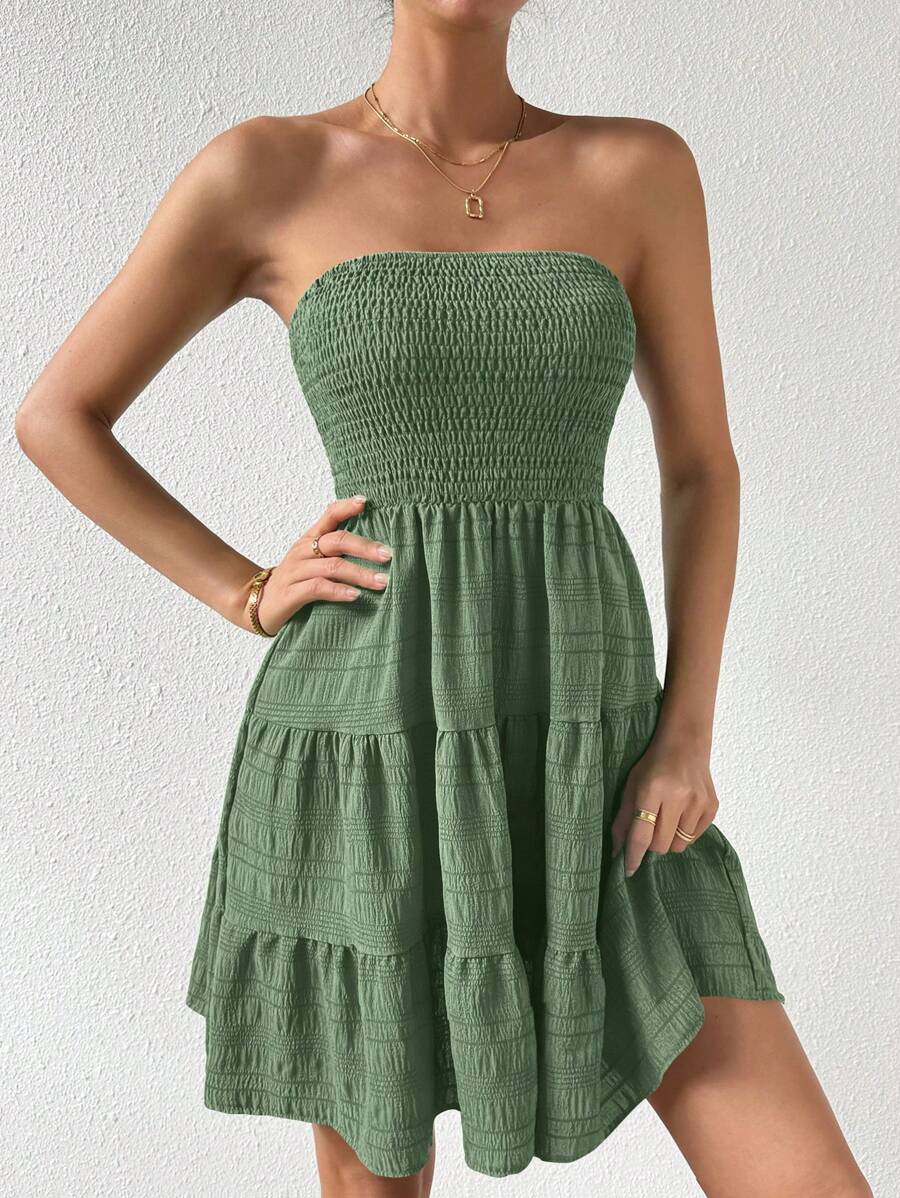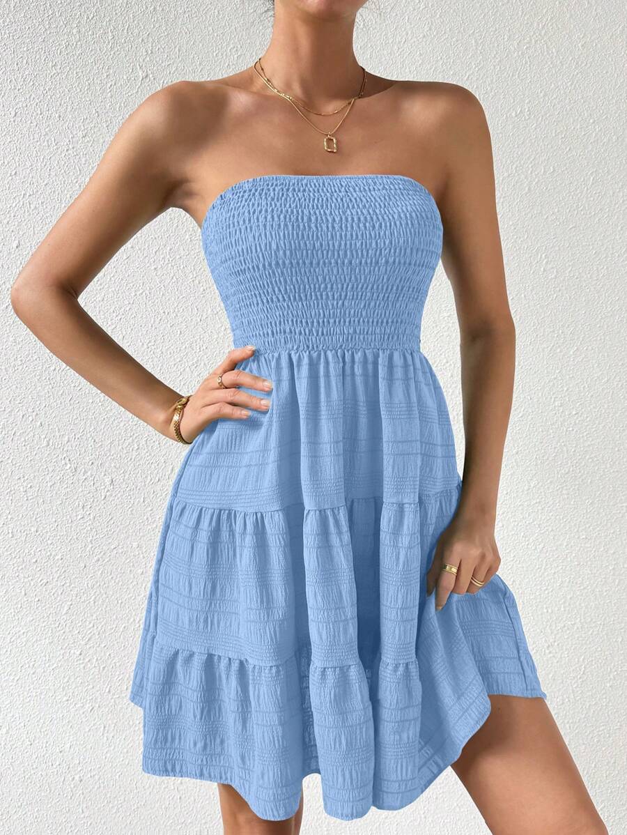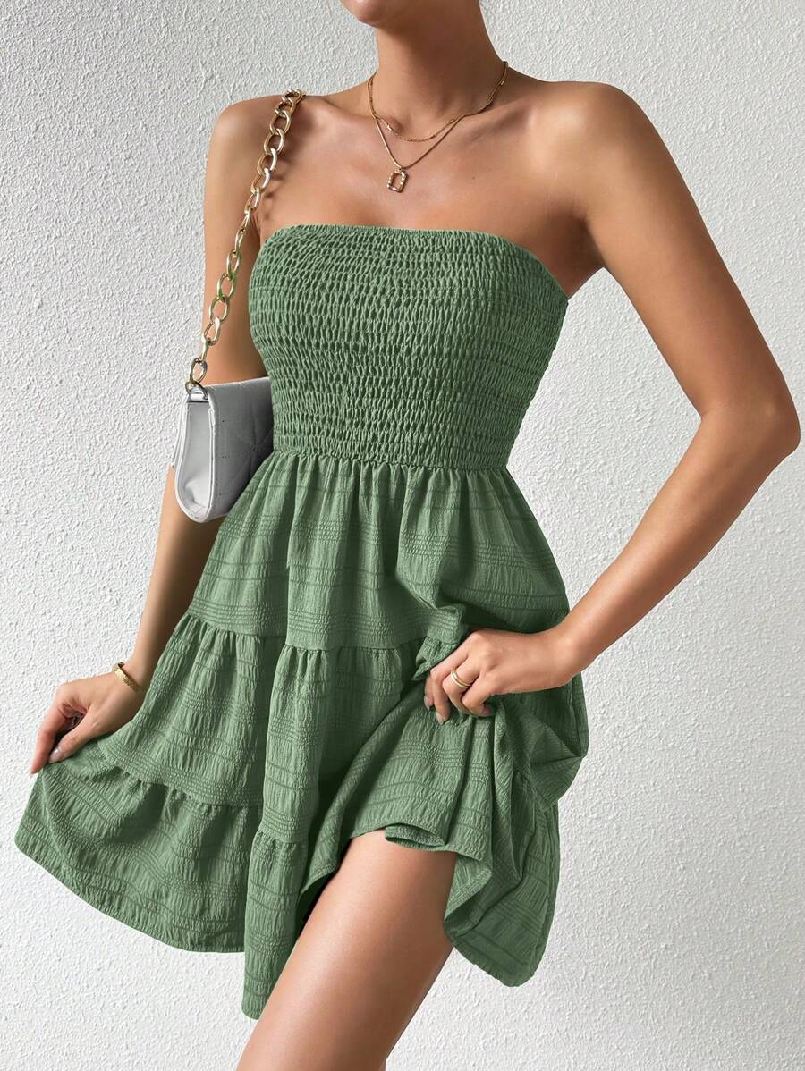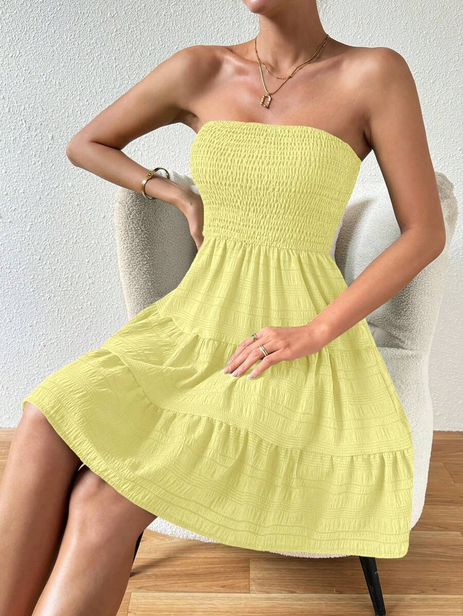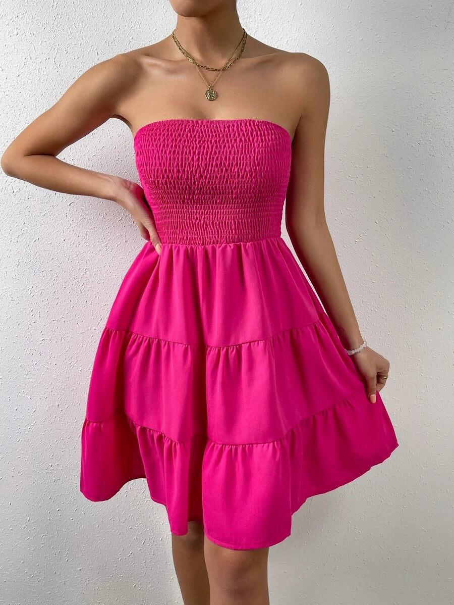 Vestido de verano sencillo en a con dobladillo de varias capas sin tirantes, diseno simple