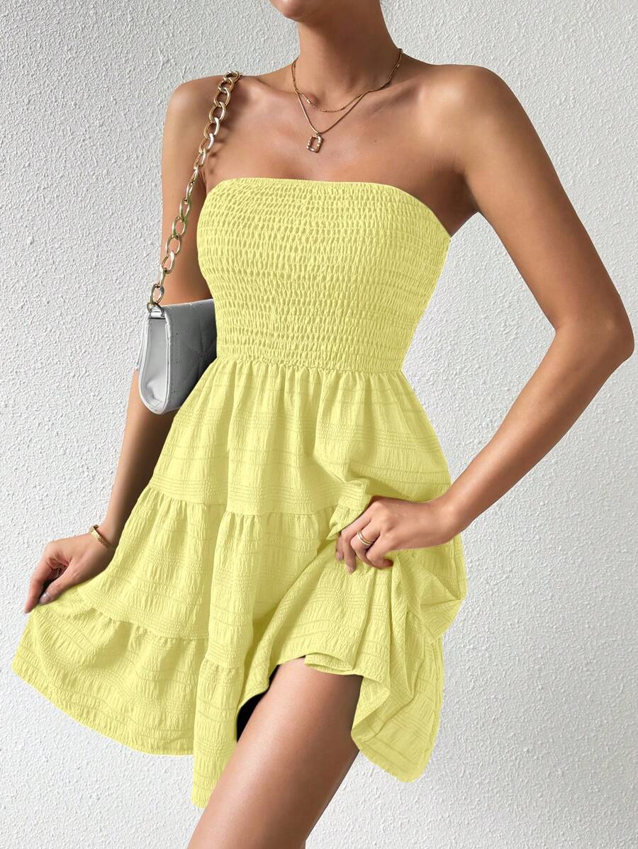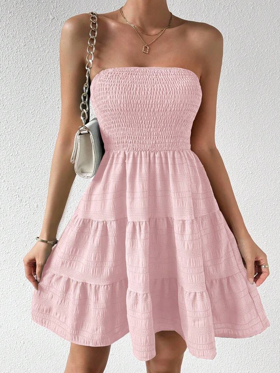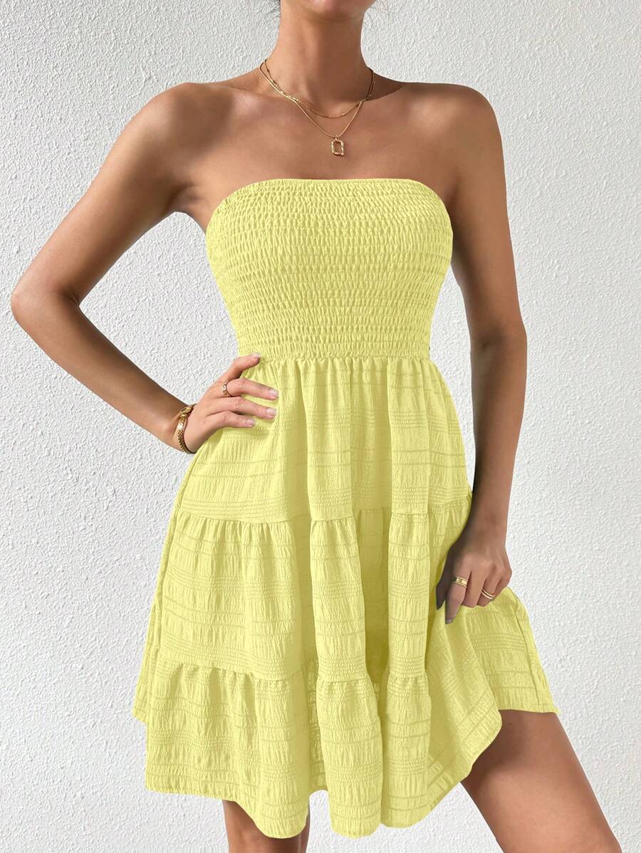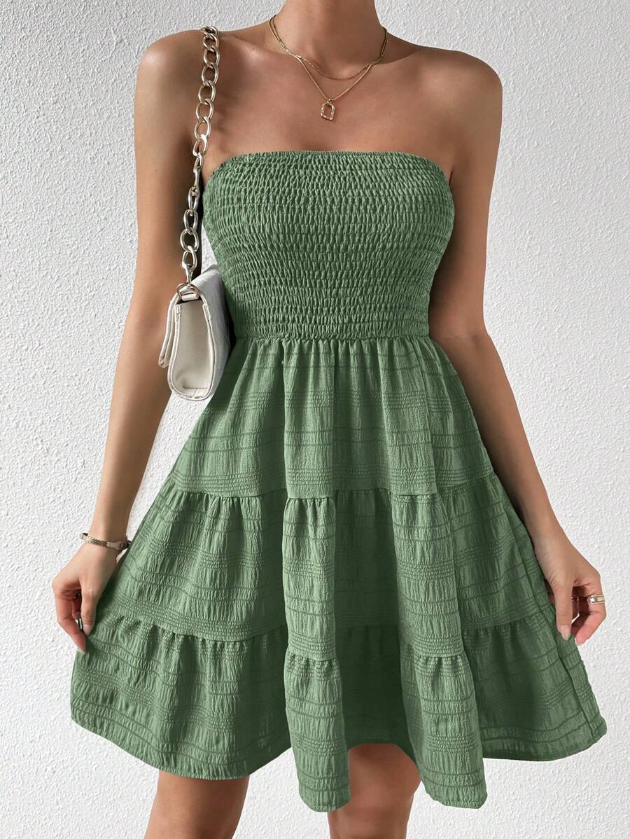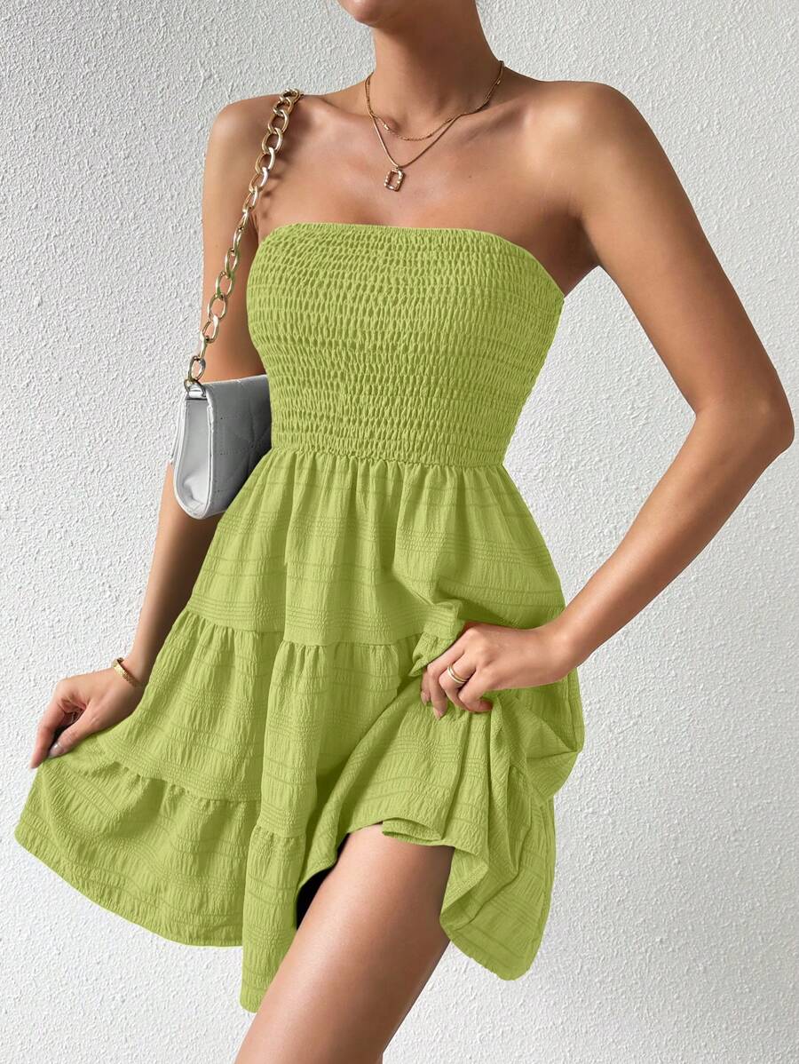 Vestido de verano sencillo en a con dobladillo de varias capas sin tirantes, diseno simple