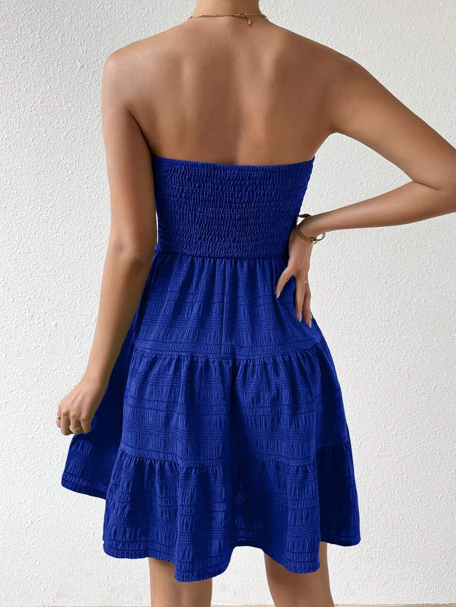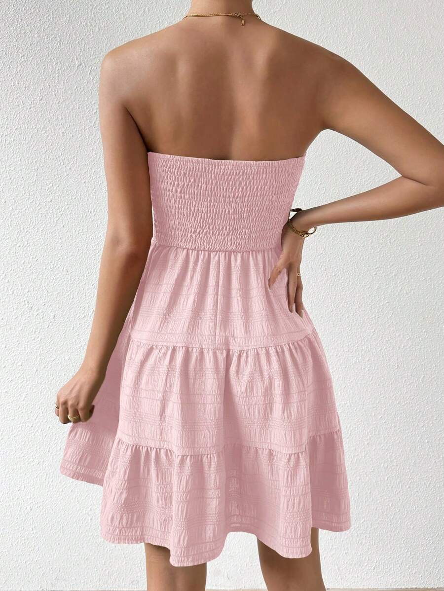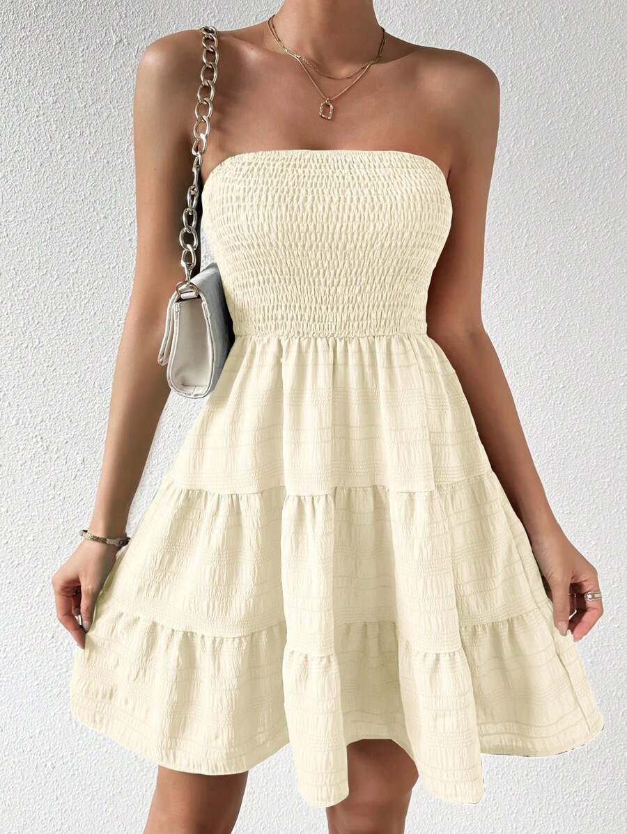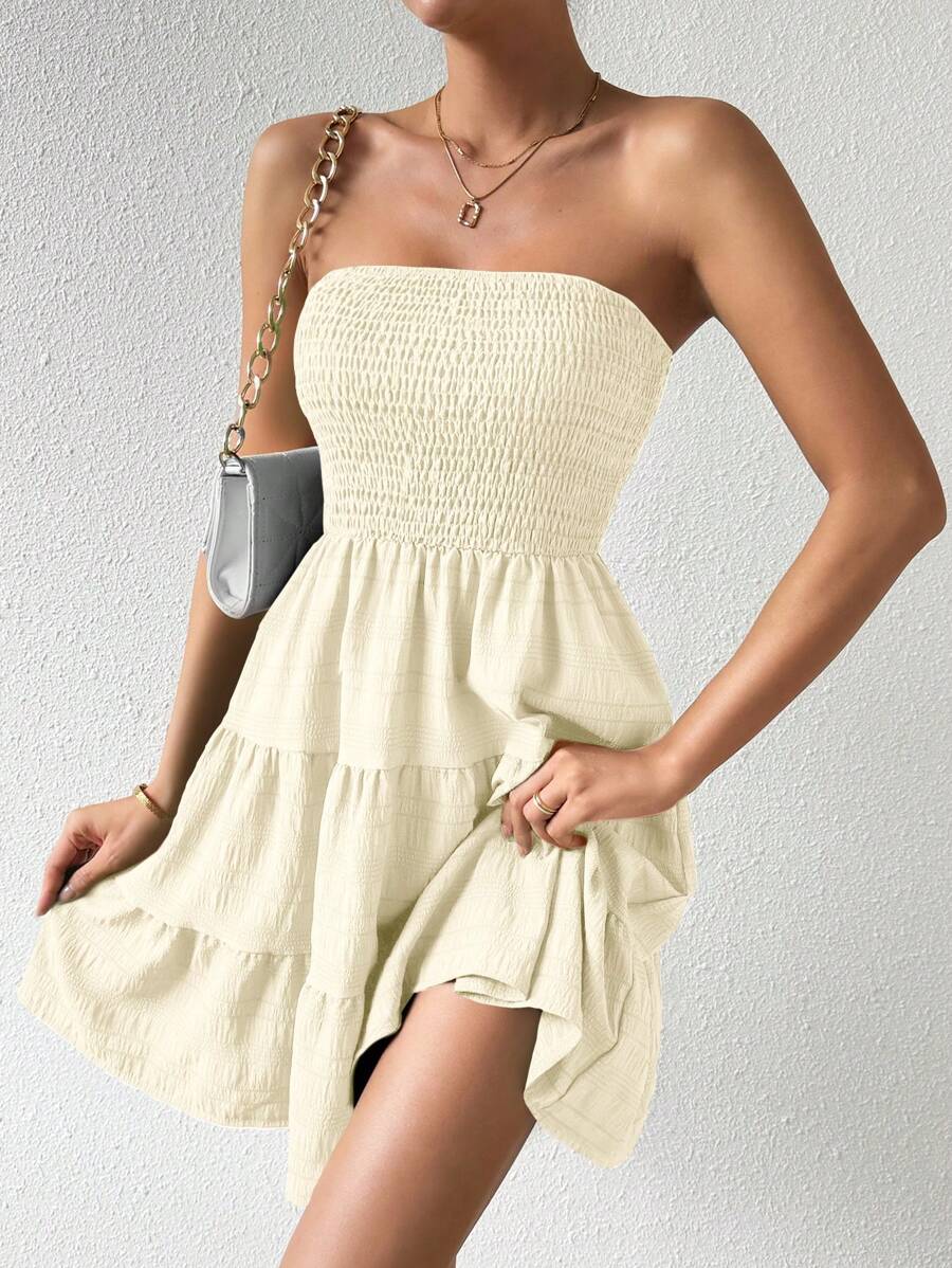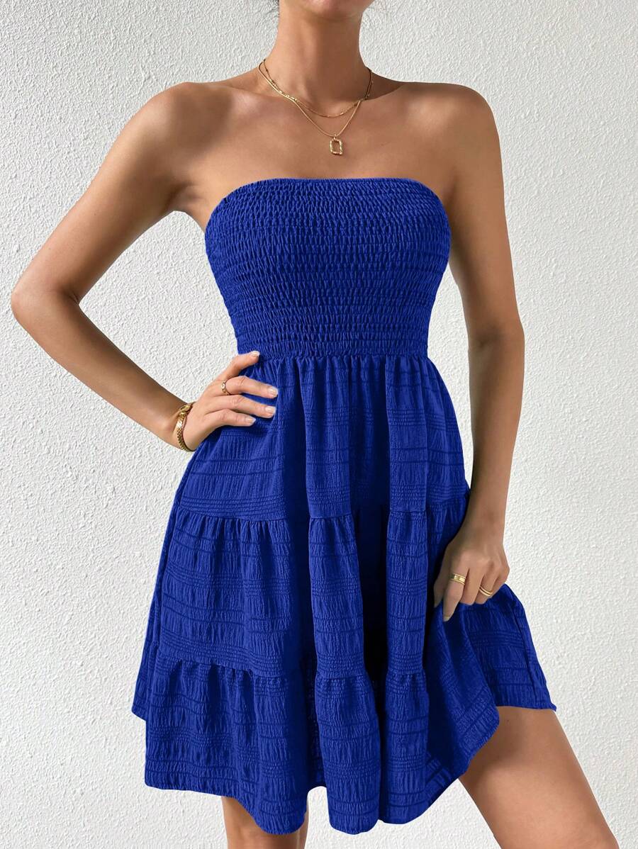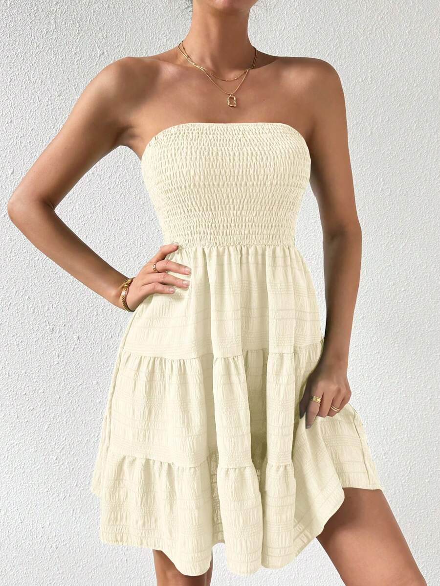Vestido de verano sencillo en a con dobladillo de varias capas sin tirantes, diseno simple