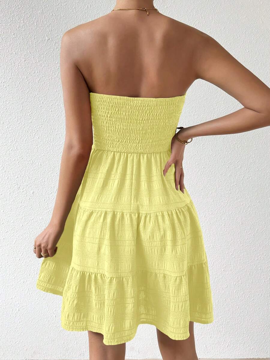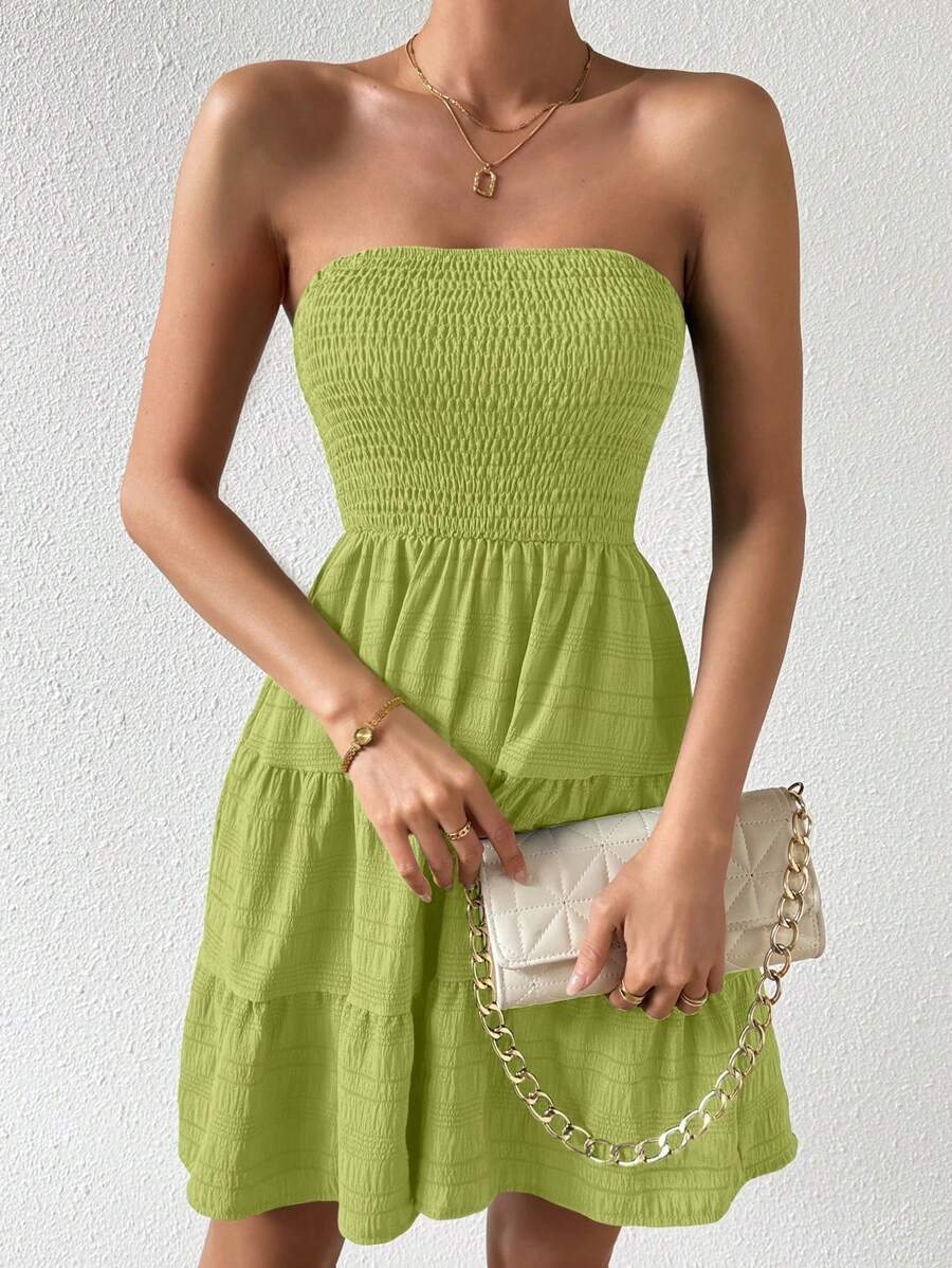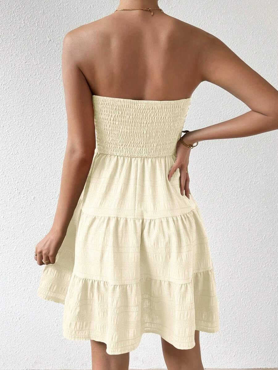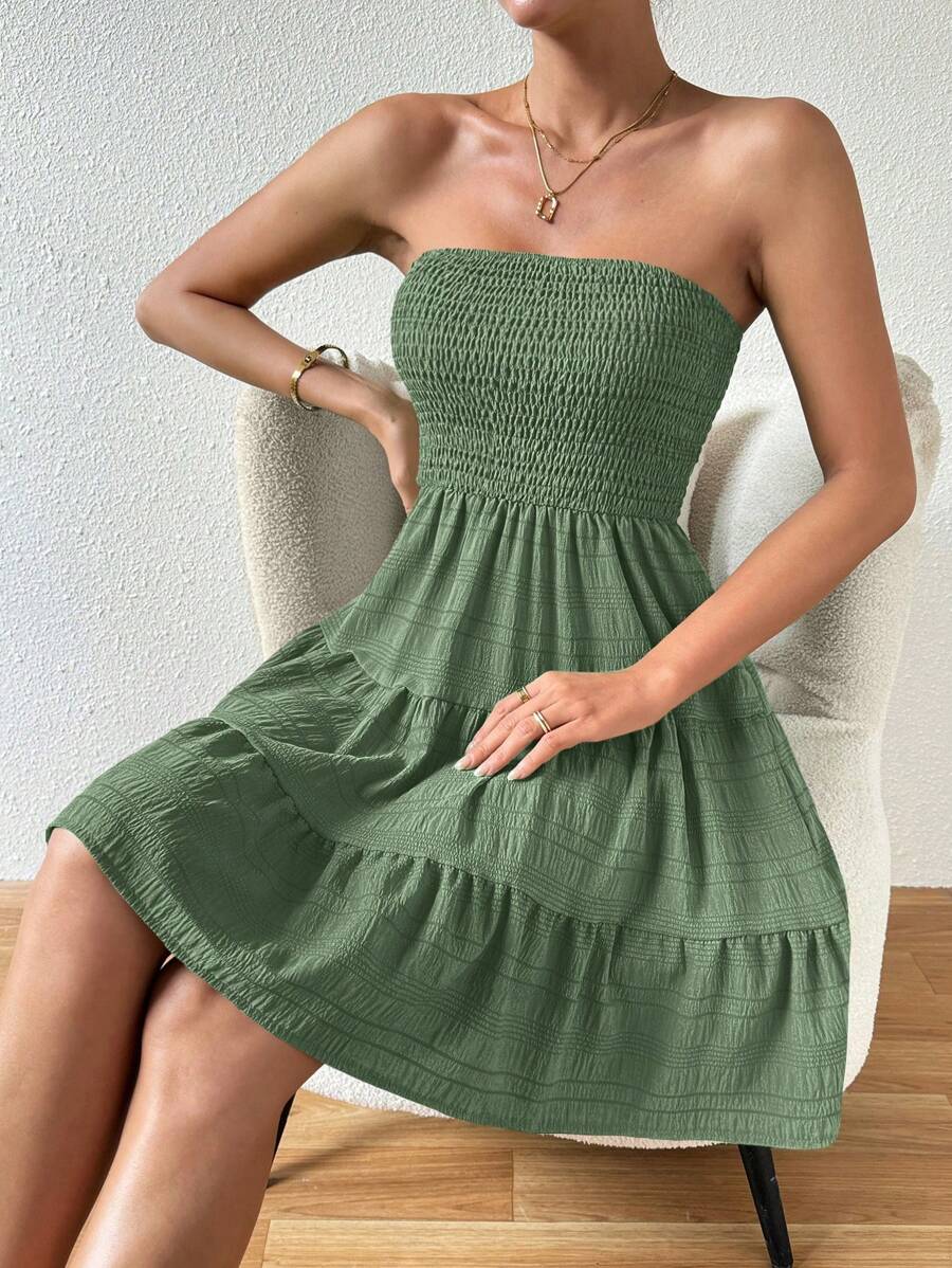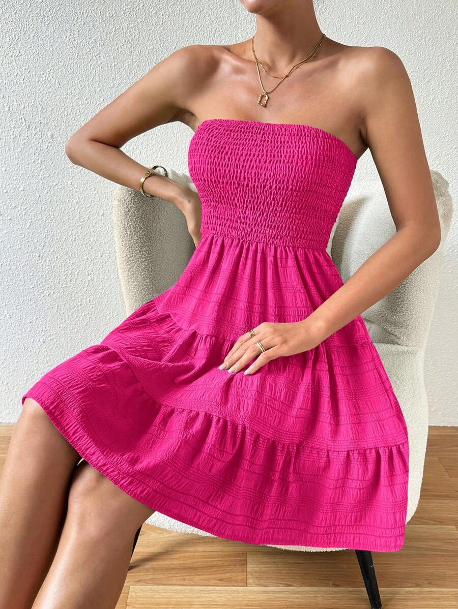 Vestido de verano sencillo en a con dobladillo de varias capas sin tirantes, diseno simple