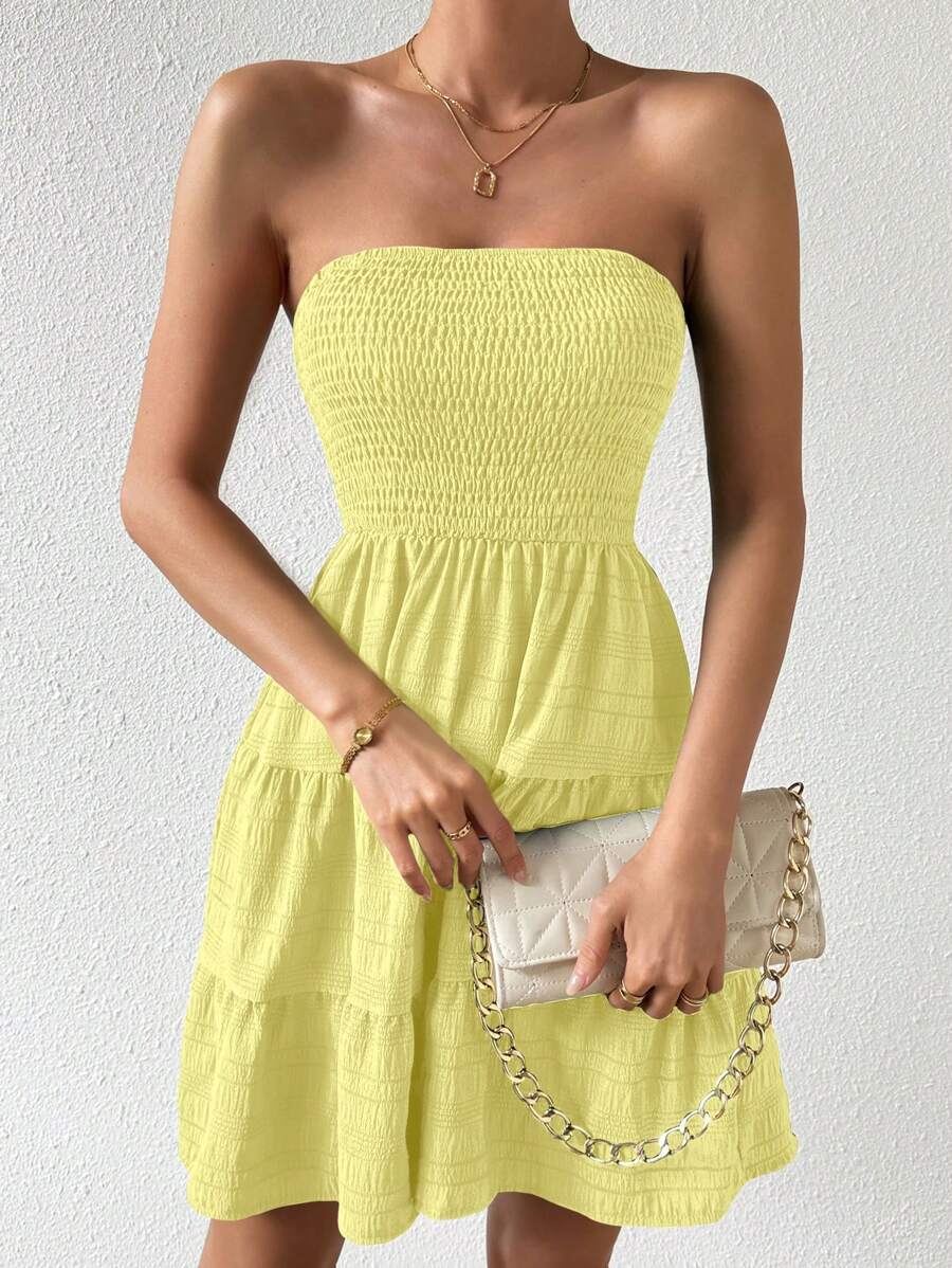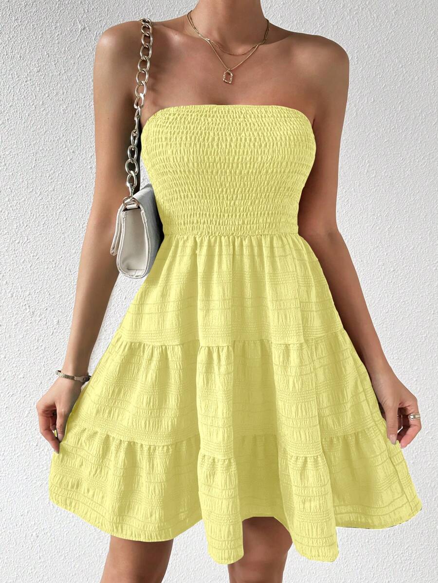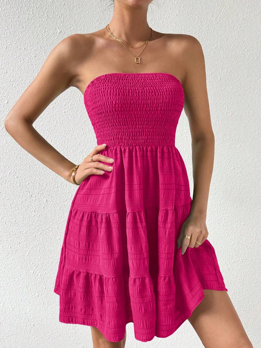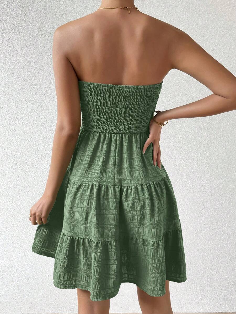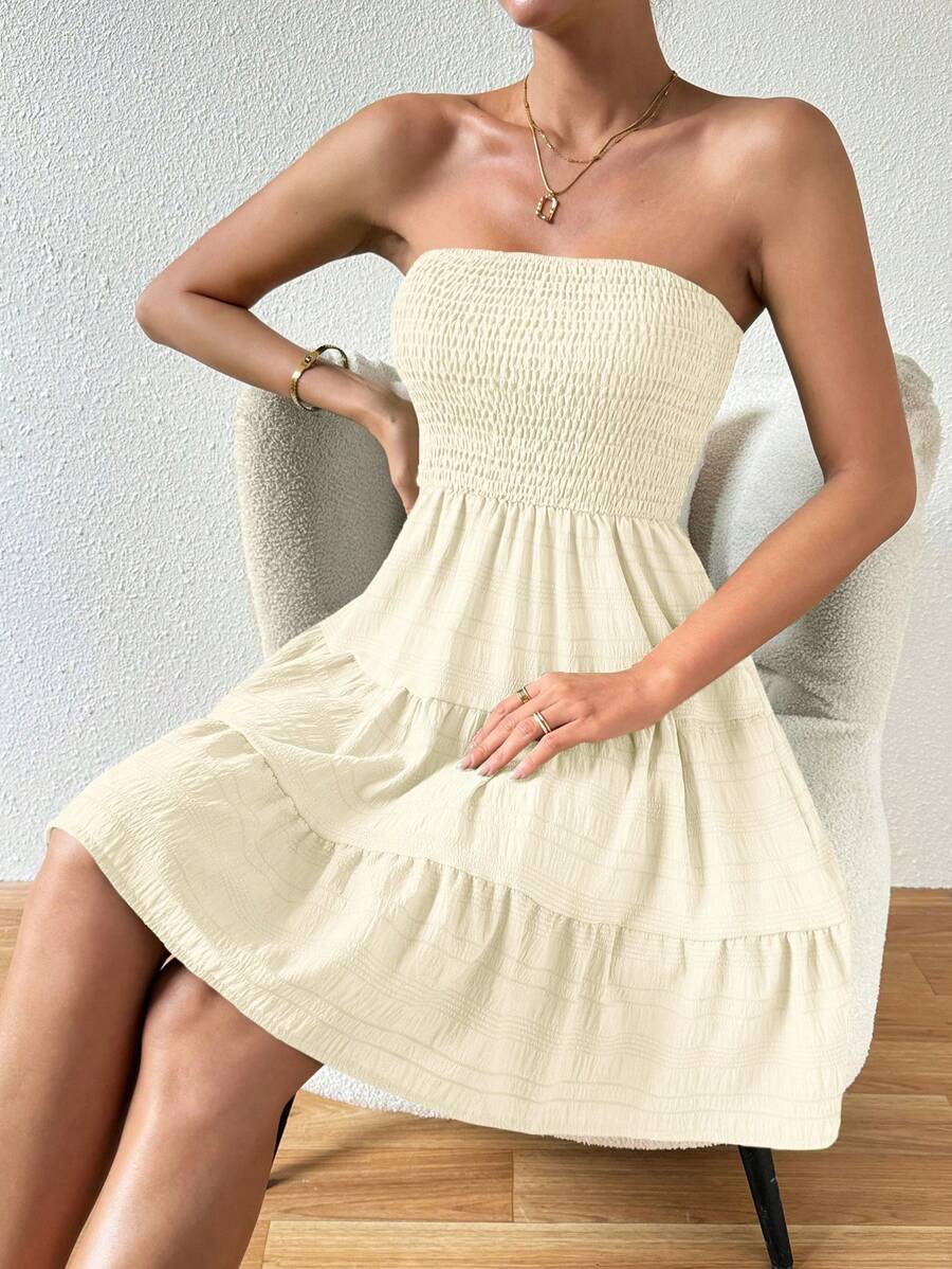 Vestido de verano sencillo en a con dobladillo de varias capas sin tirantes, diseno simple