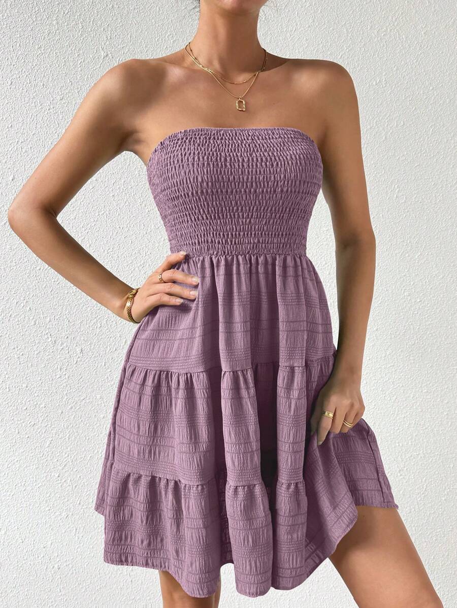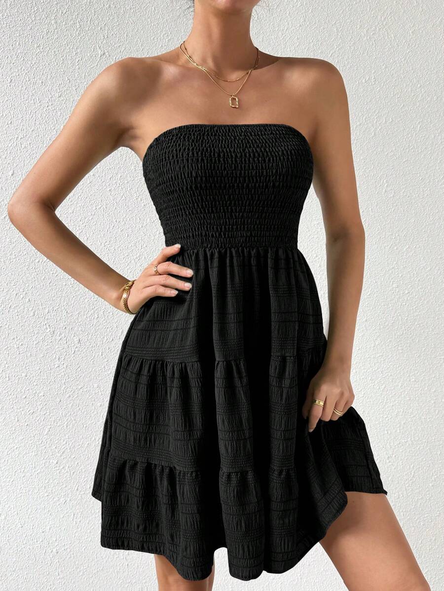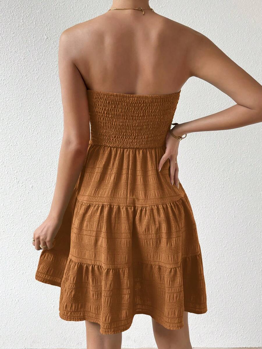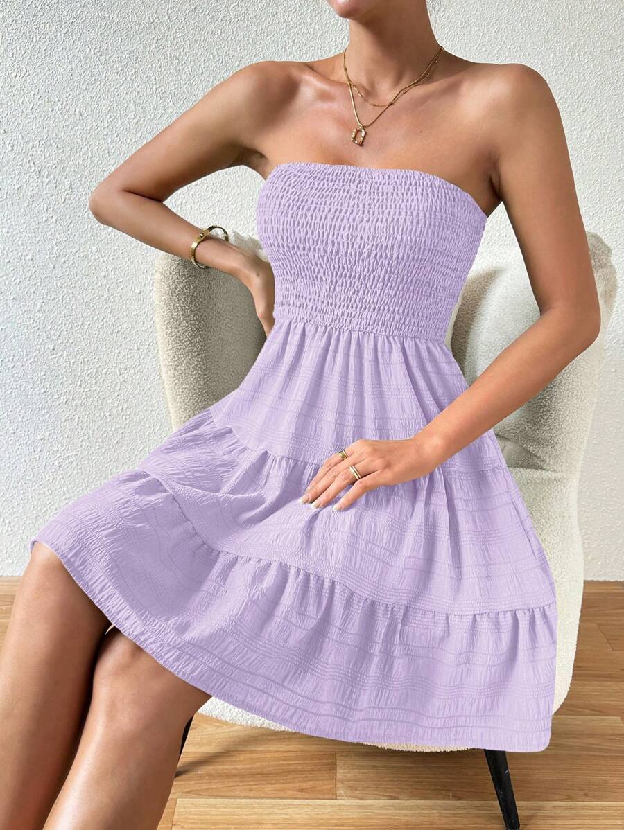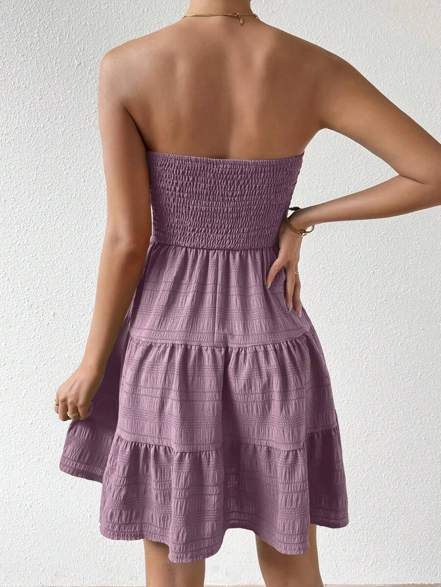 Vestido de verano sencillo en a con dobladillo de varias capas sin tirantes, diseno simple