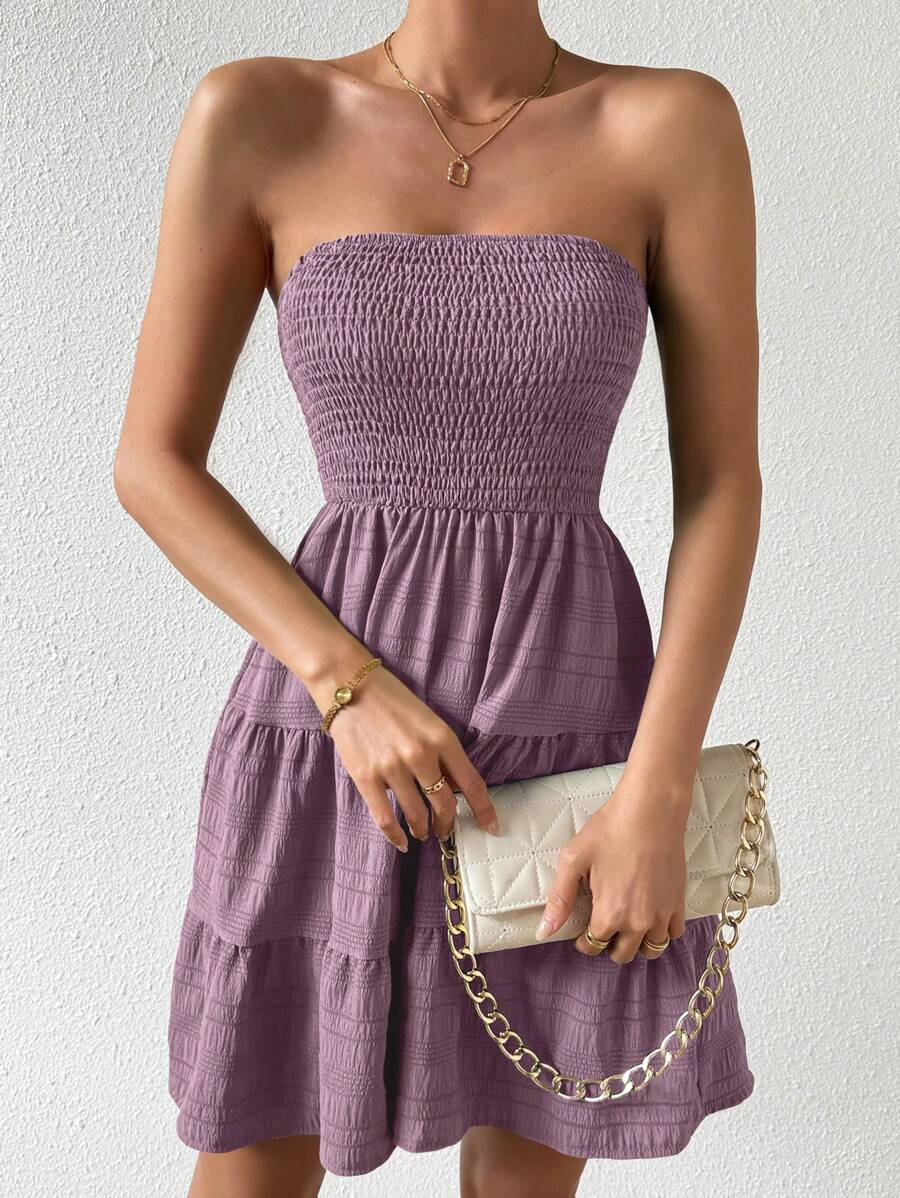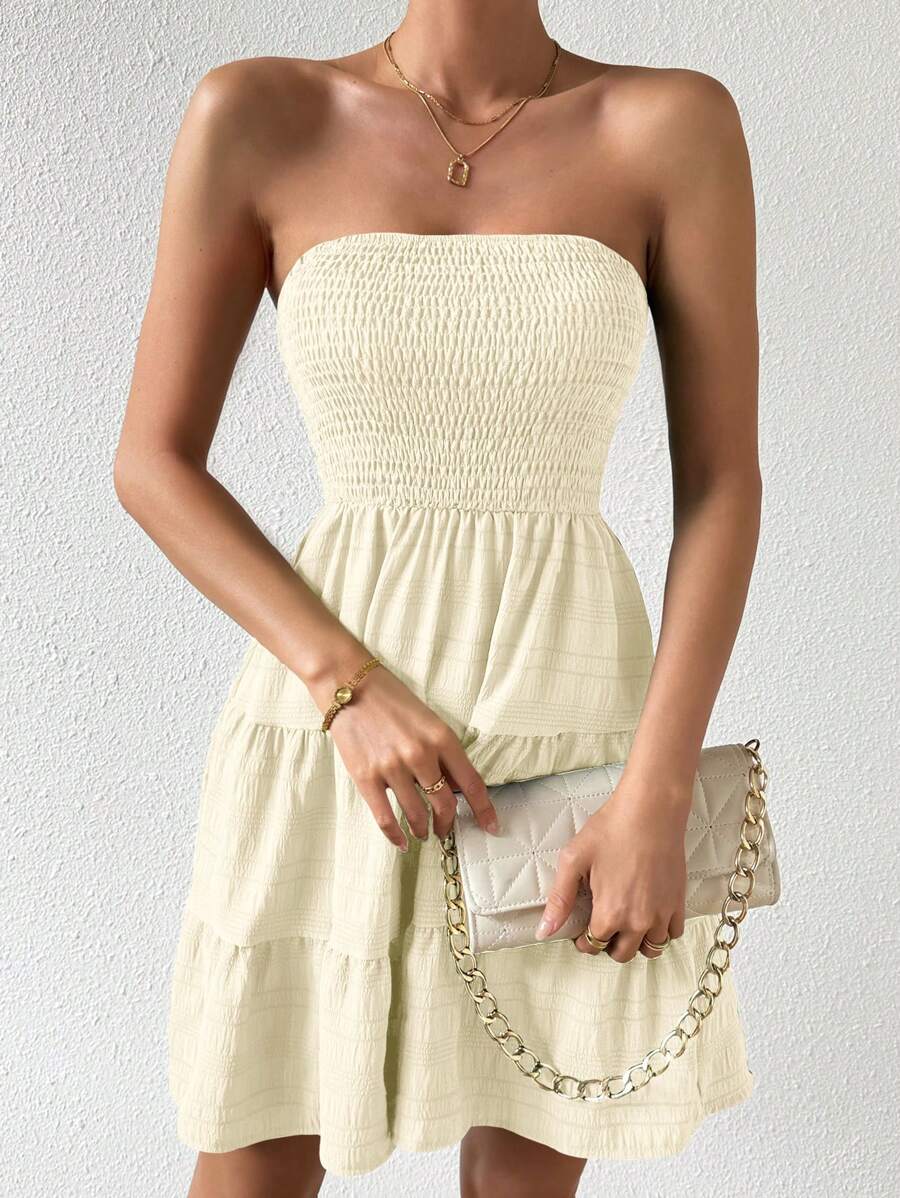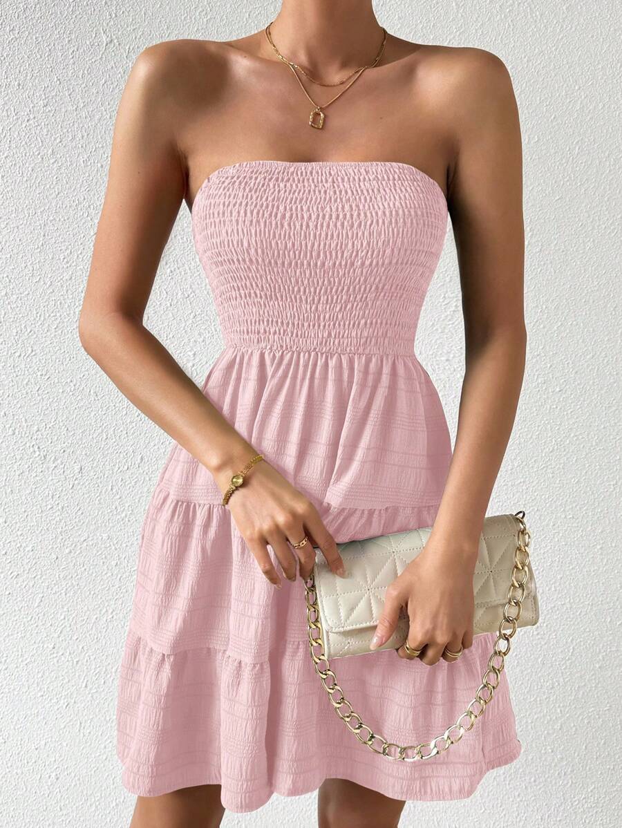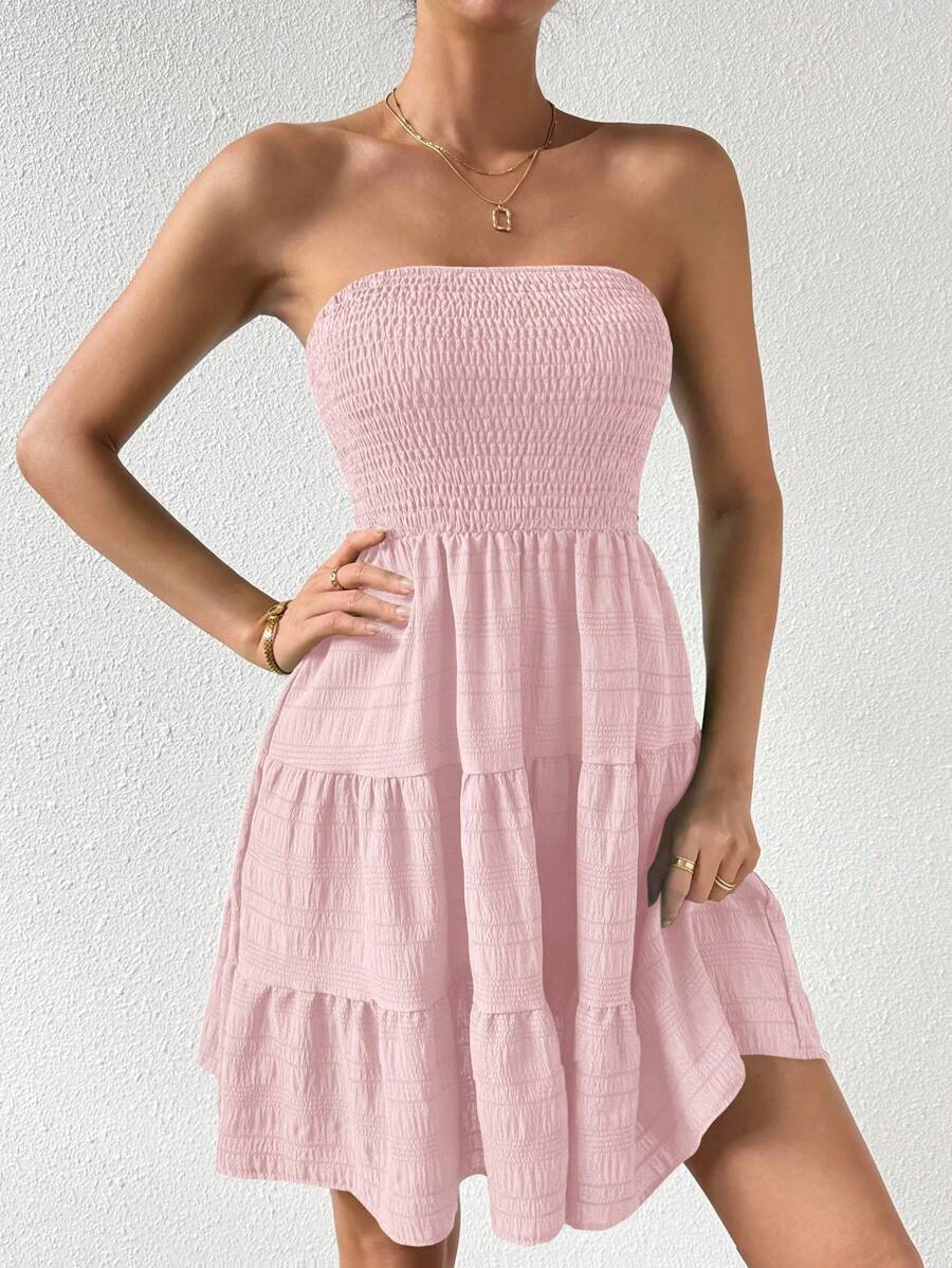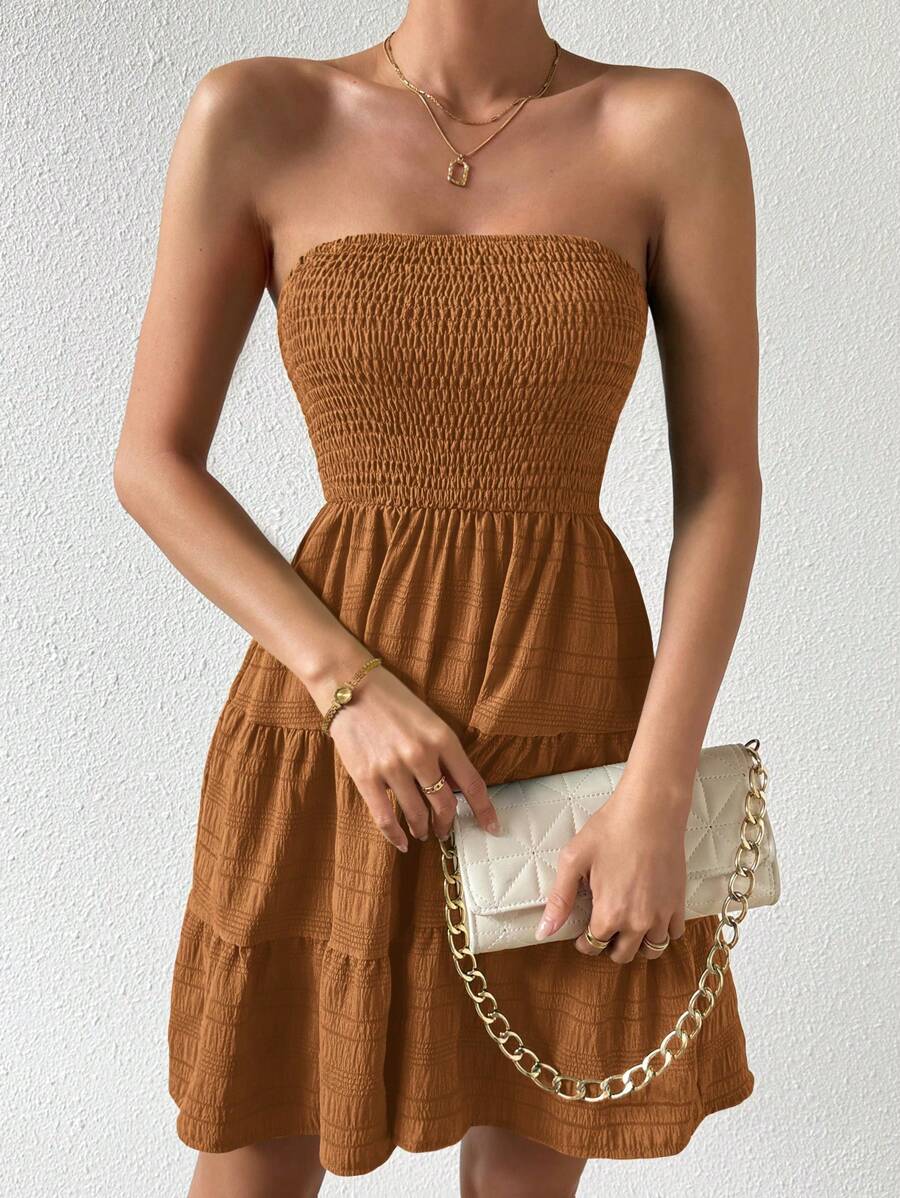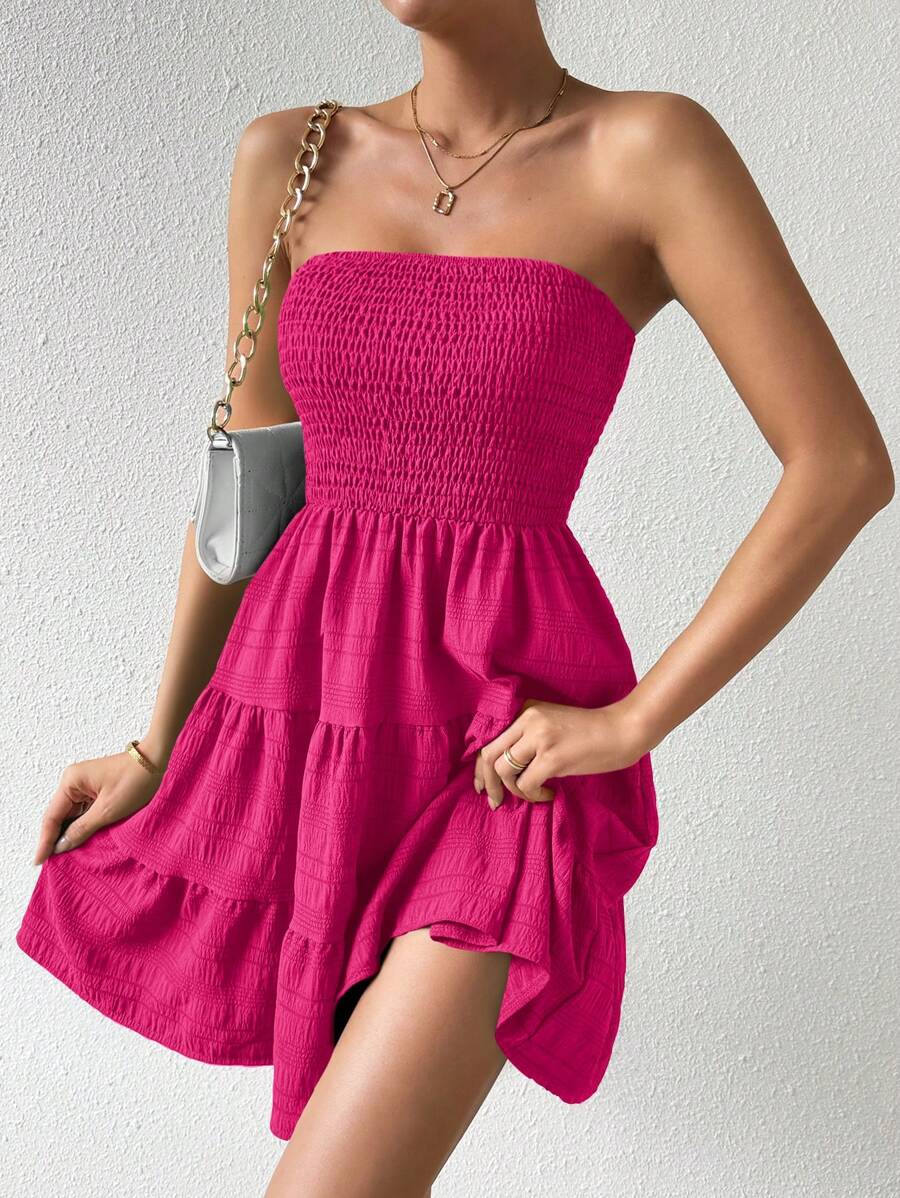 Vestido de verano sencillo en a con dobladillo de varias capas sin tirantes, diseno simple