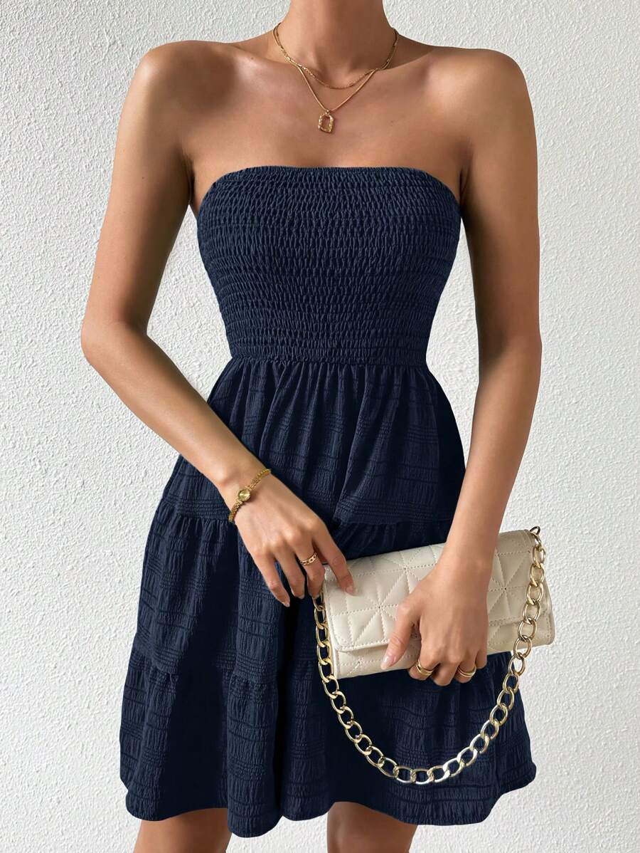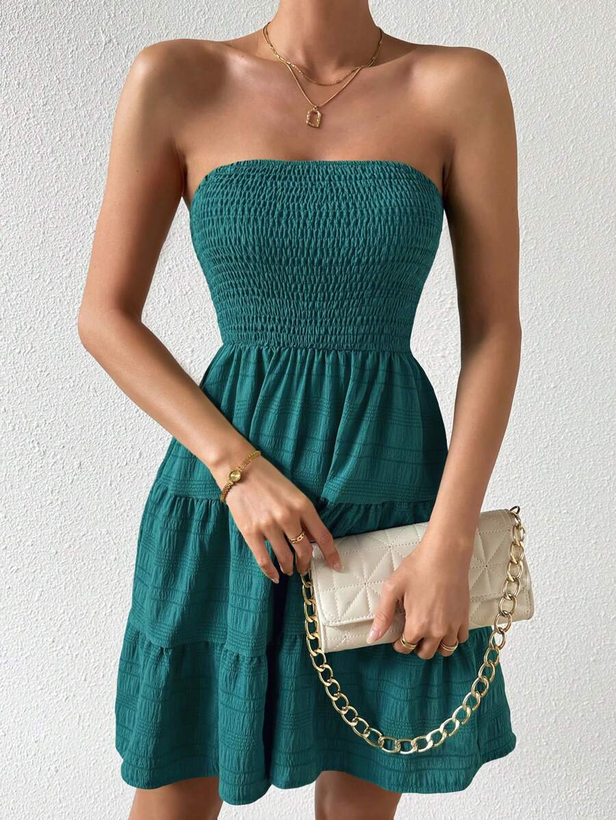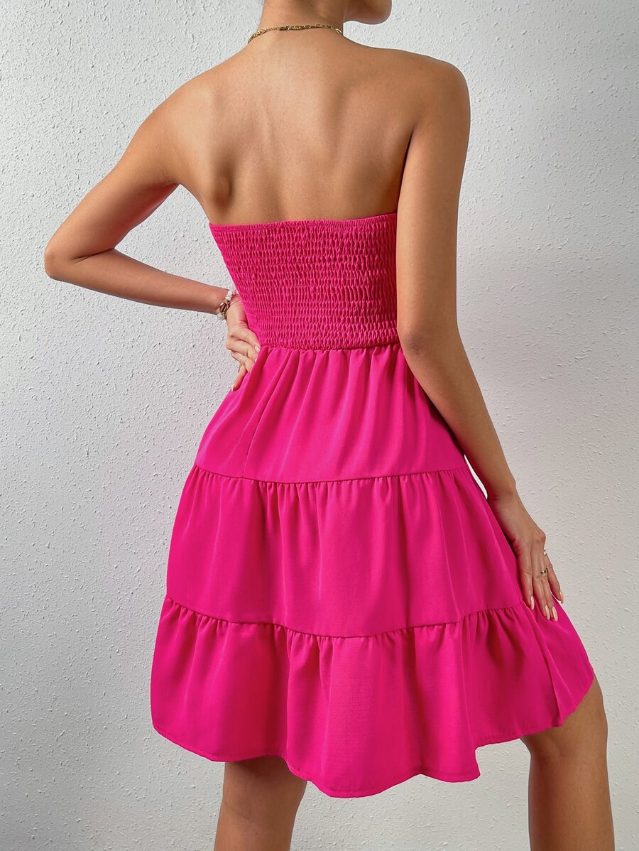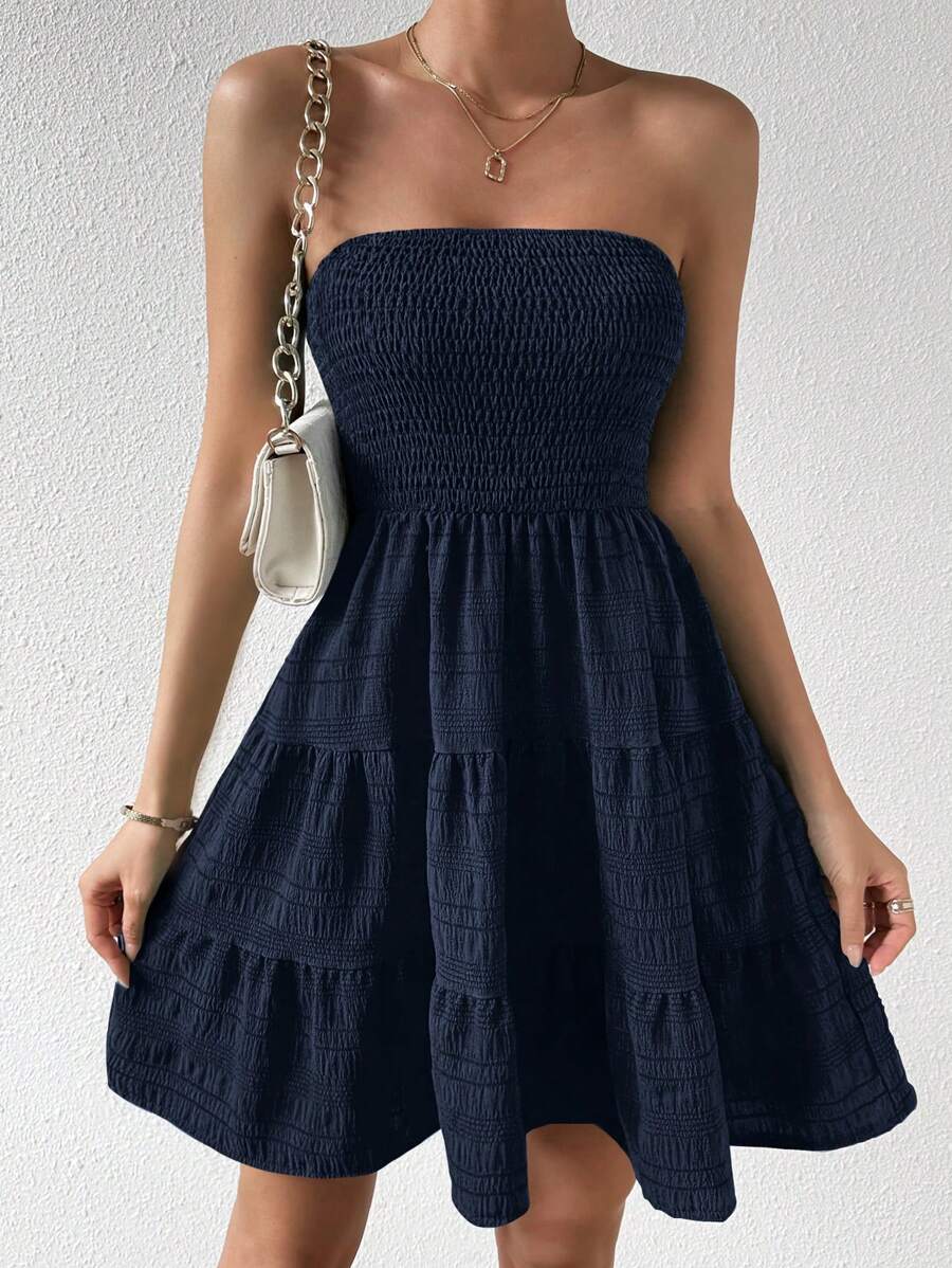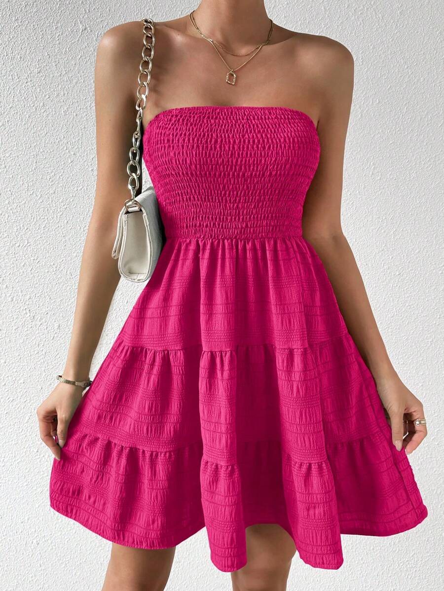 Vestido de verano sencillo en a con dobladillo de varias capas sin tirantes, diseno simple