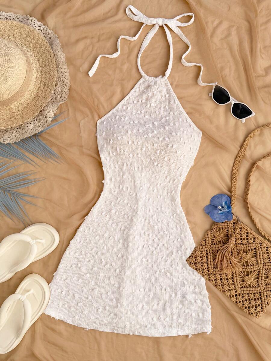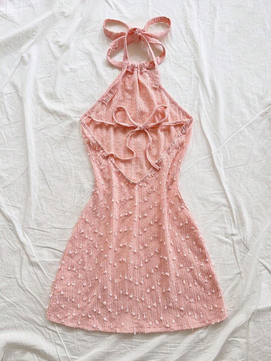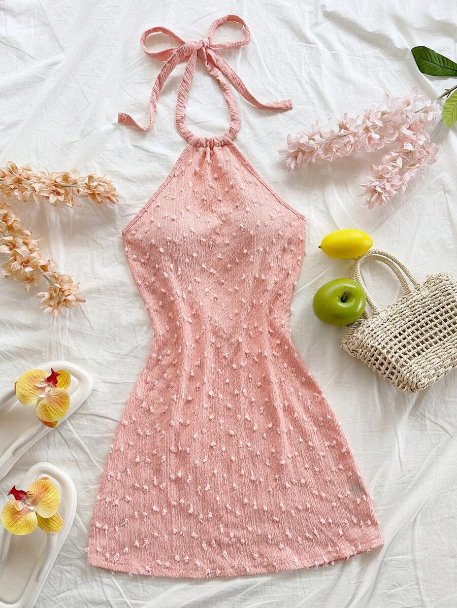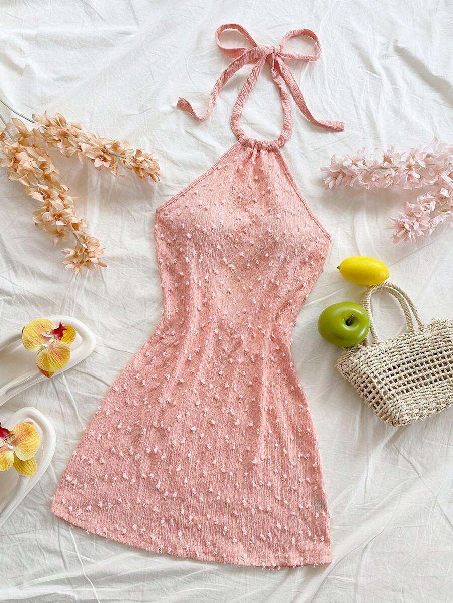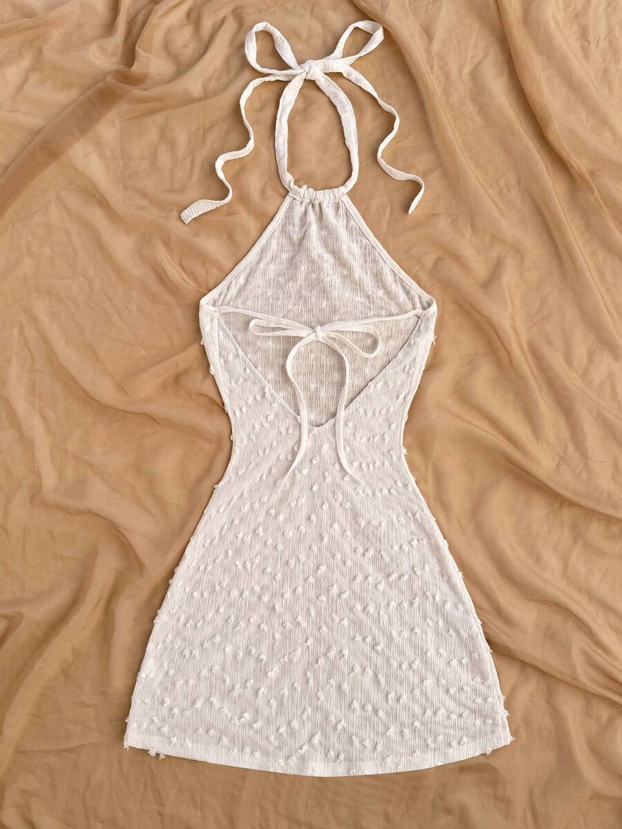 Vestido ajustado con cordones y espalda descubierta con jacquard y enc – Muy Bonita