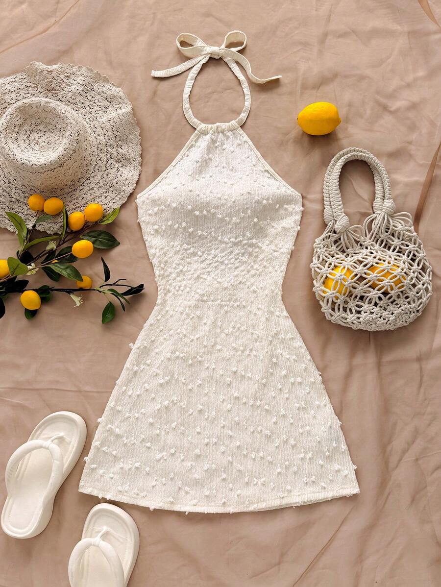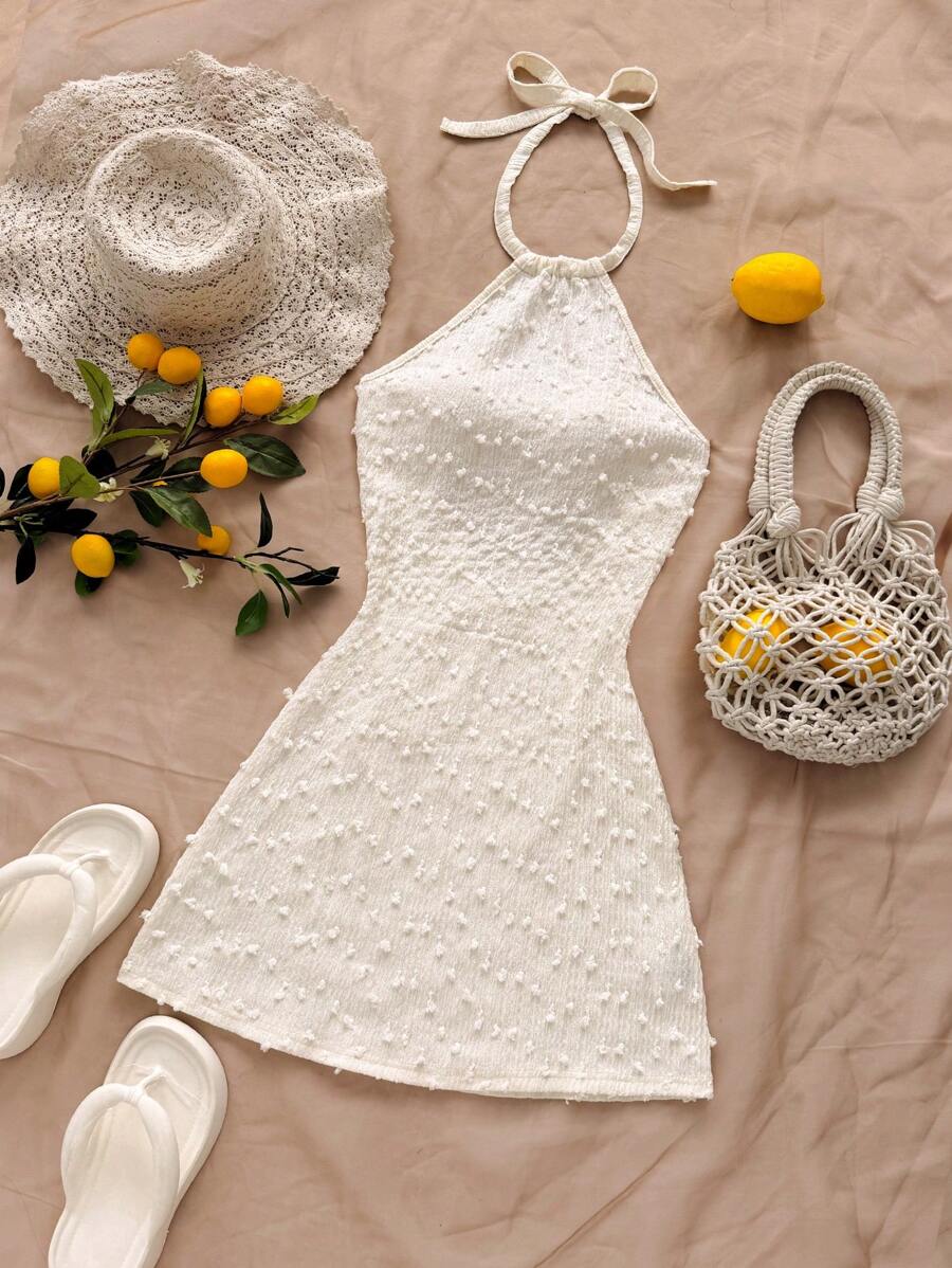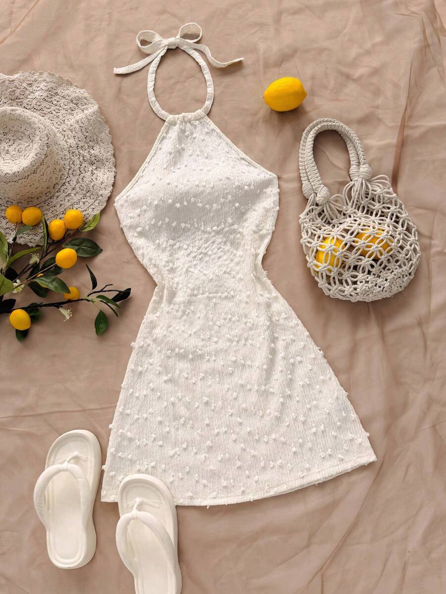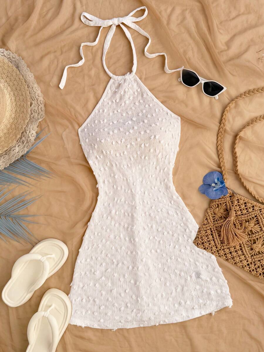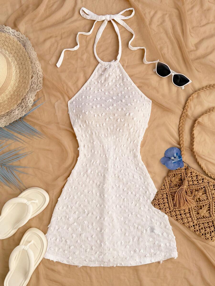 Vestido ajustado con cordones y espalda descubierta con jacquard y enc – Muy Bonita