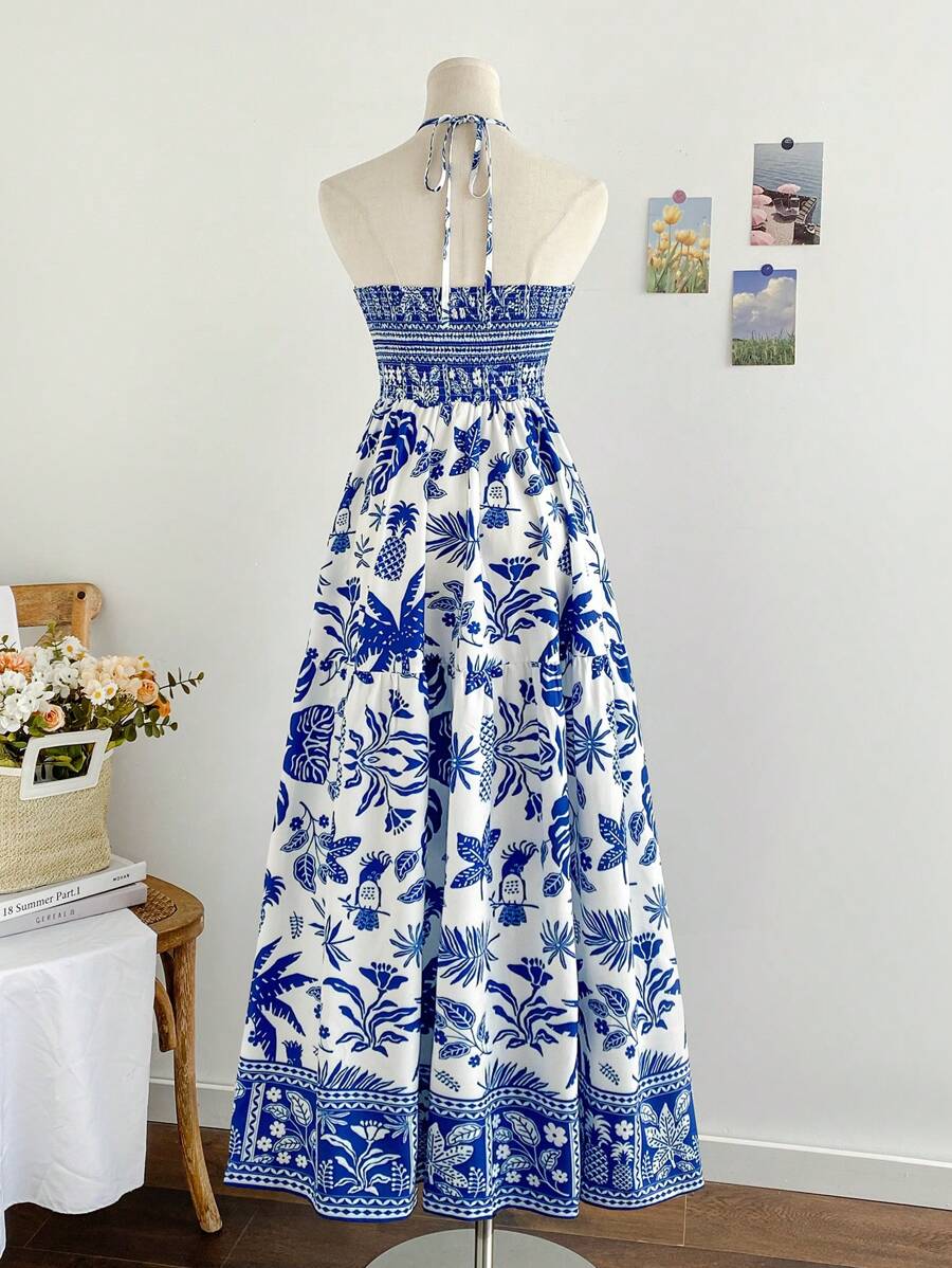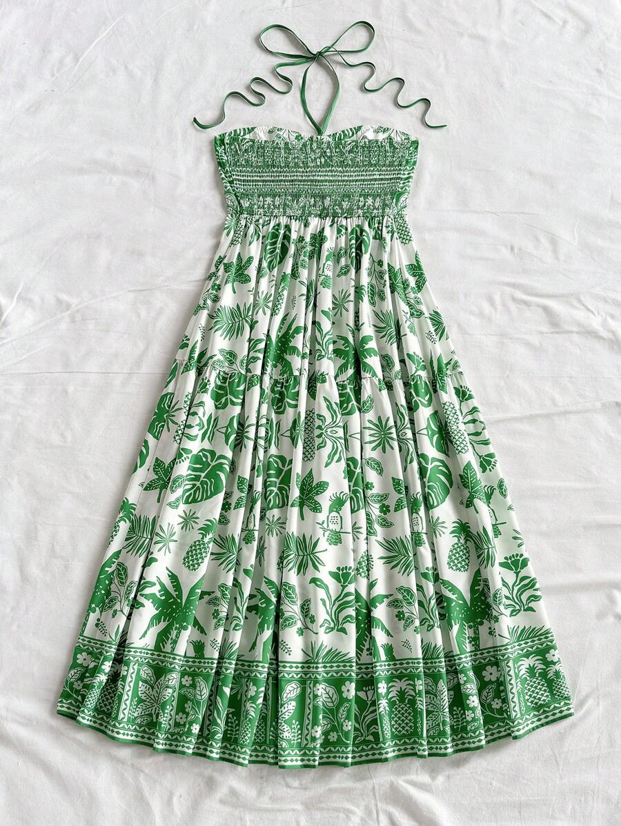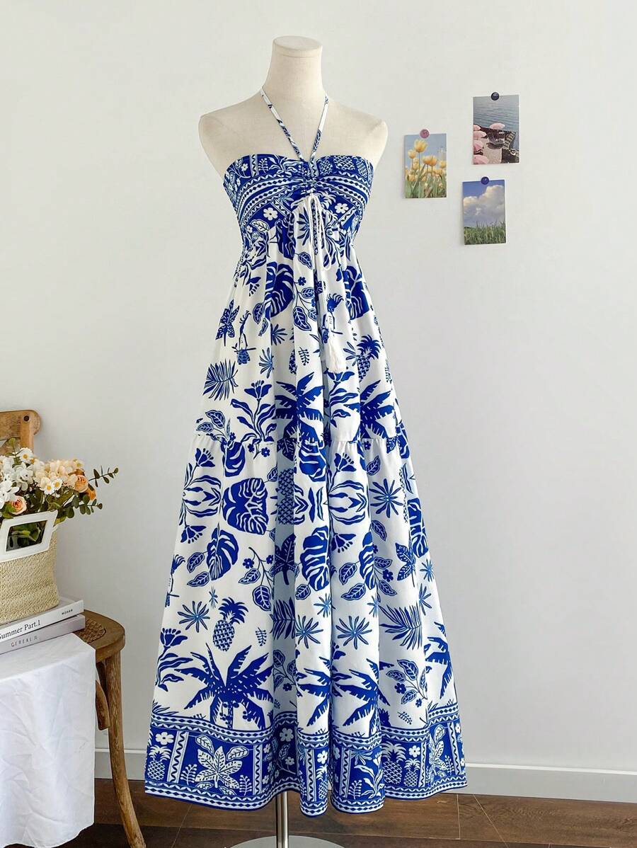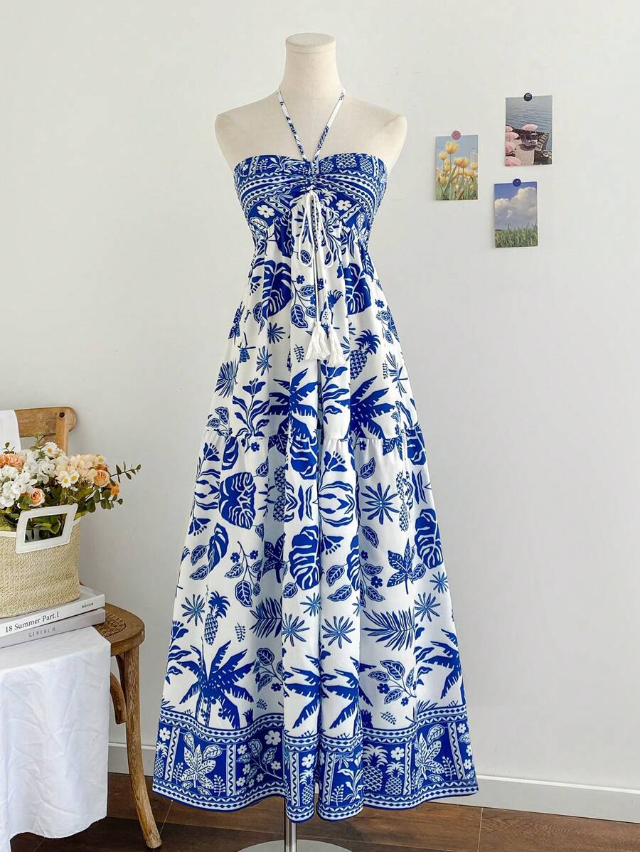 Vestido halter con estampado de plantas tropicales para vacaciones de – Muy Bonita