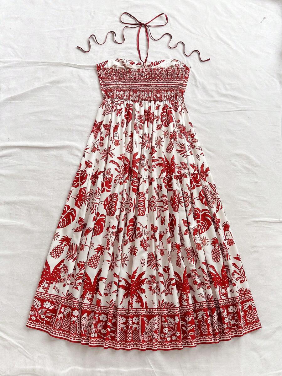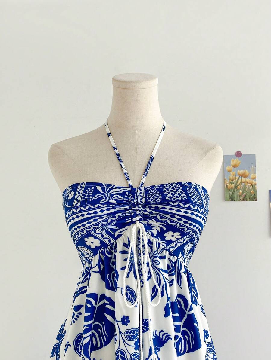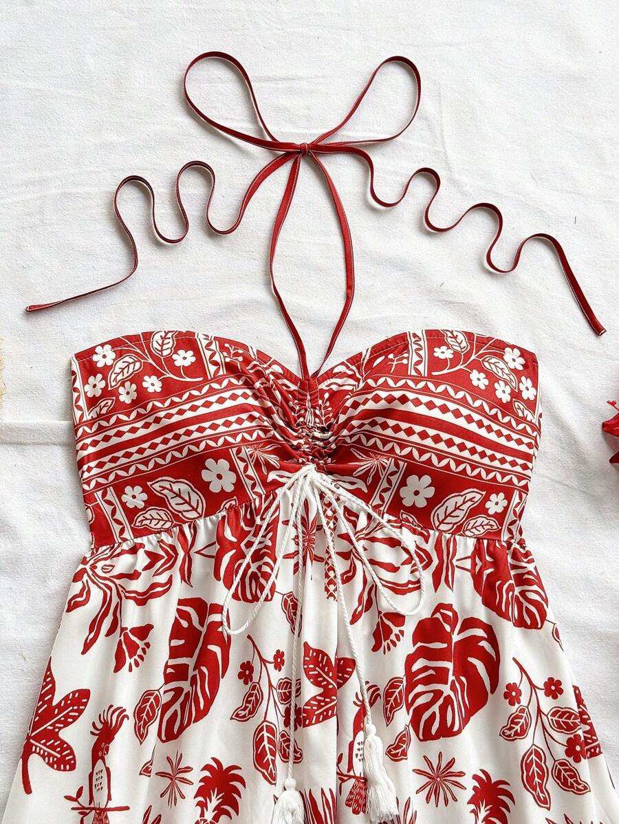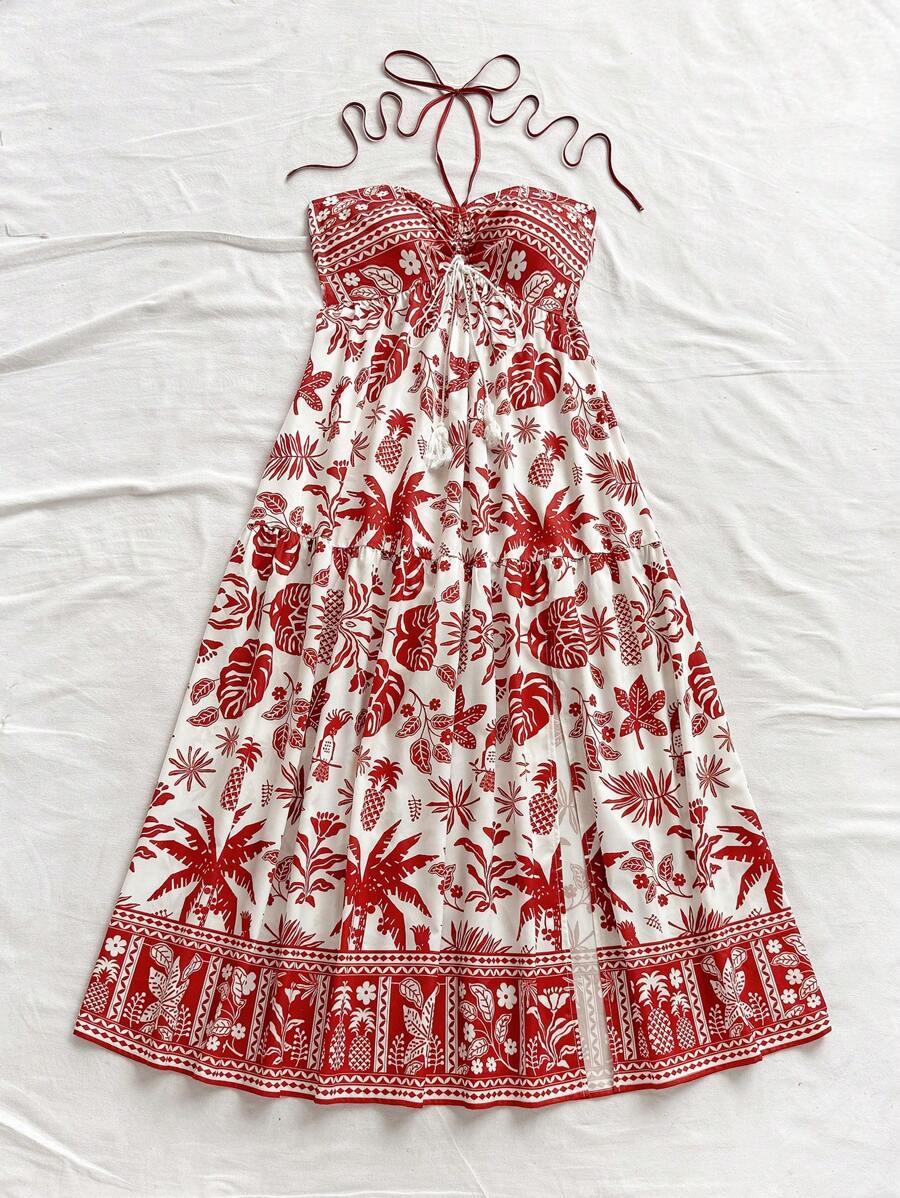 Vestido halter con estampado de plantas tropicales para vacaciones de – Muy Bonita