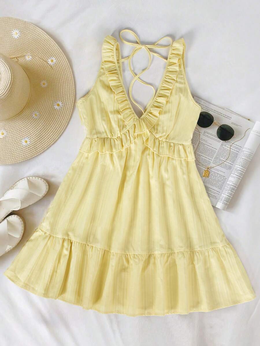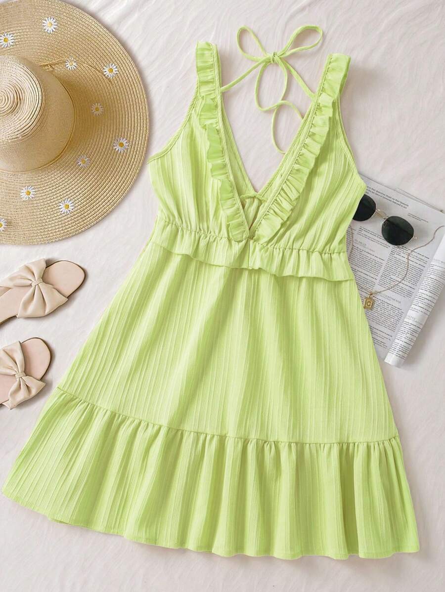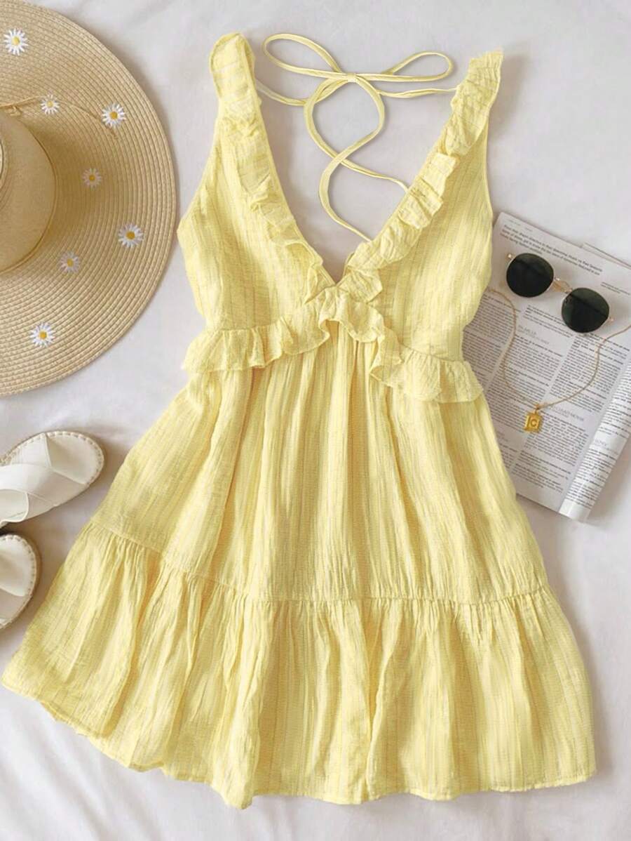 Detalles: Espalda al aire, Volante, Bajo con volante