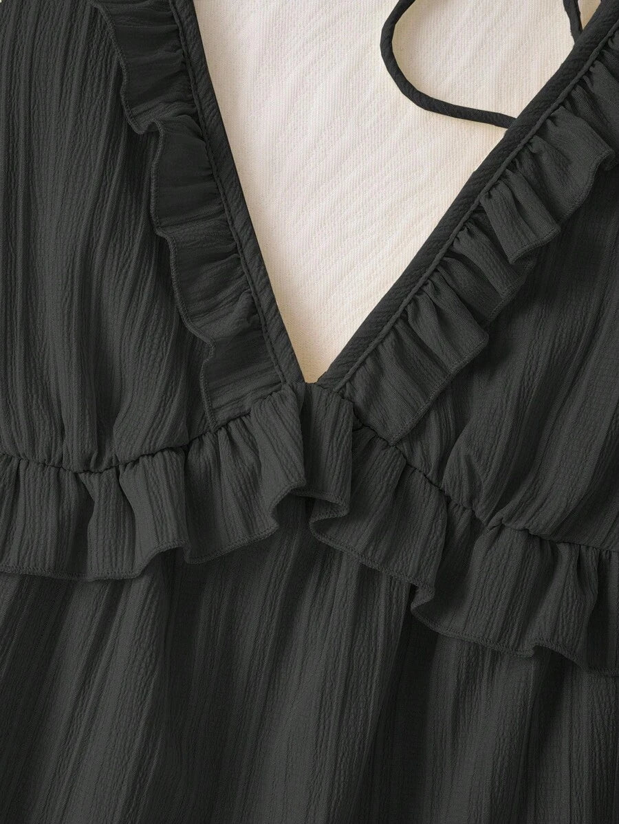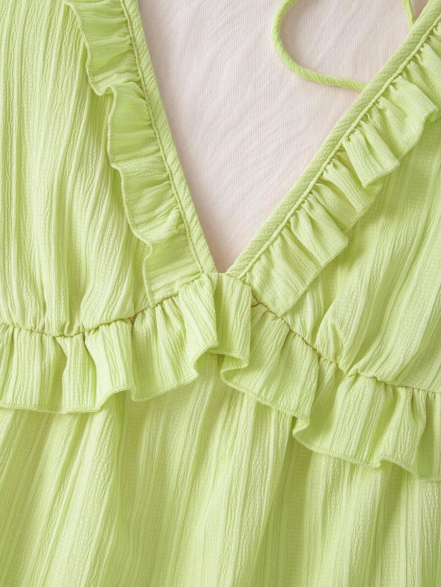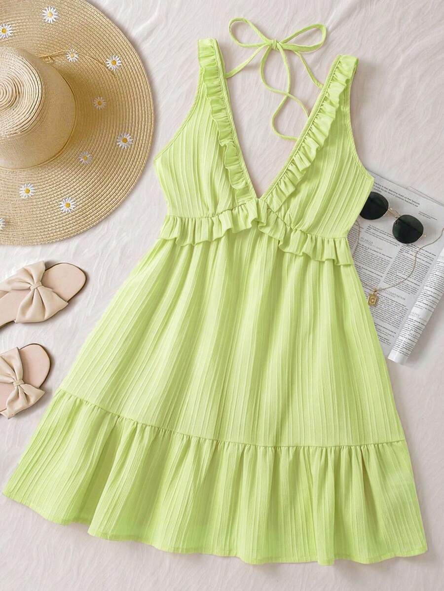 Detalles: Espalda al aire, Volante, Bajo con volante