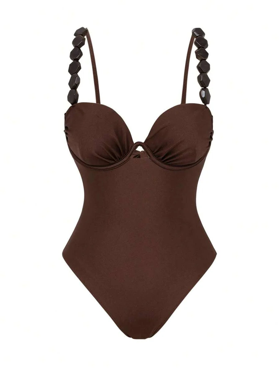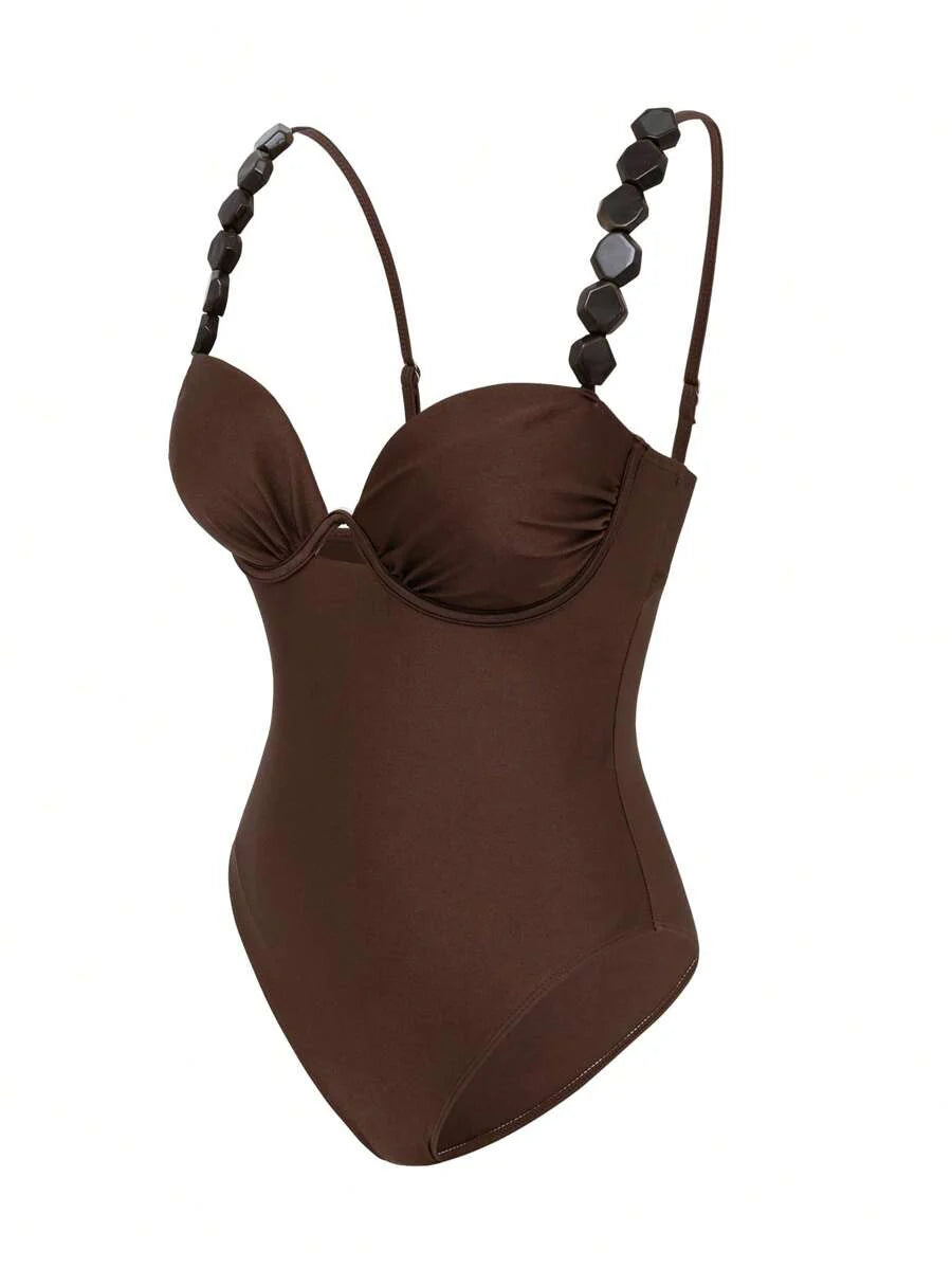 Traje de bano de una pieza sexy para mujer, ajustado y elegante, de color liso, con aro y push-up, vestimenta de playa casual para el verano